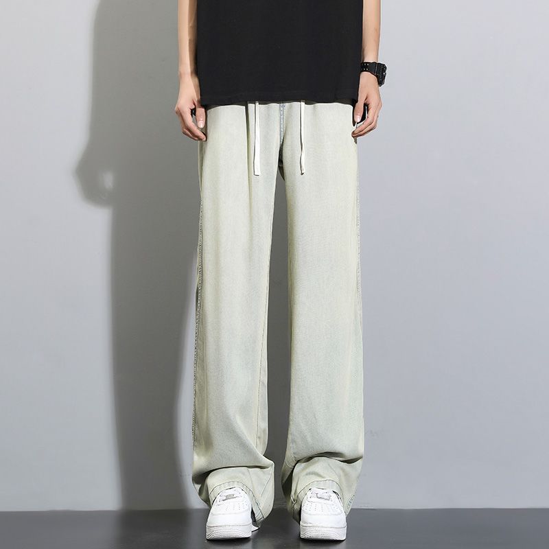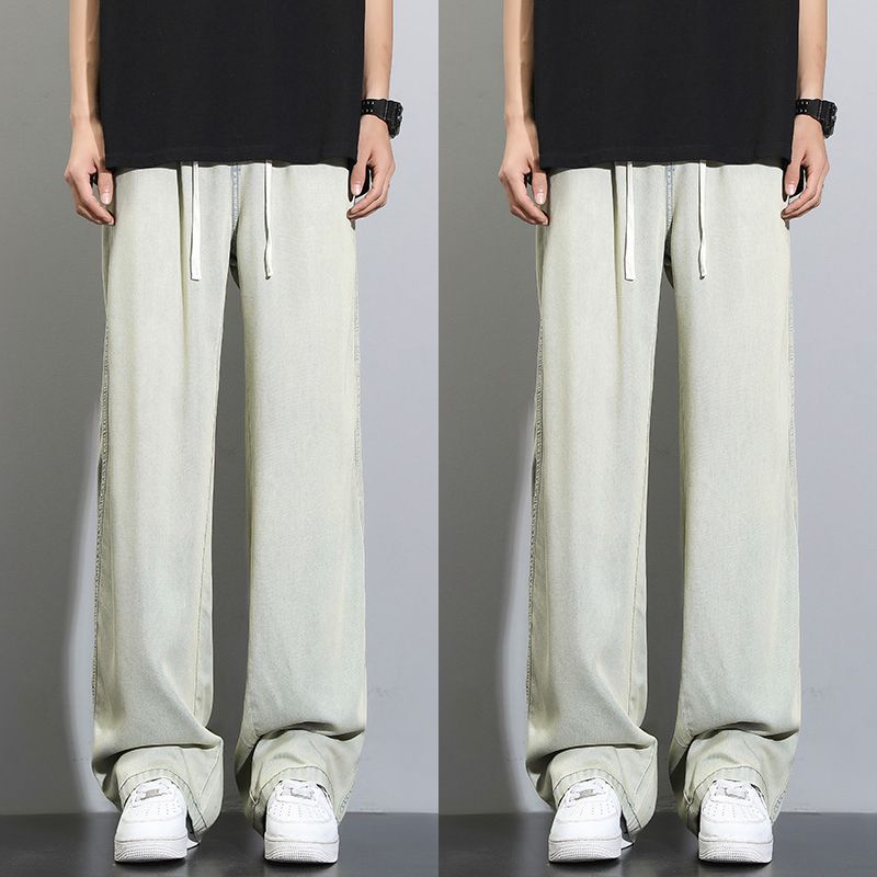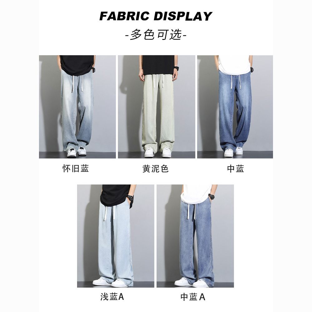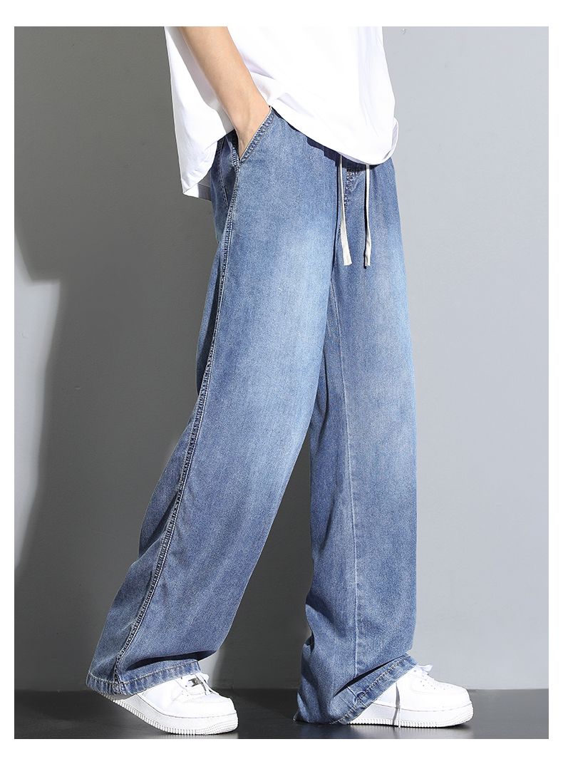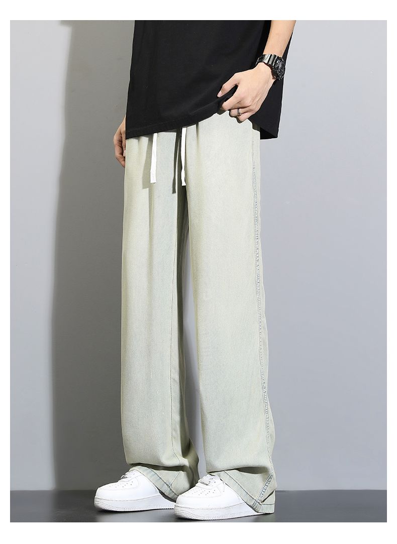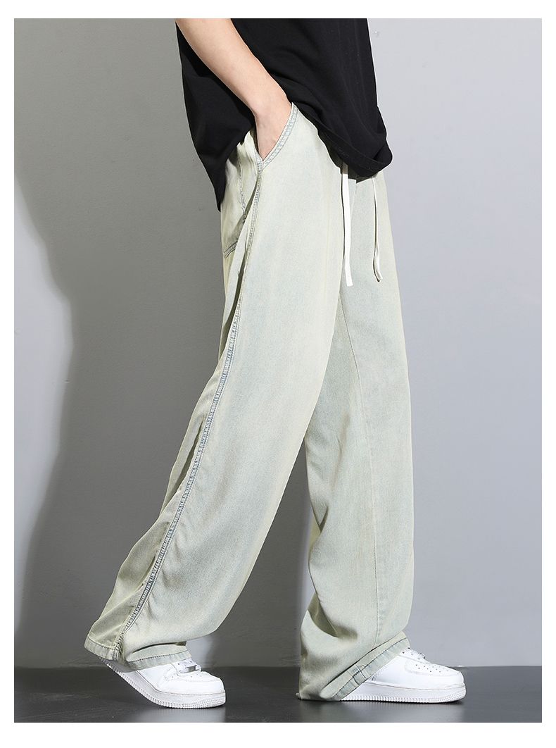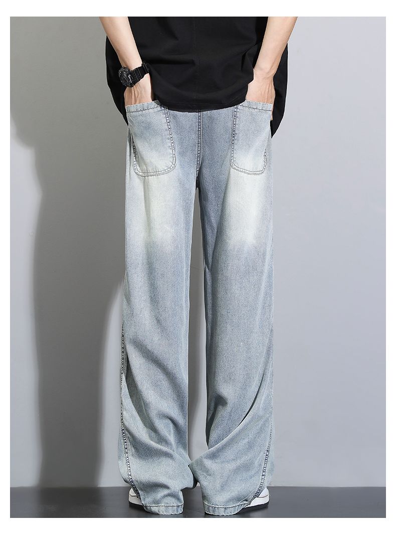 天丝莱赛尔垂感牛仔裤夏季超薄新款浅色宽松直筒阔腿男士休闲裤子