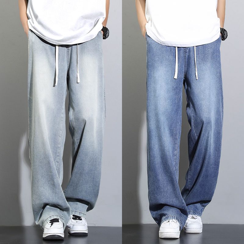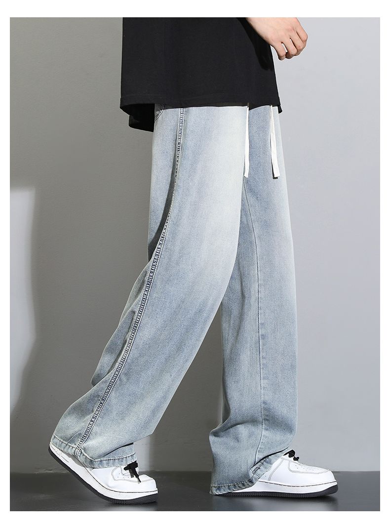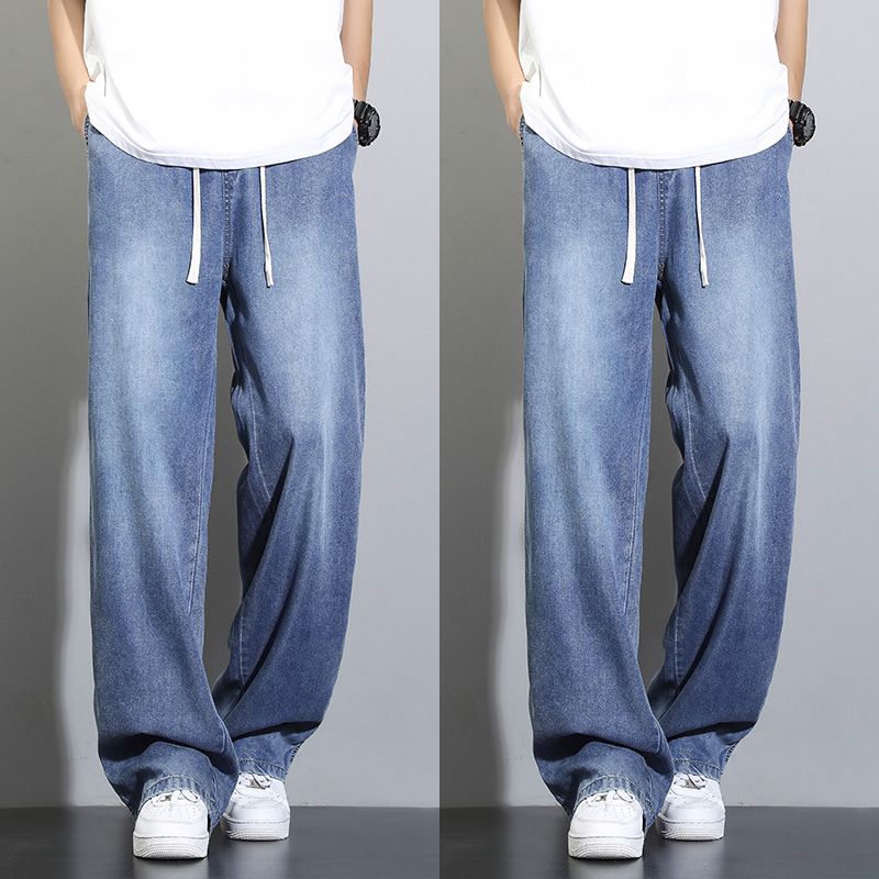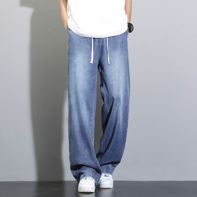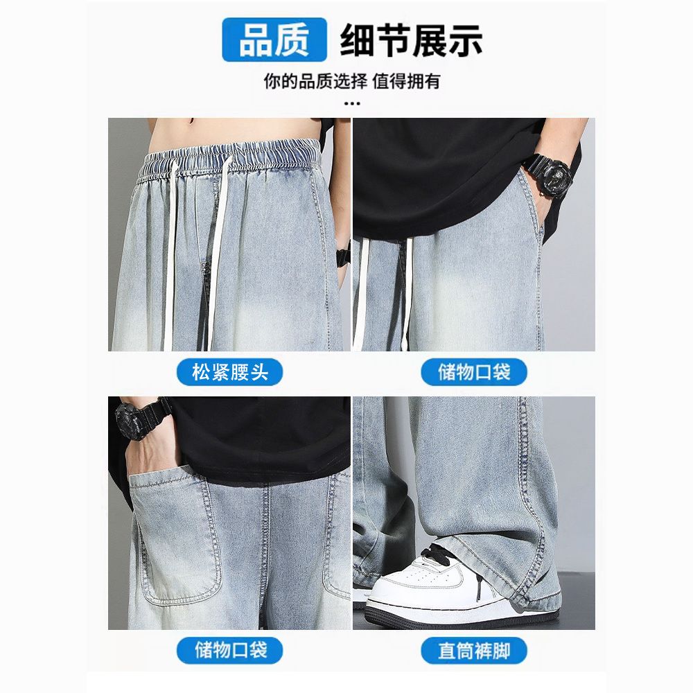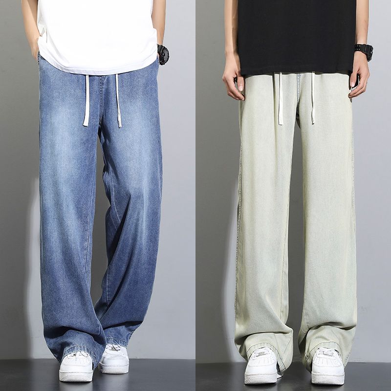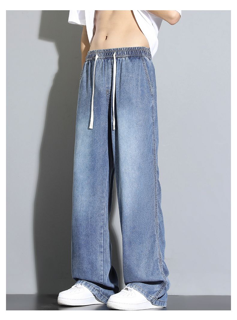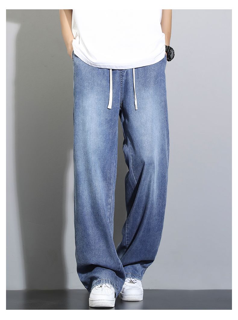 天丝莱赛尔垂感牛仔裤夏季超薄新款浅色宽松直筒阔腿男士休闲裤子