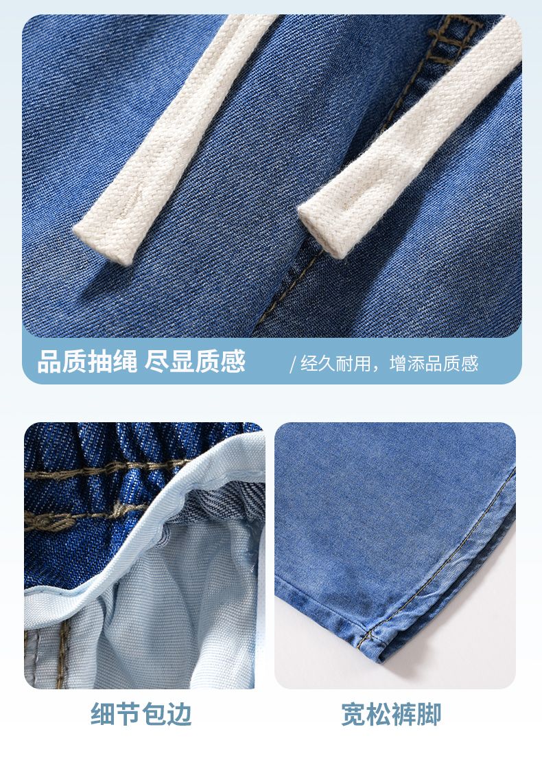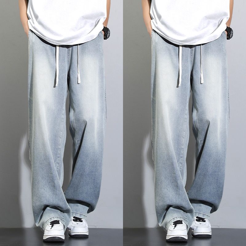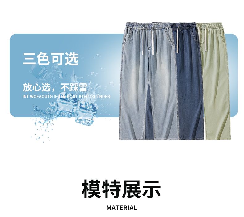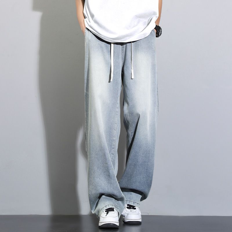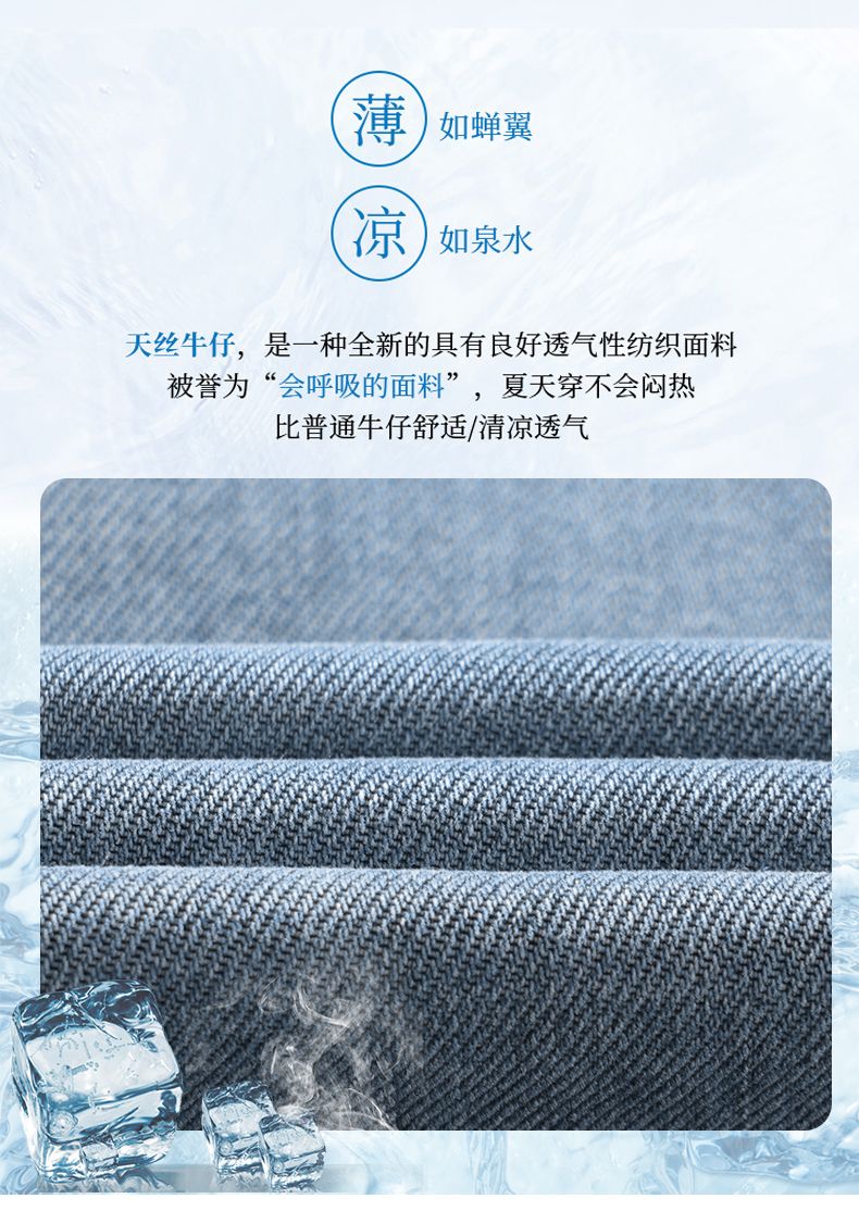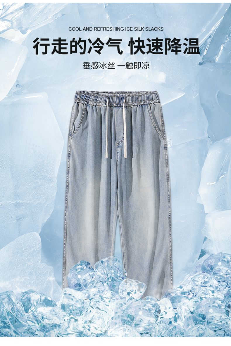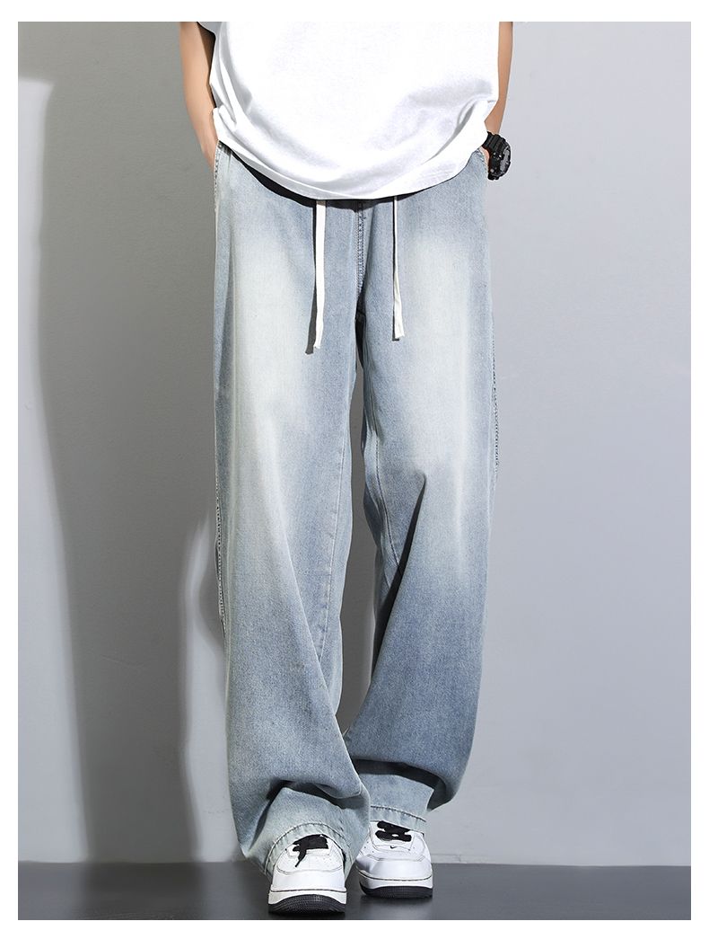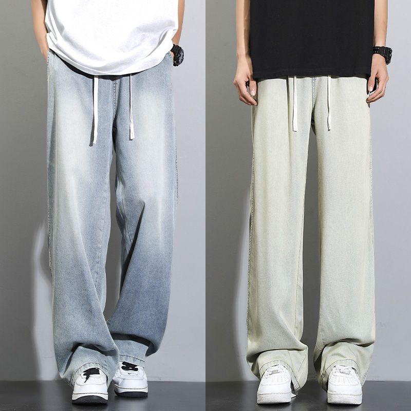 天丝莱赛尔垂感牛仔裤夏季超薄新款浅色宽松直筒阔腿男士休闲裤子