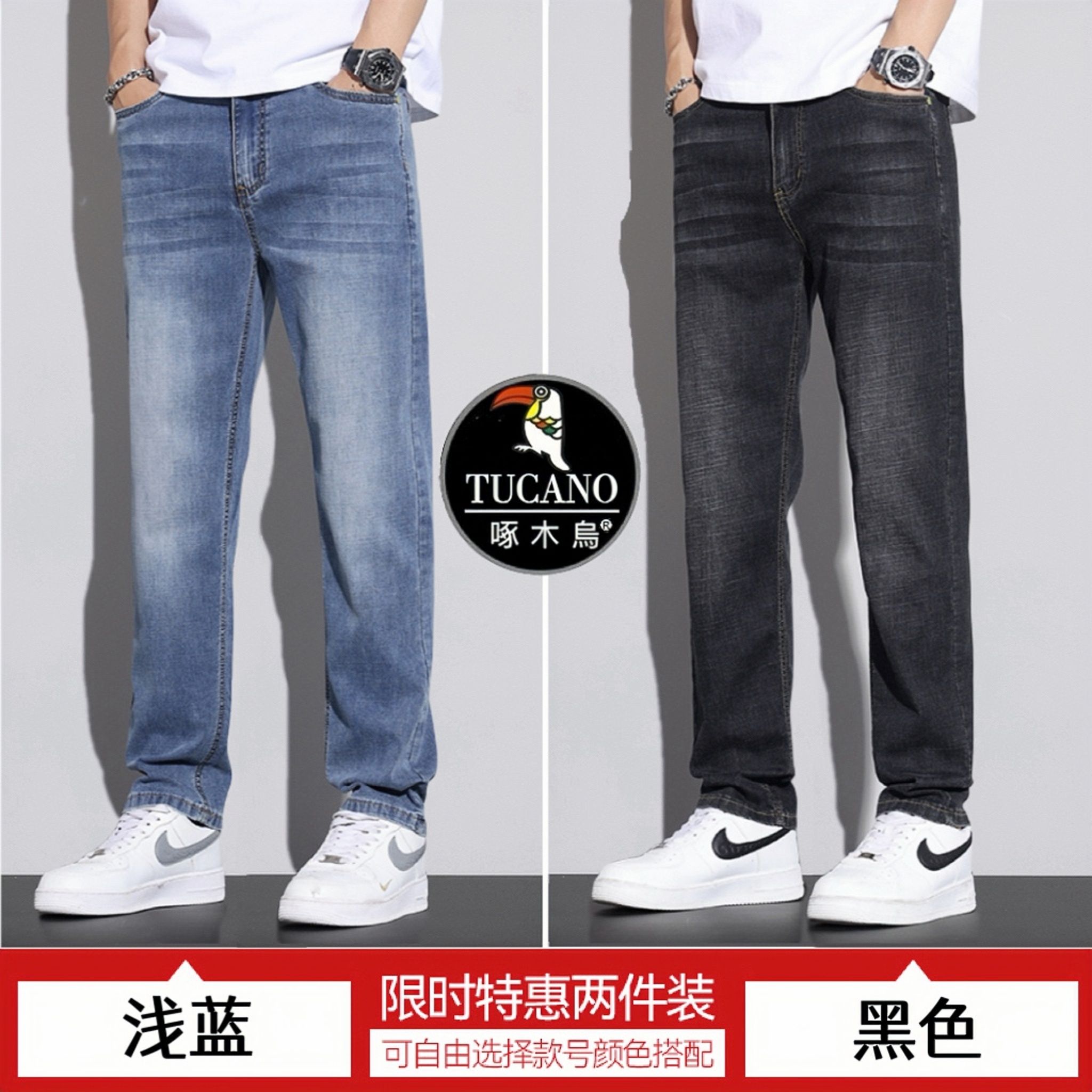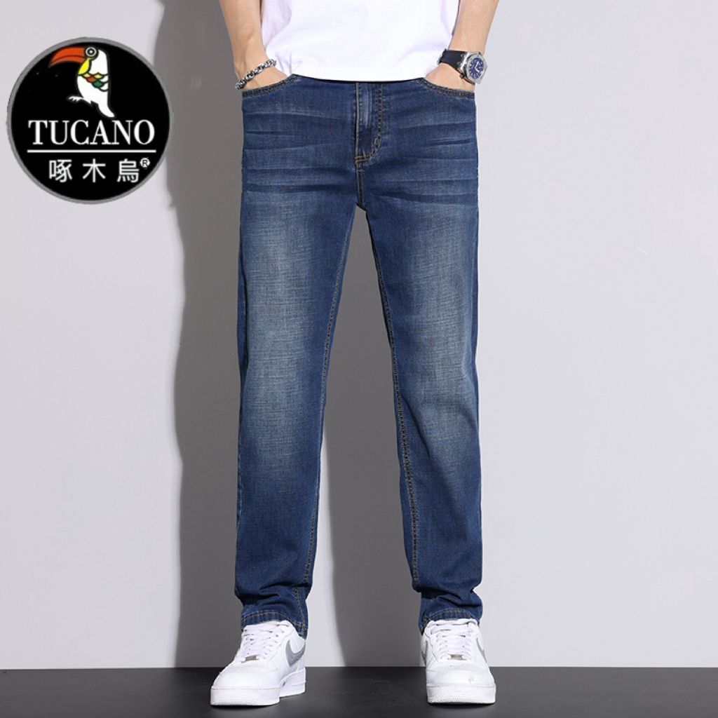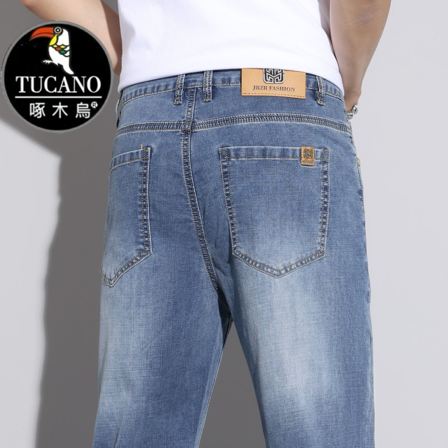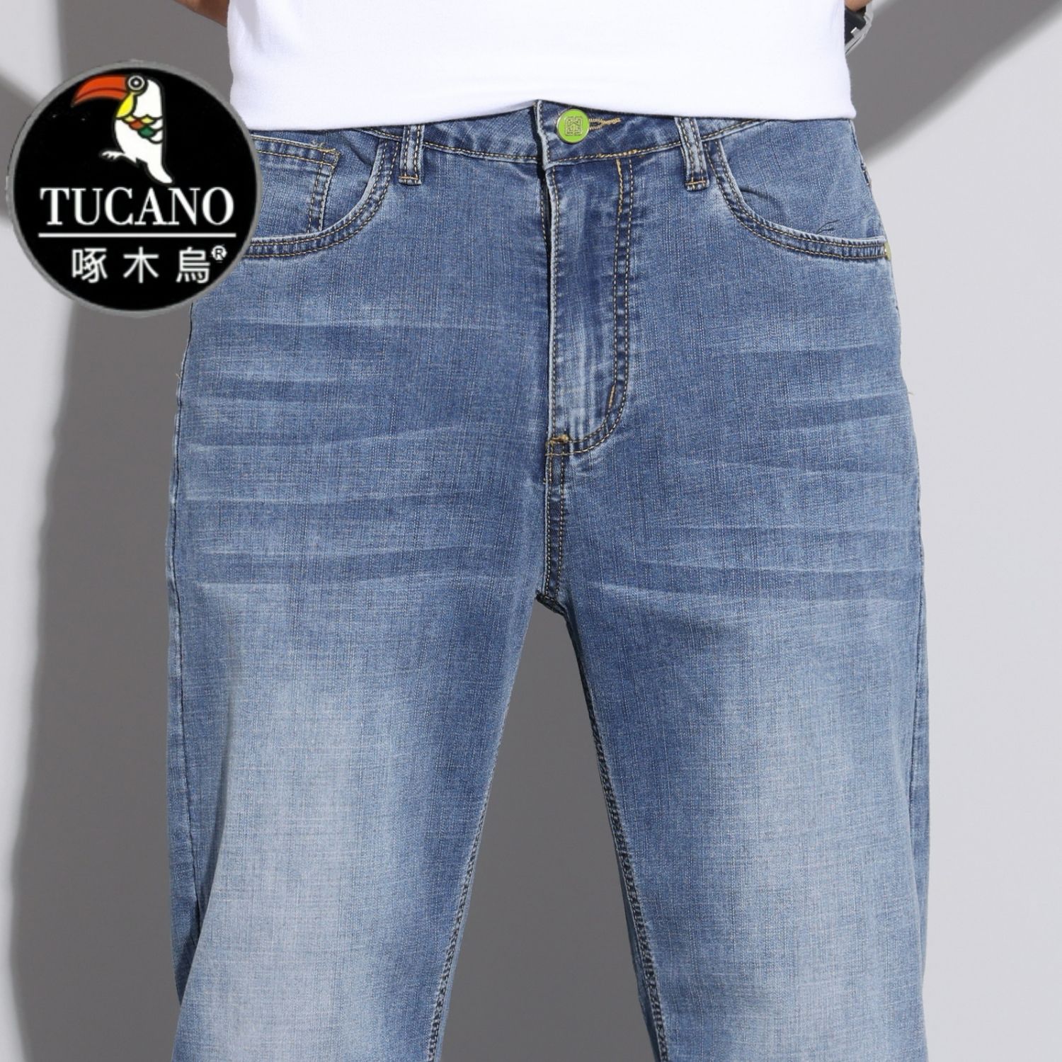 正品啄木鸟牛仔裤男士2024新款高端休闲弹力夏季裤子男薄款直筒裤