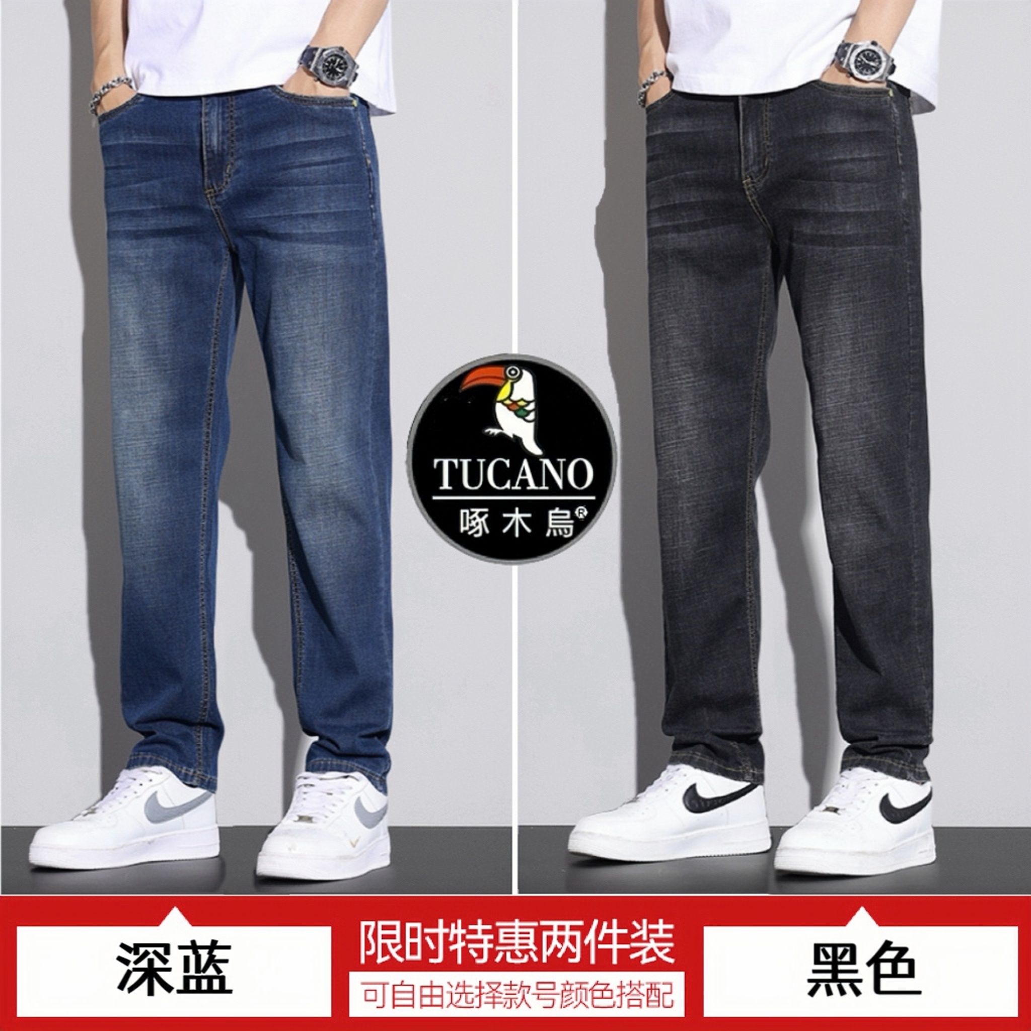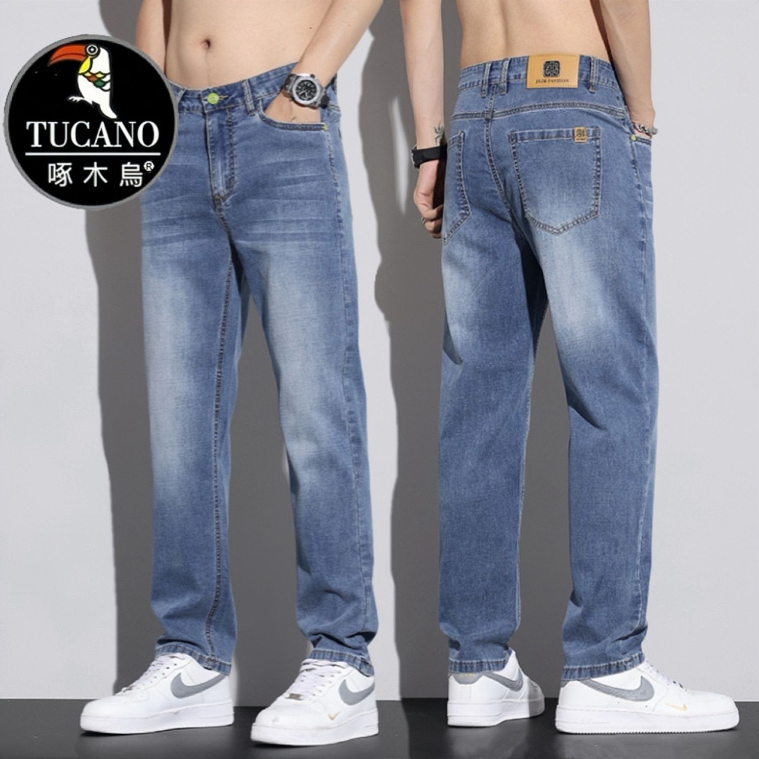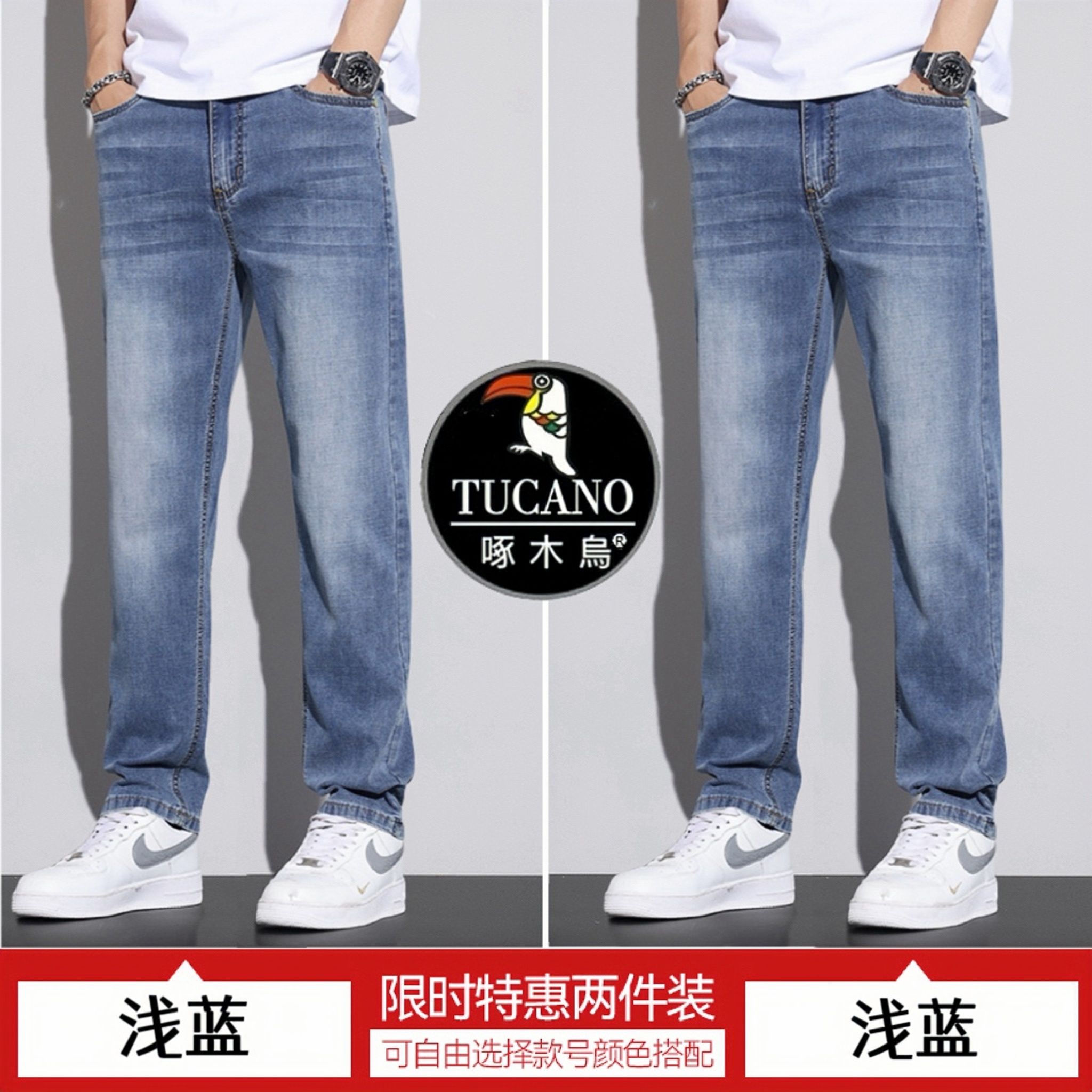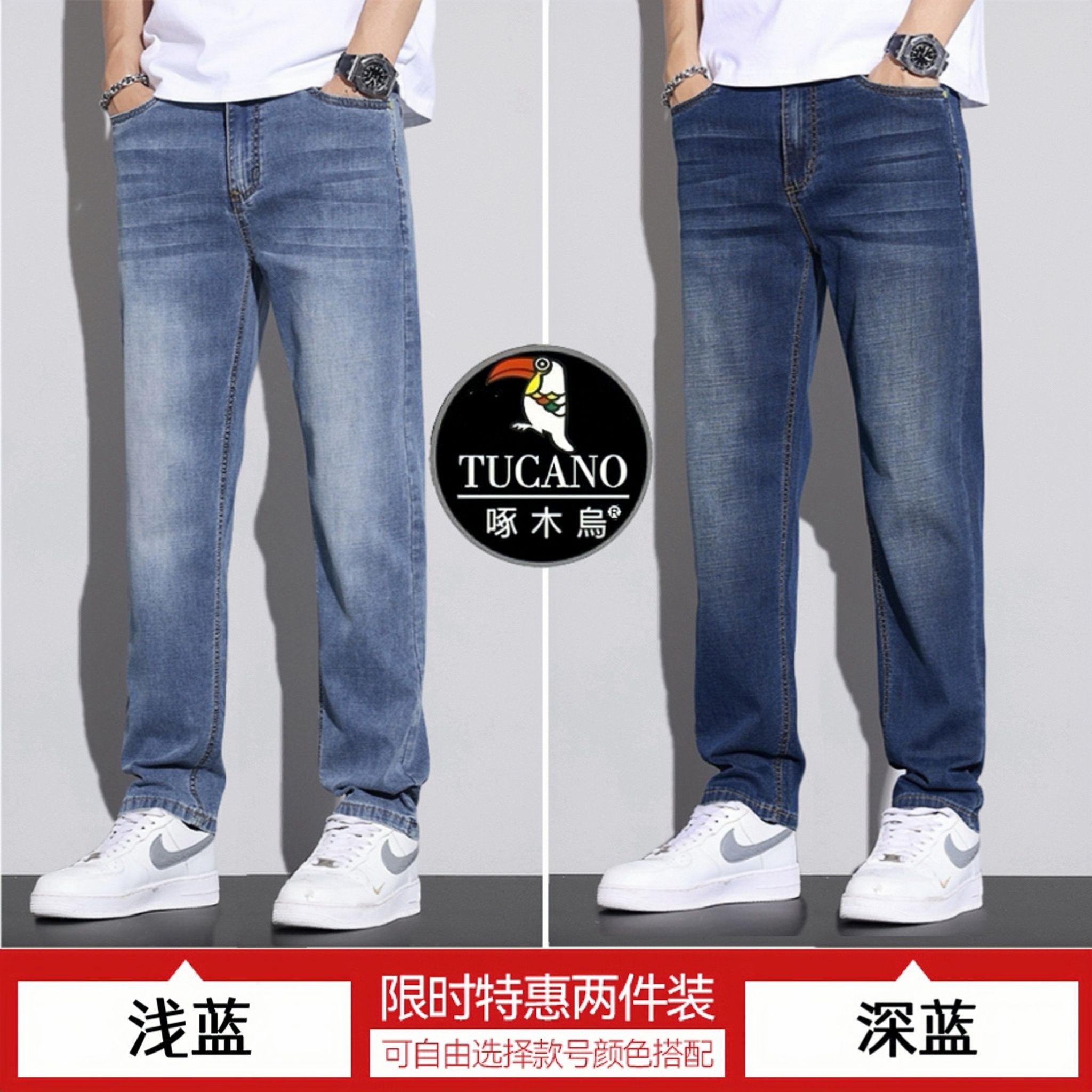 正品啄木鸟牛仔裤男士2024新款高端休闲弹力夏季裤子男薄款直筒裤