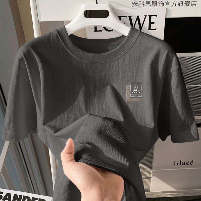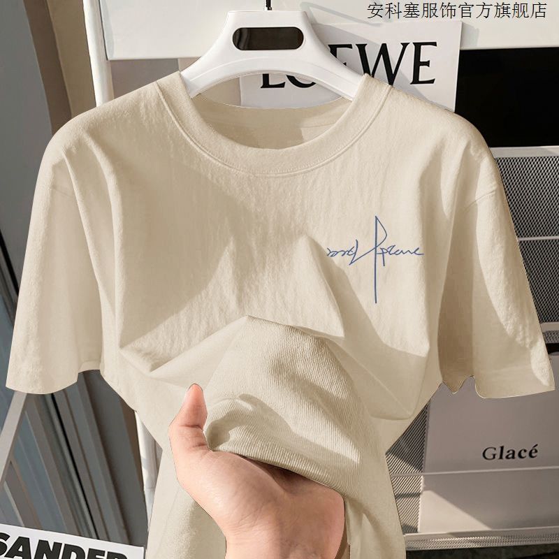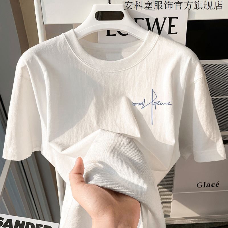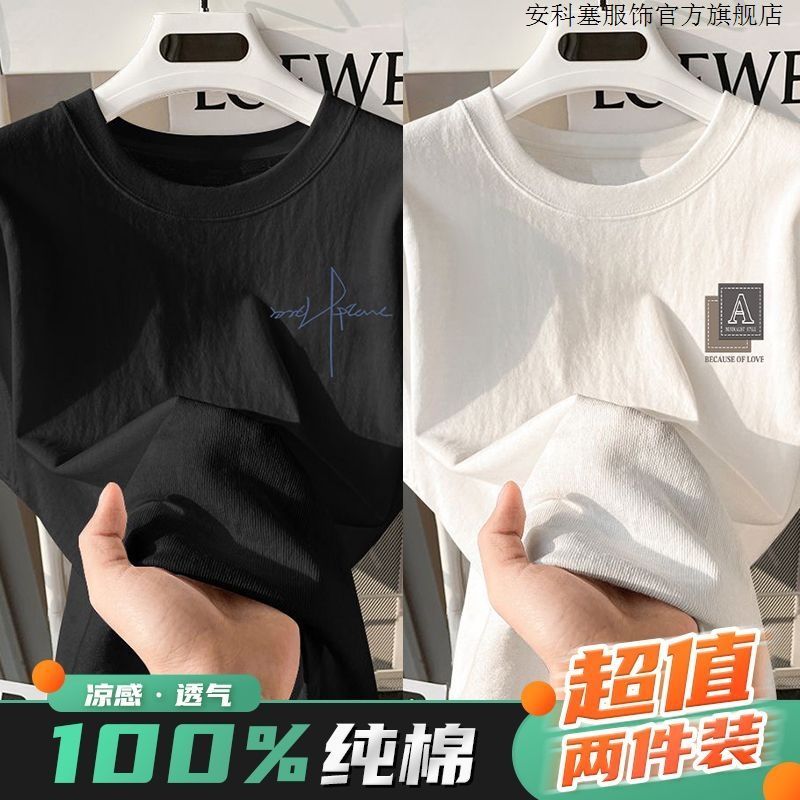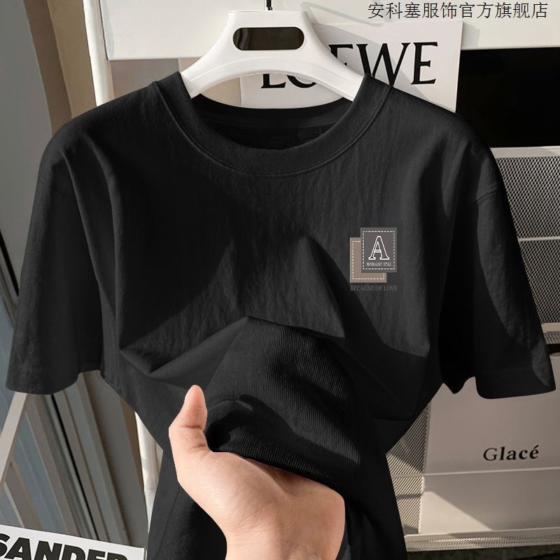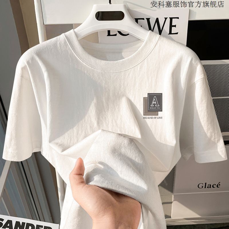 100%纯棉短袖t恤简约男生夏季半袖港风宽松ins潮牌潮流打底衫上衣
