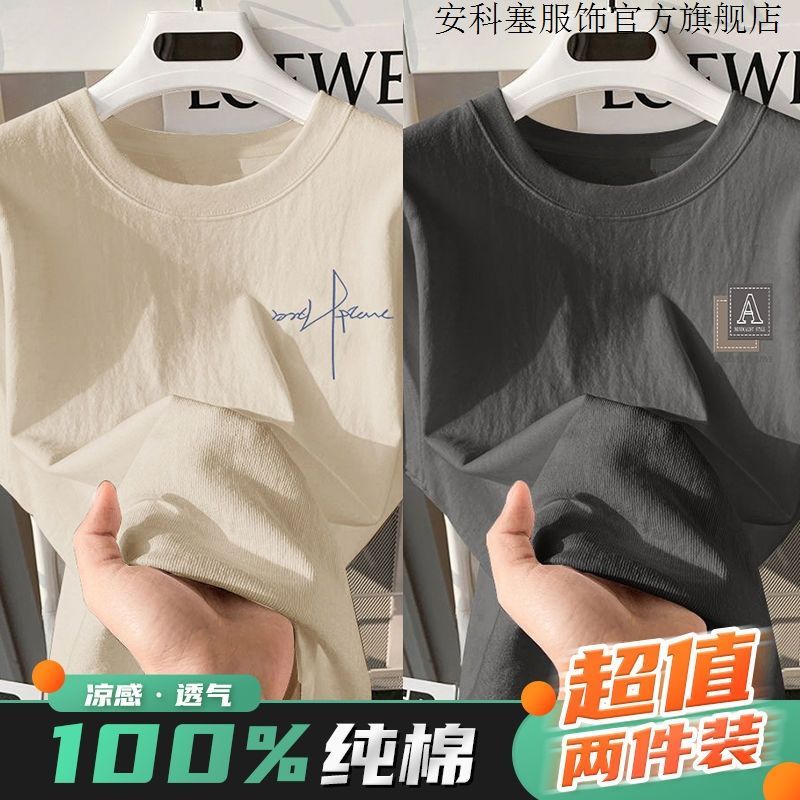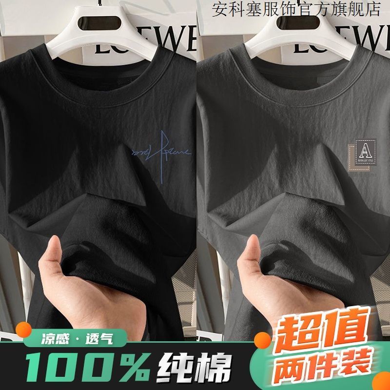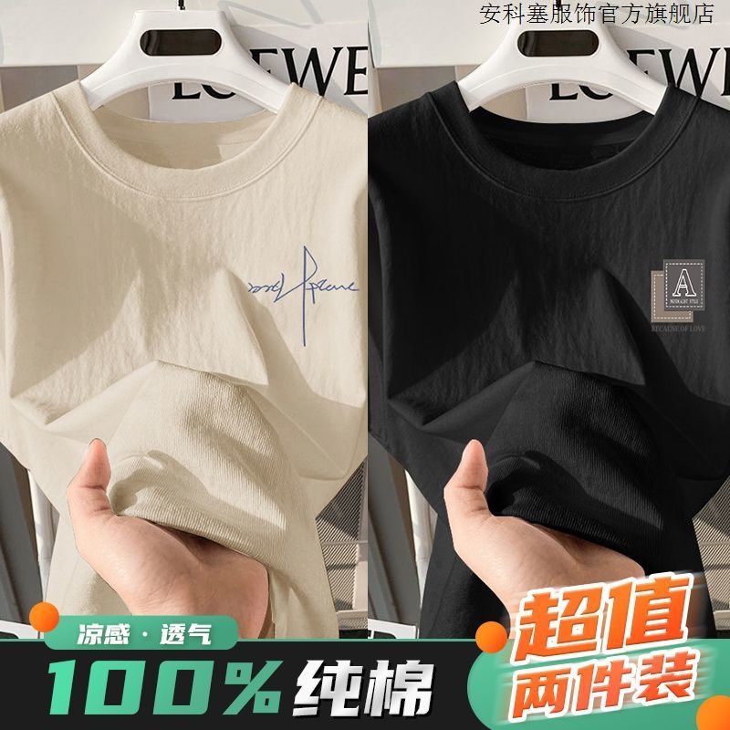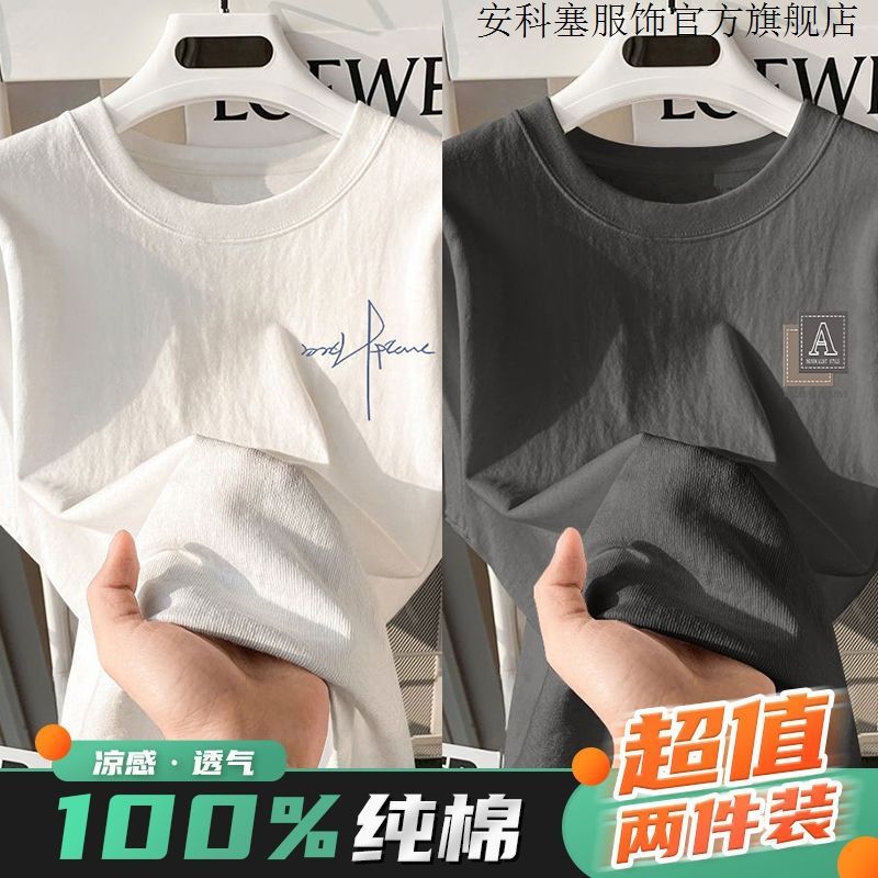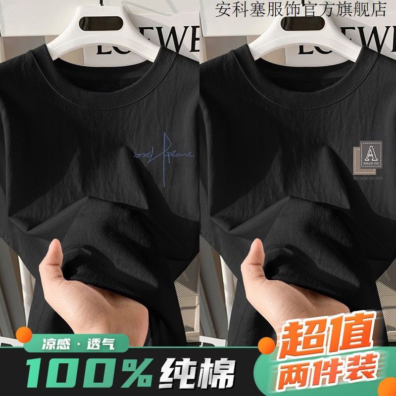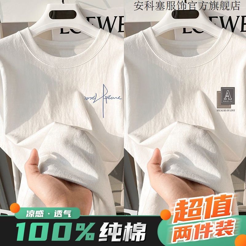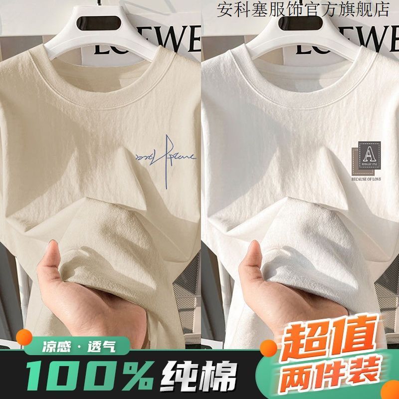 100%纯棉短袖t恤简约男生夏季半袖港风宽松ins潮牌潮流打底衫上衣
