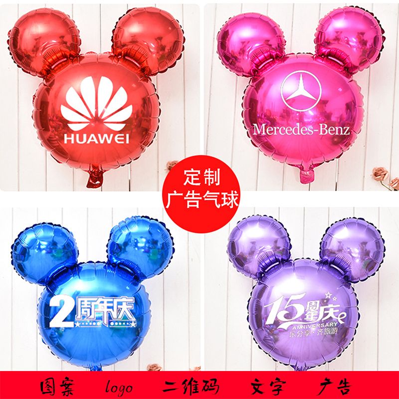 卡通米奇头印字定制铝膜气球幼儿园招生商场开业定制装饰广告汽球