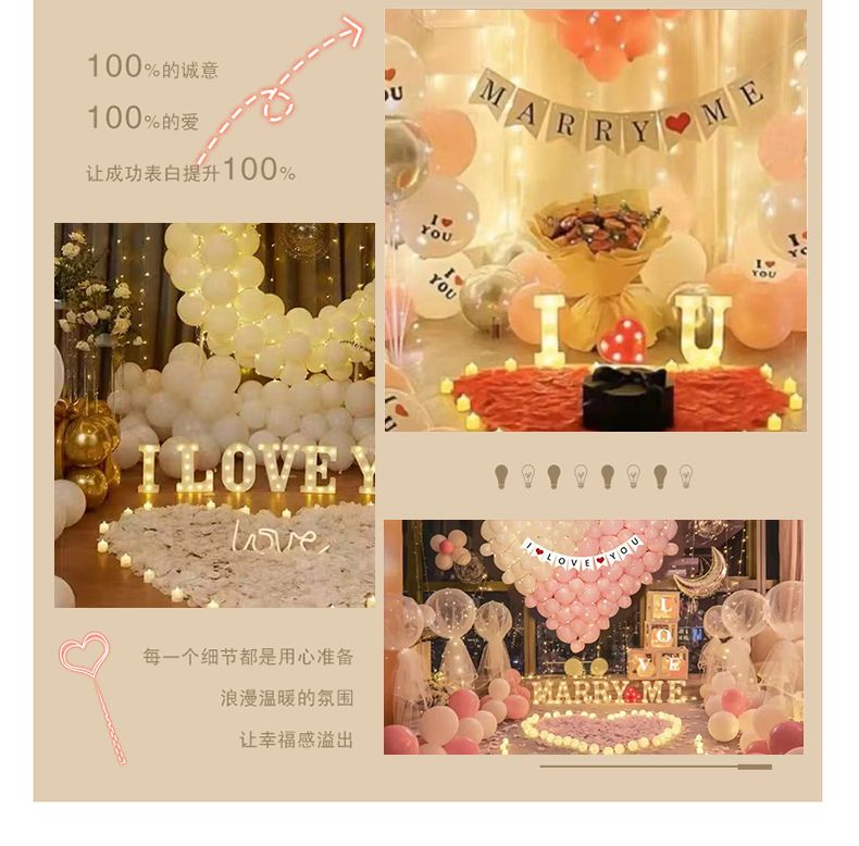 网红情人节求婚装饰布置背景墙表白浪漫告白示爱气球室内装饰仪式