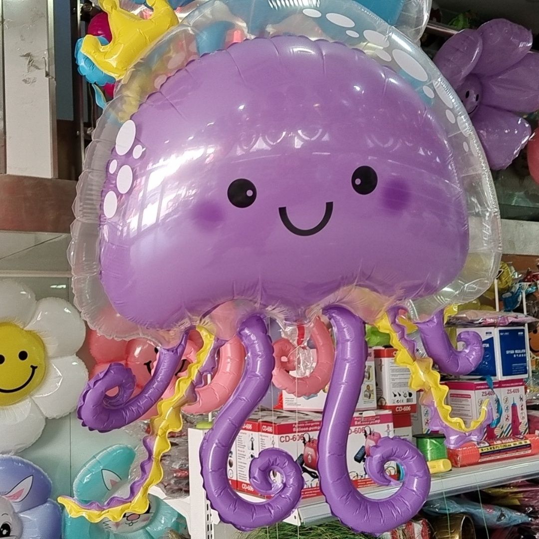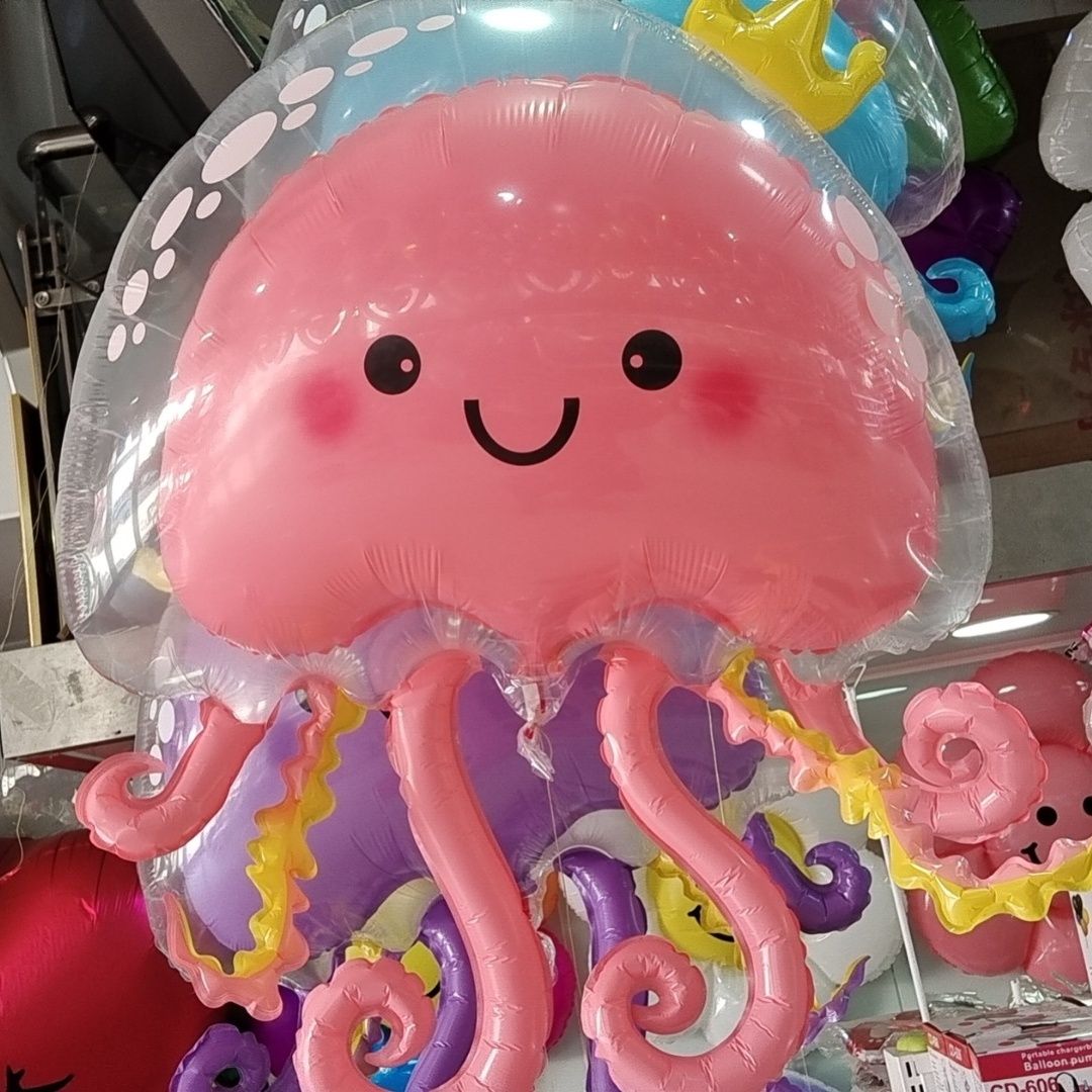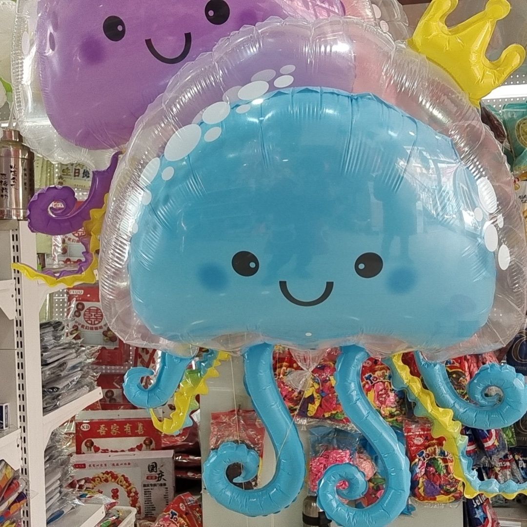 新款网红双层泡泡飘空立体水母章鱼气球皇冠飞天封口卡通地摊摆摊