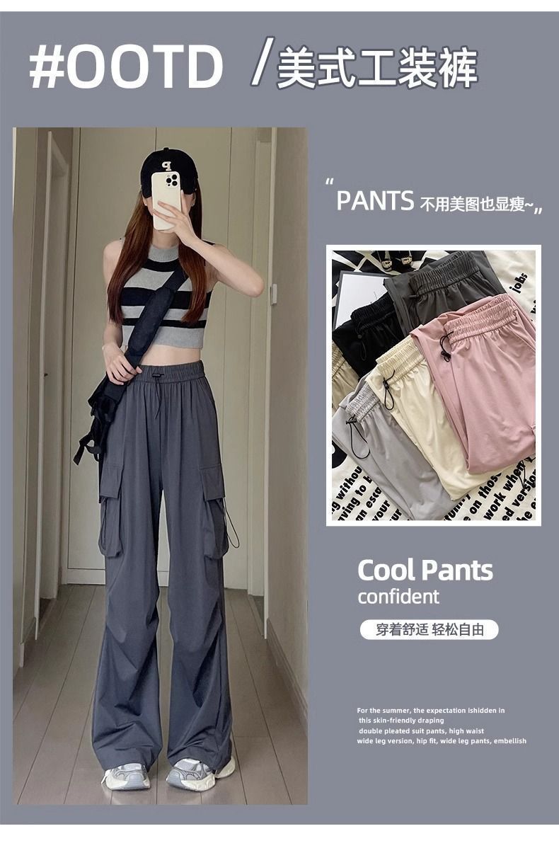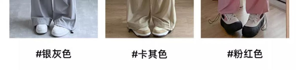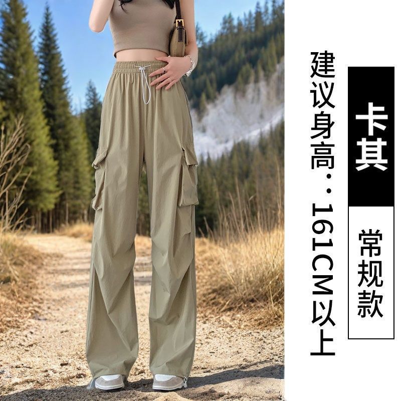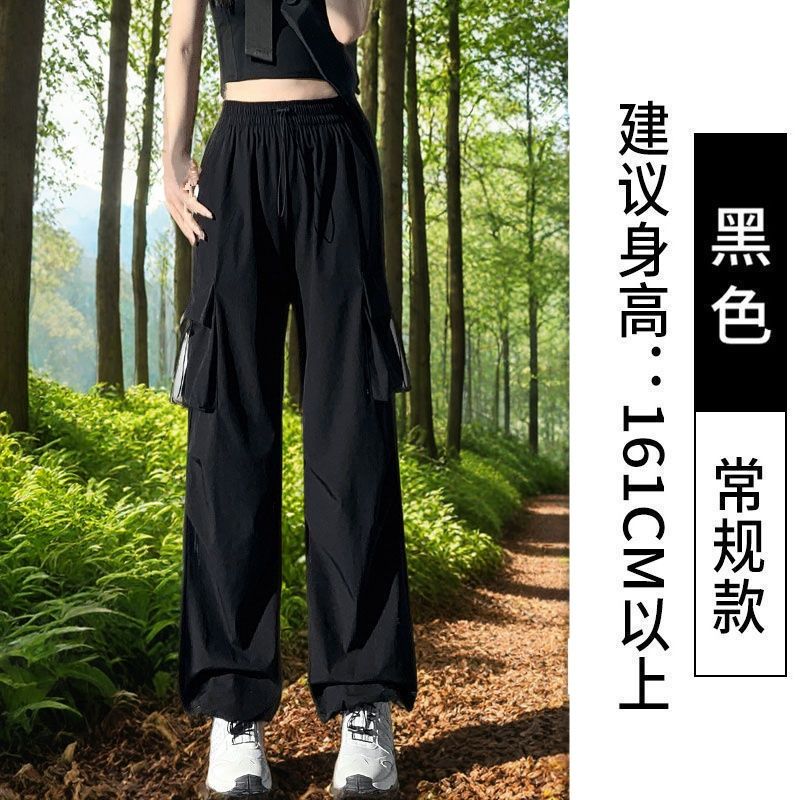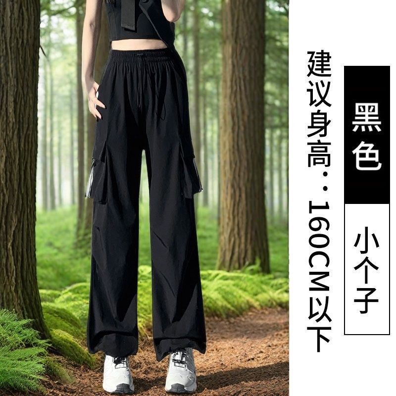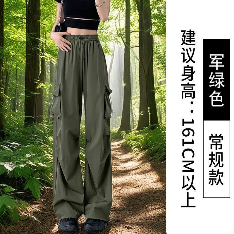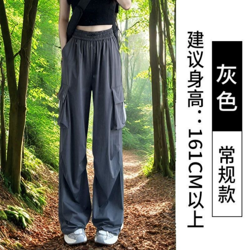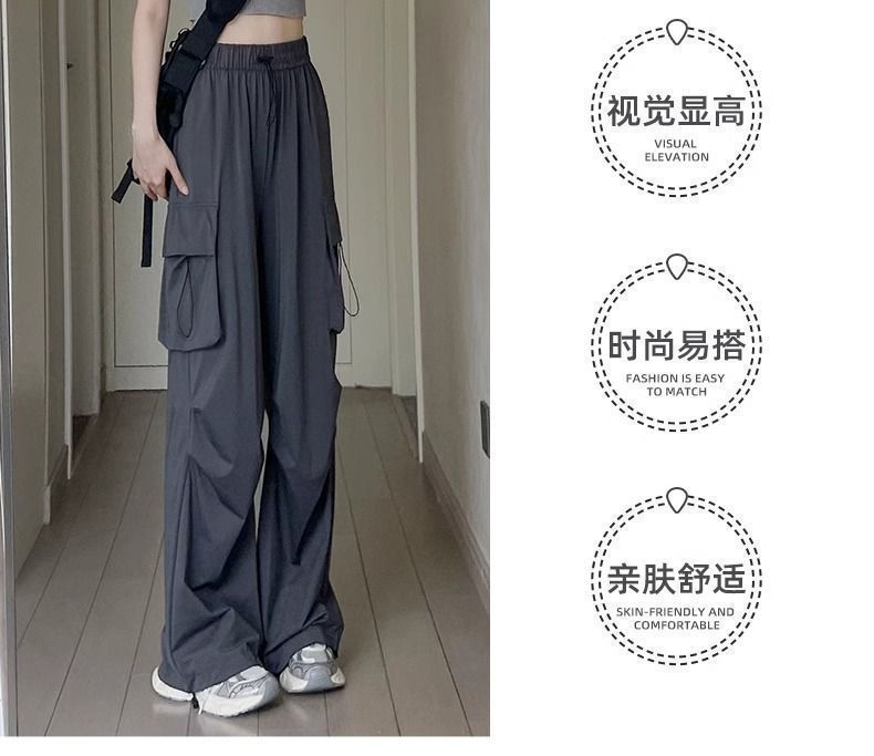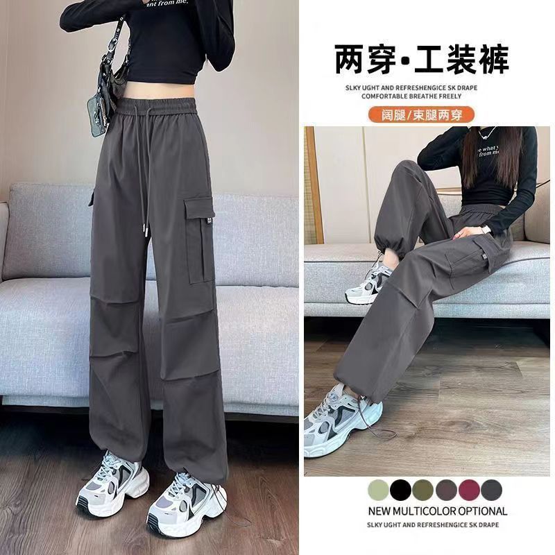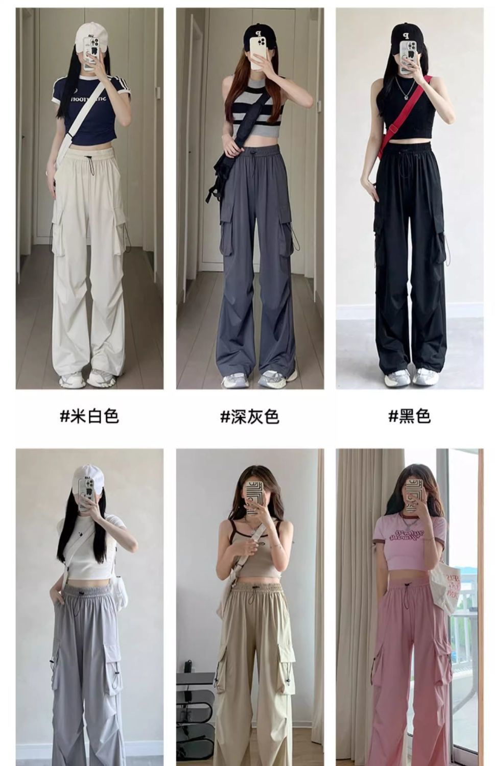 粉色工装裤女秋季2024新款高腰垂感降落伞裤休闲阔腿裤美式运动裤