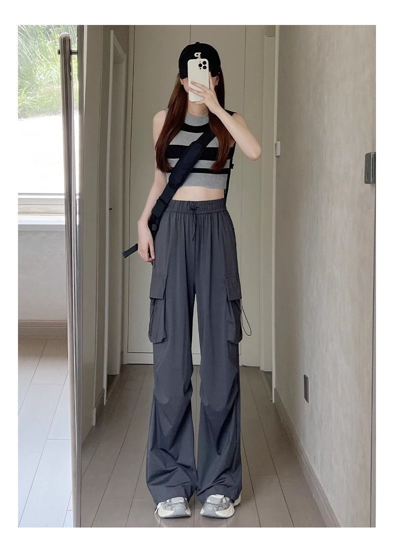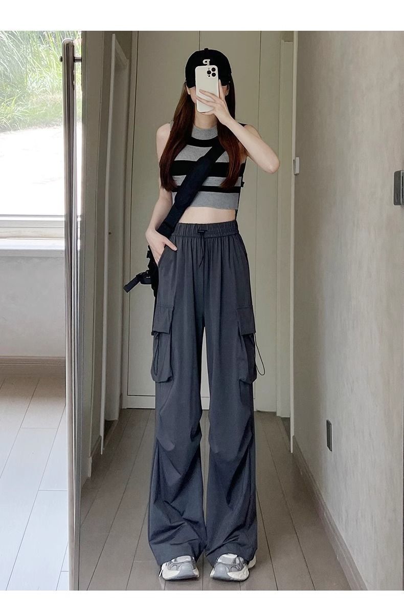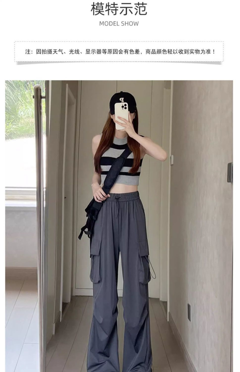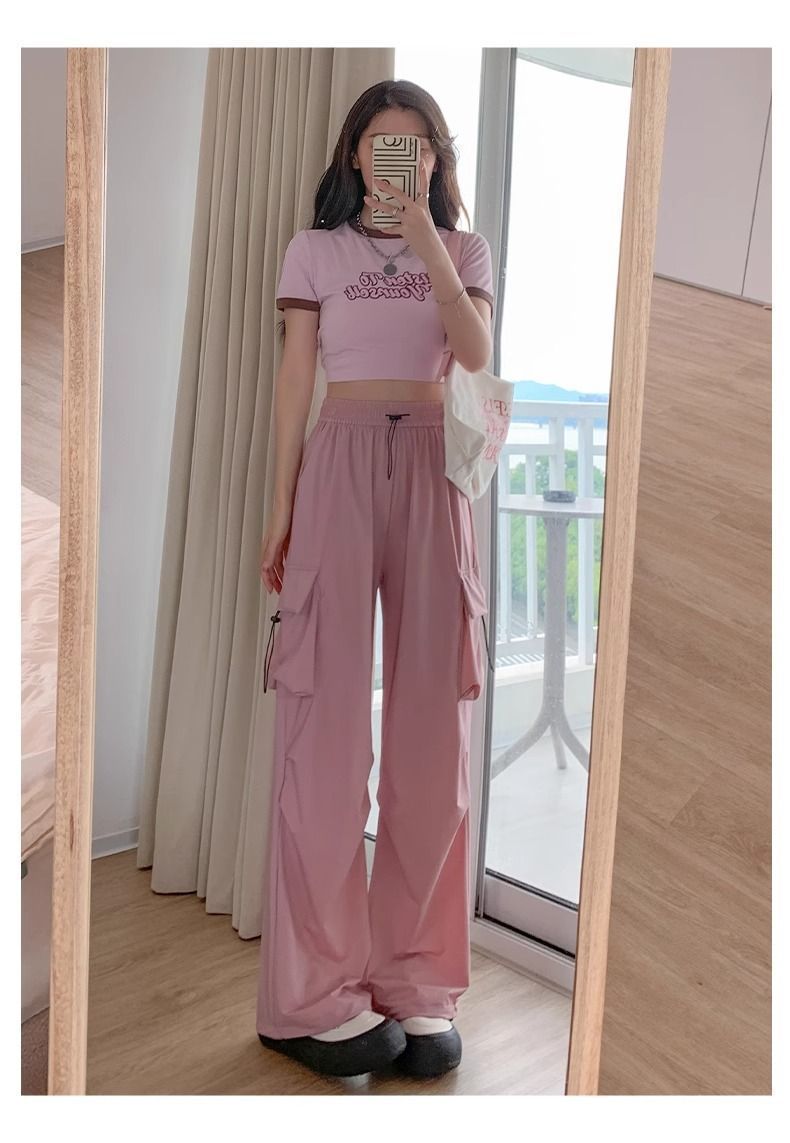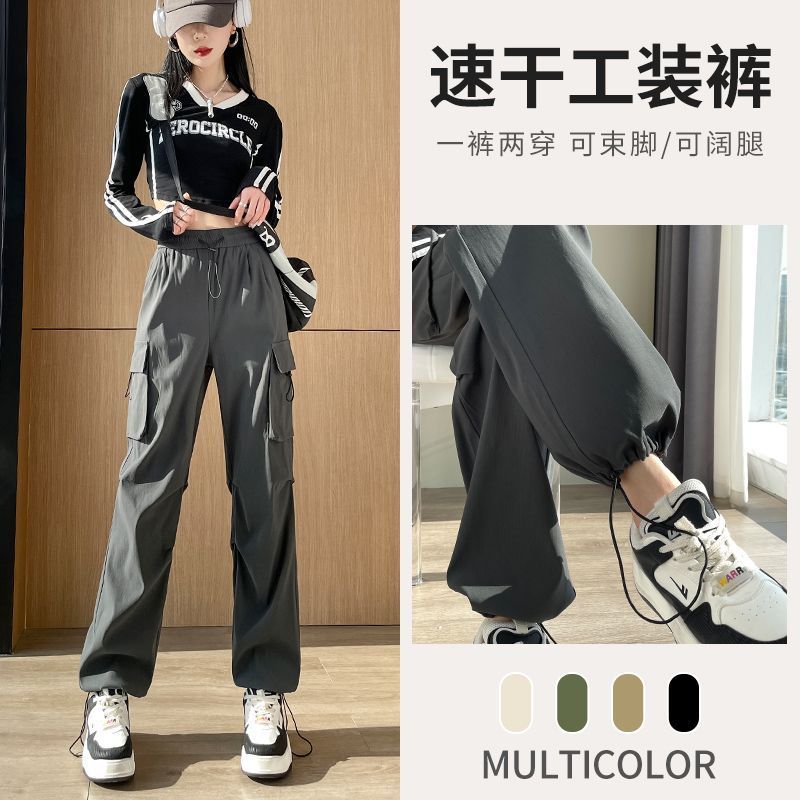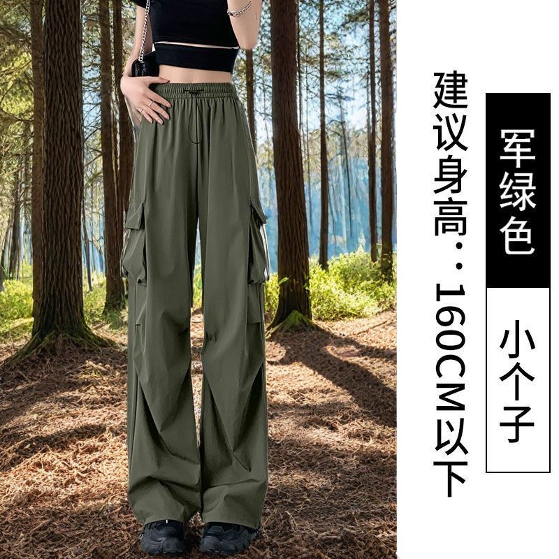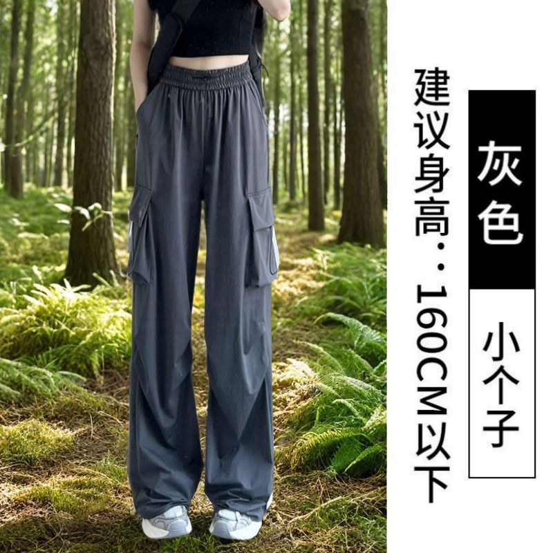 粉色工装裤女秋季2024新款高腰垂感降落伞裤休闲阔腿裤美式运动裤