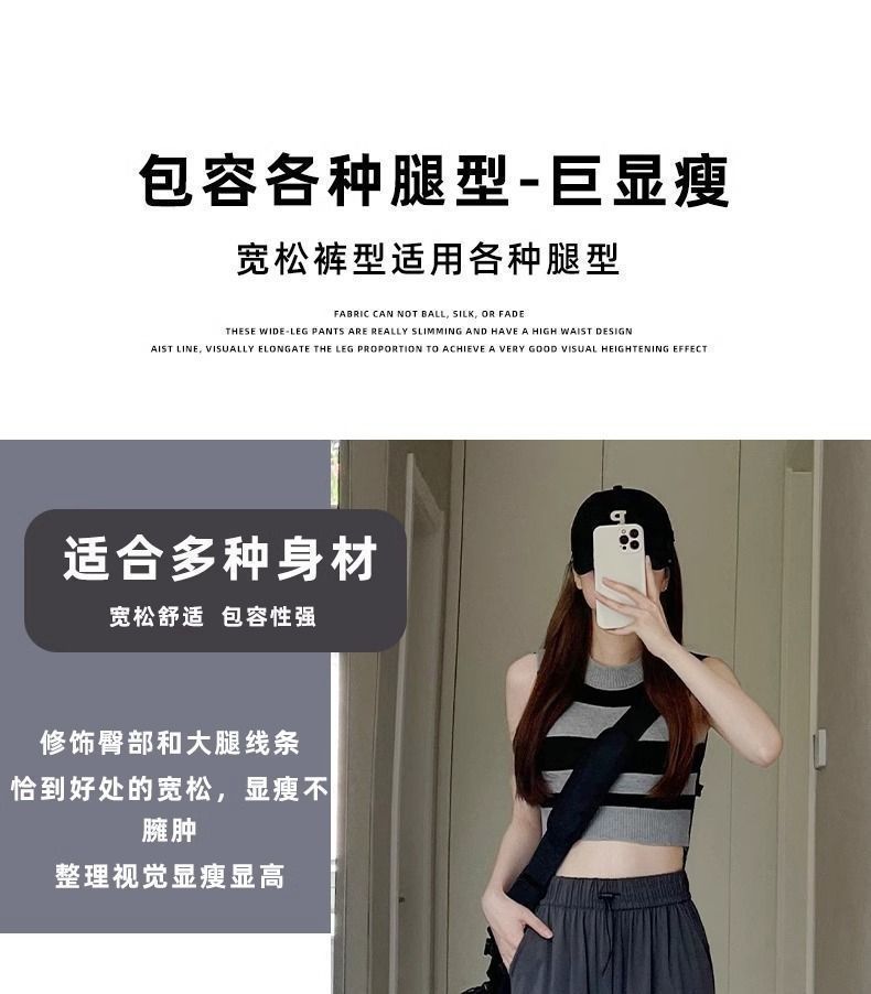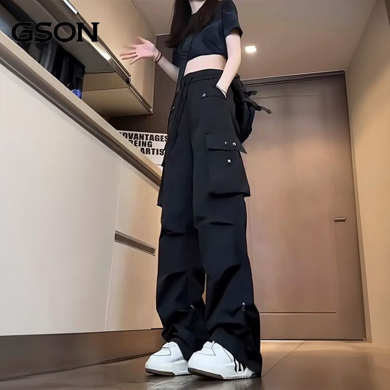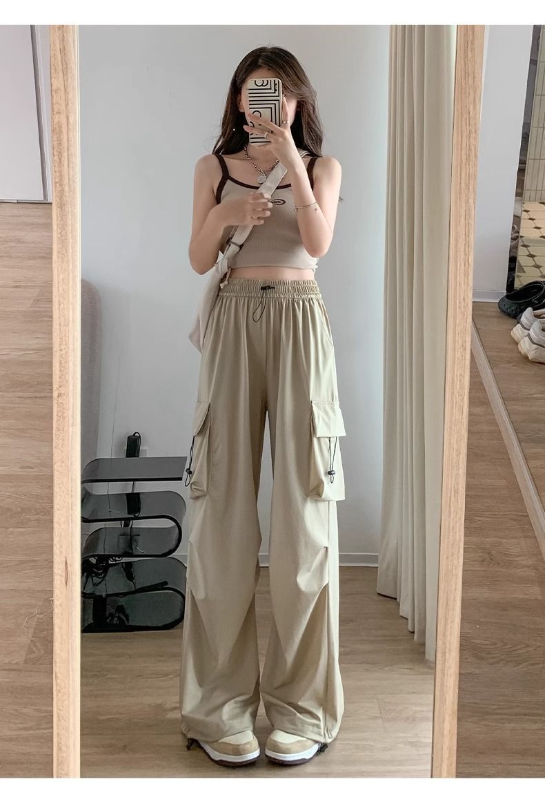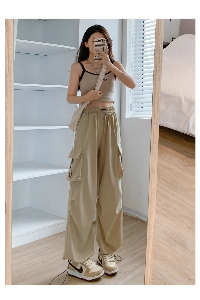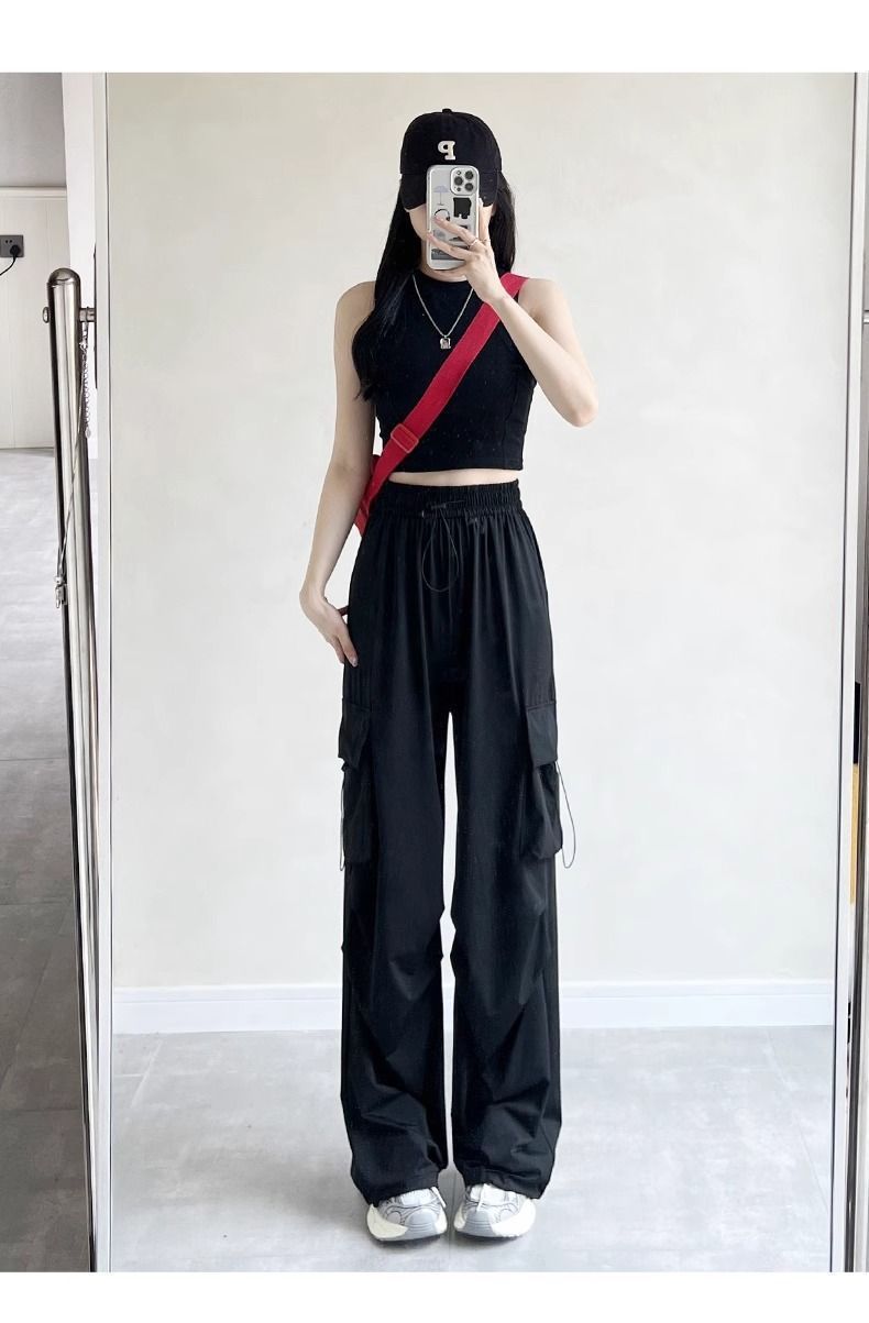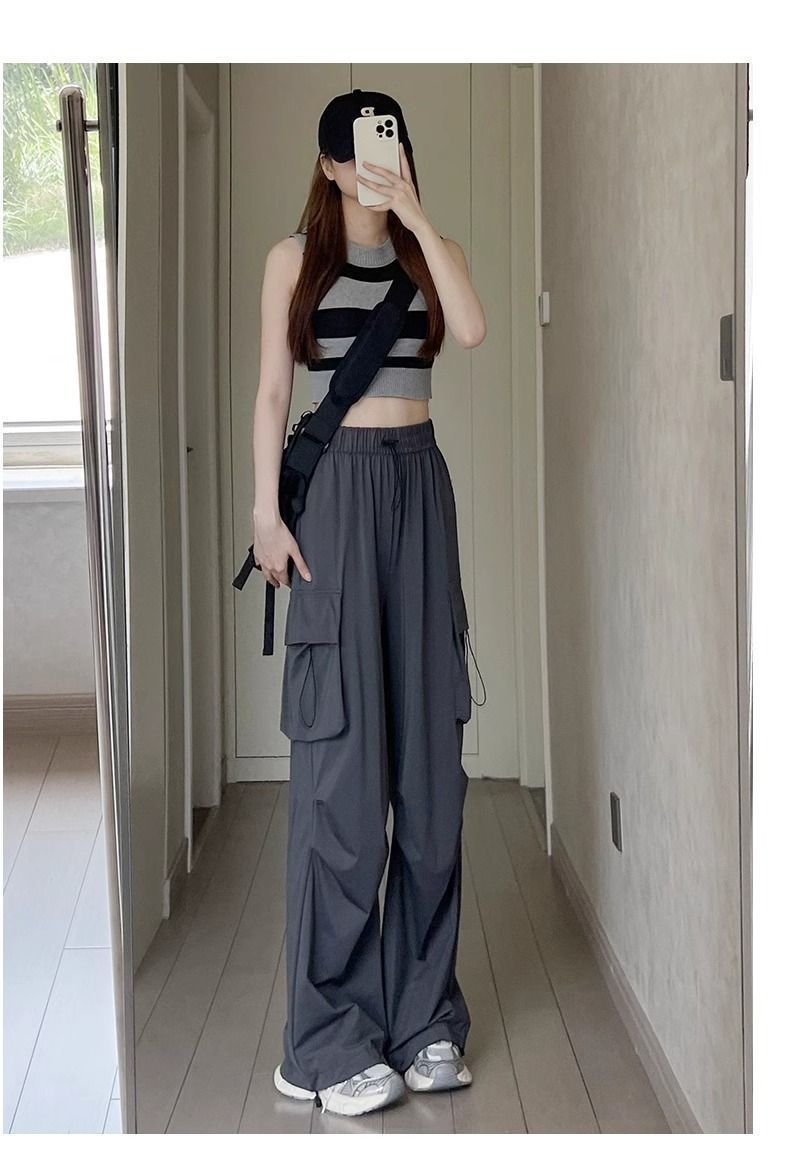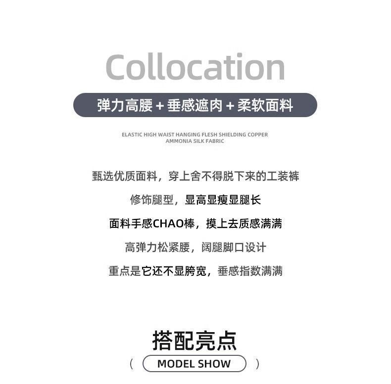 粉色工装裤女秋季2024新款高腰垂感降落伞裤休闲阔腿裤美式运动裤