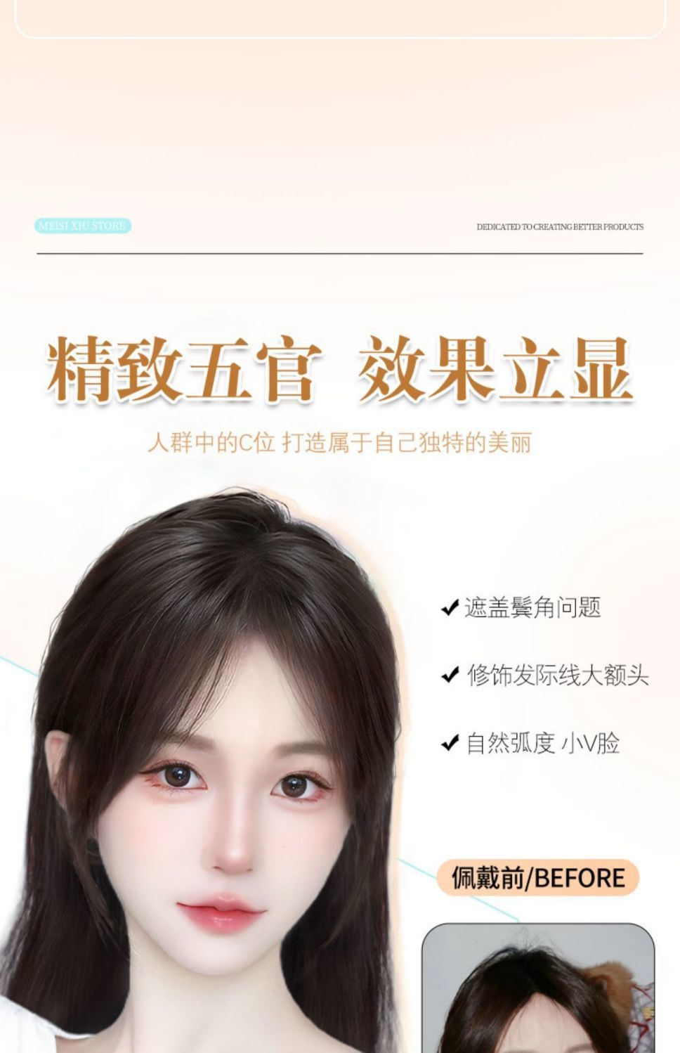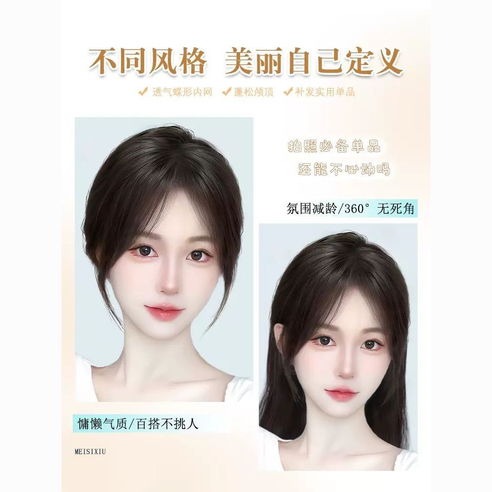 新款发片女头顶补发量高颅顶蓬松增发量仿真发胎毛八字刘海遮白发