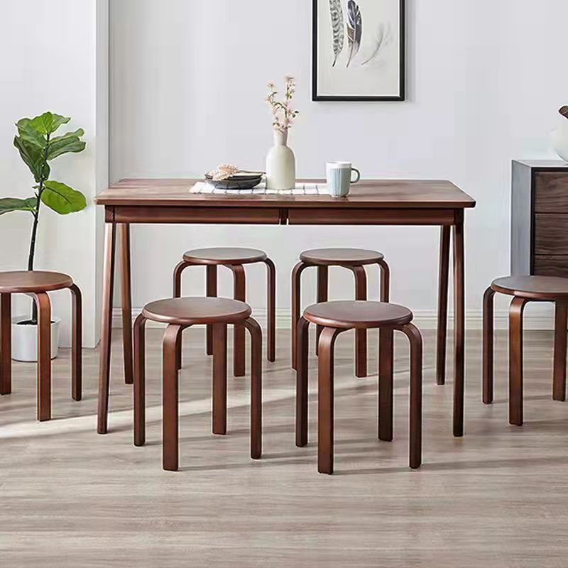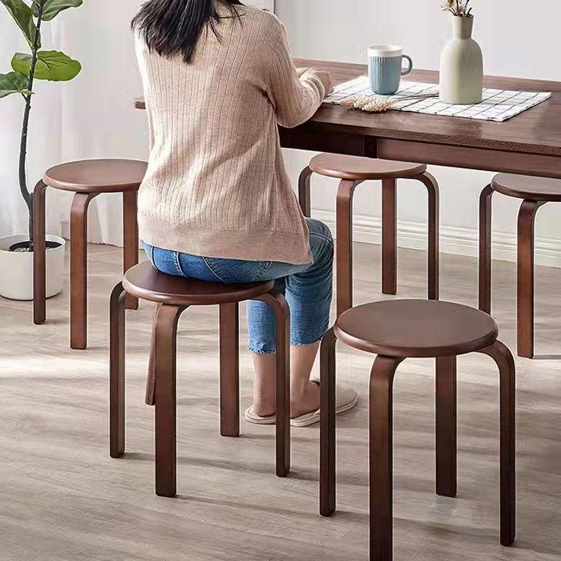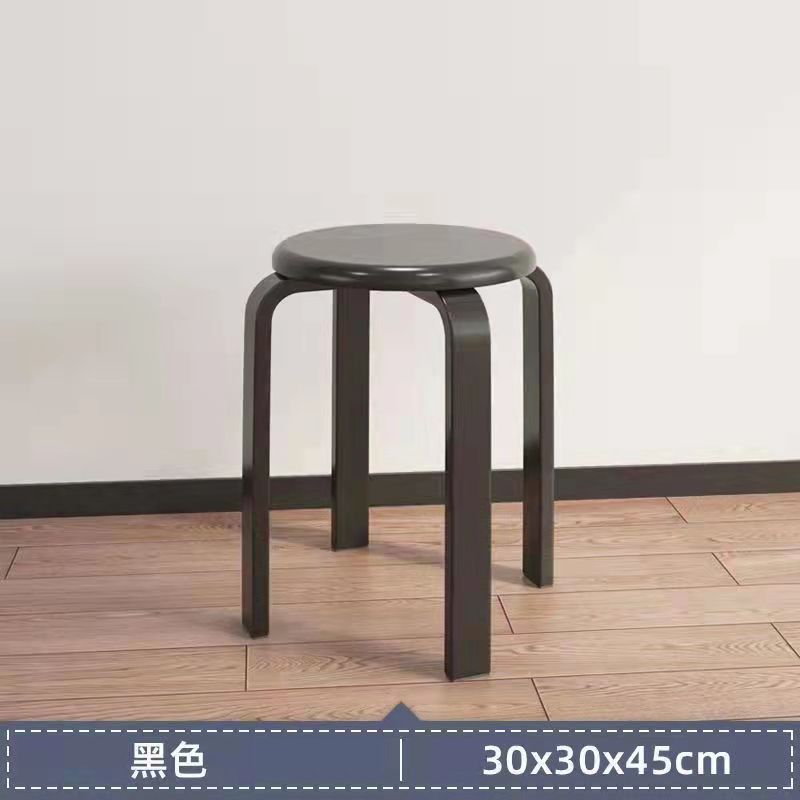 客厅小凳子家用圆凳餐厅黑胡桃色可叠摞网红成人加厚木骨架餐椅