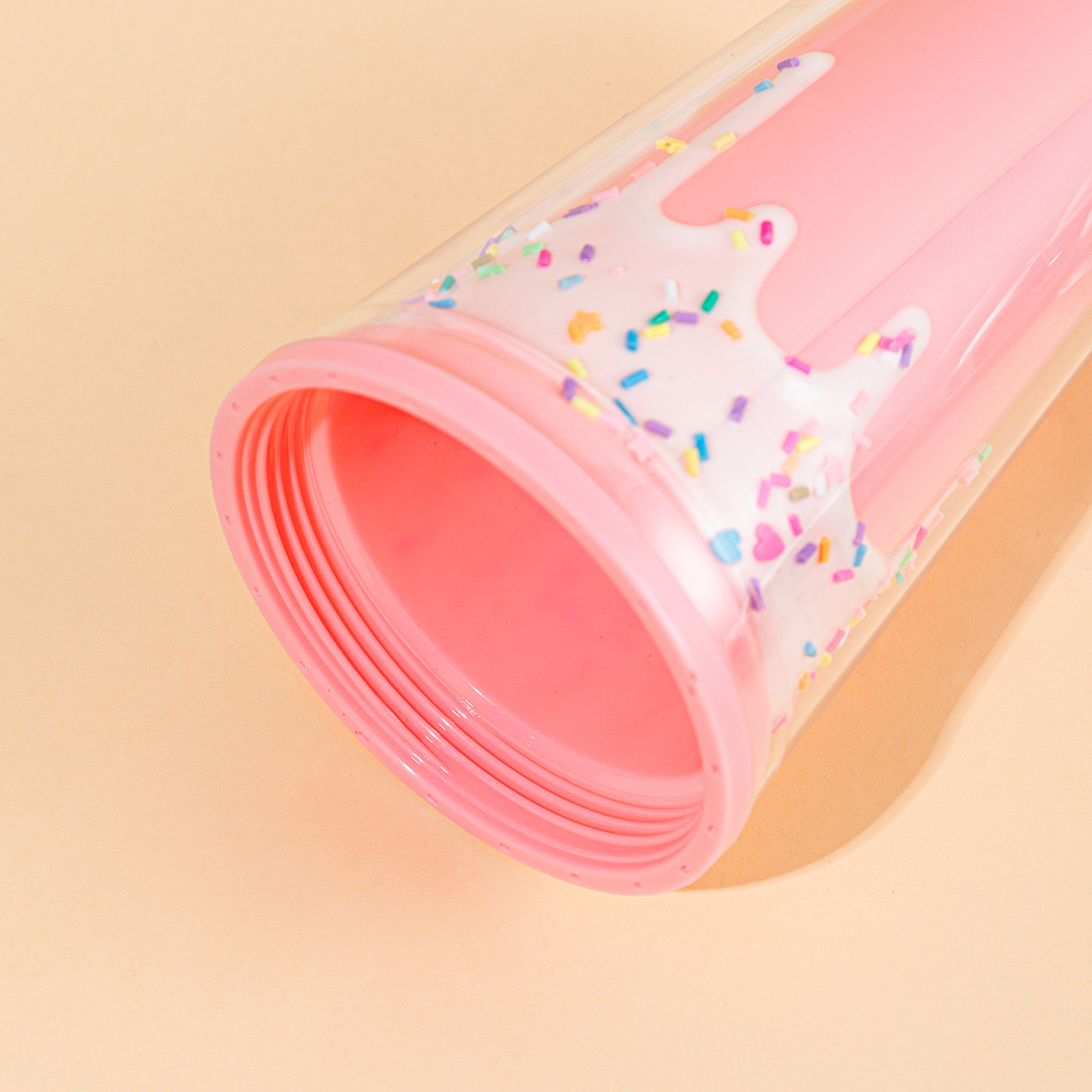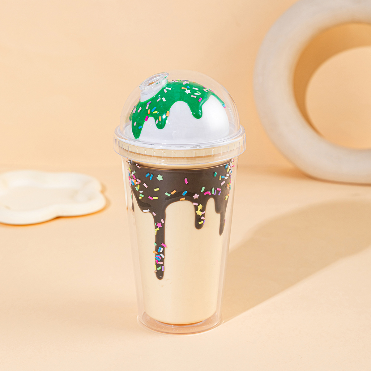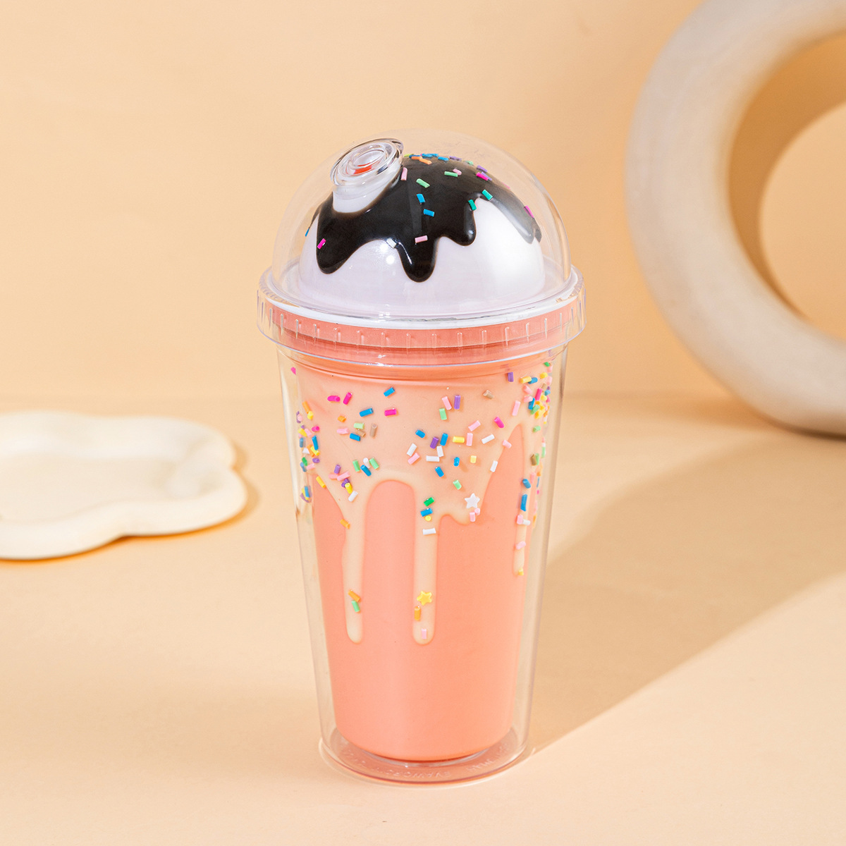 外贸新款网红吸管杯双层带盖情侣水杯批发奶油滴胶冰淇淋雪糕杯子