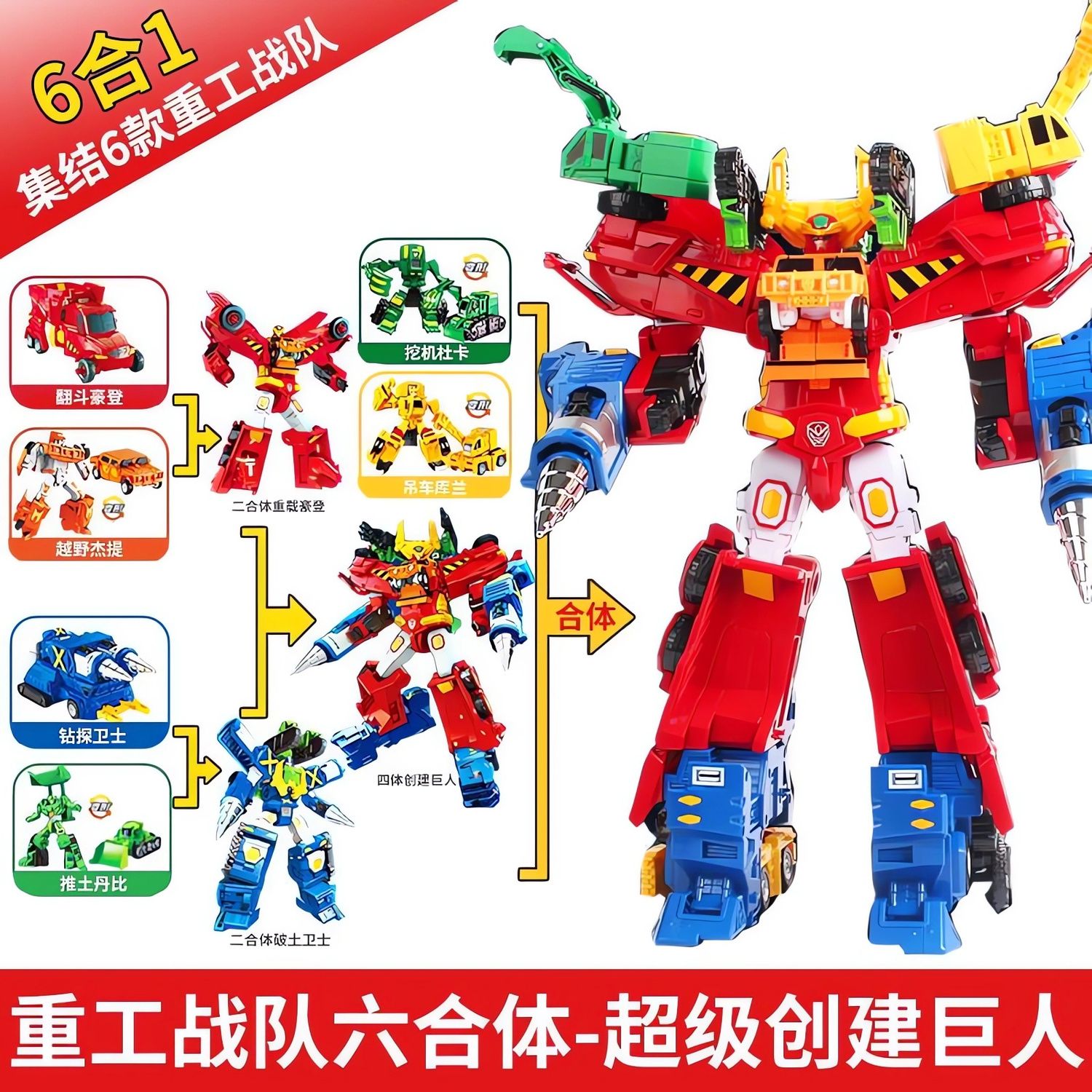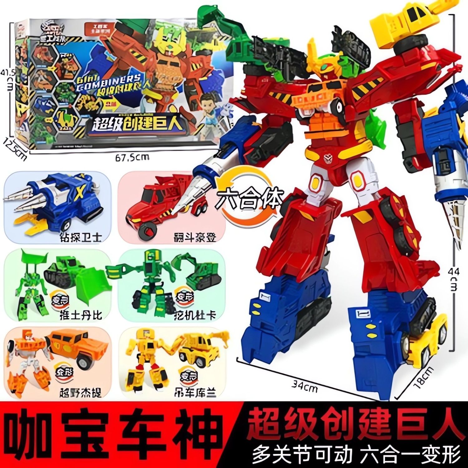 咖宝车神变形玩具重工战队超级创建巨人6合1汽车机器人卡宝战神