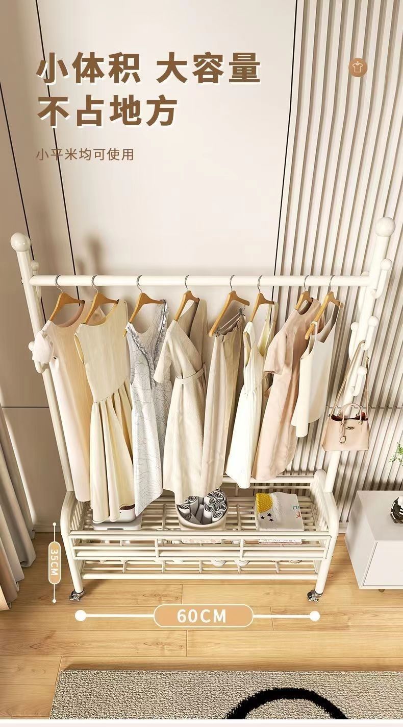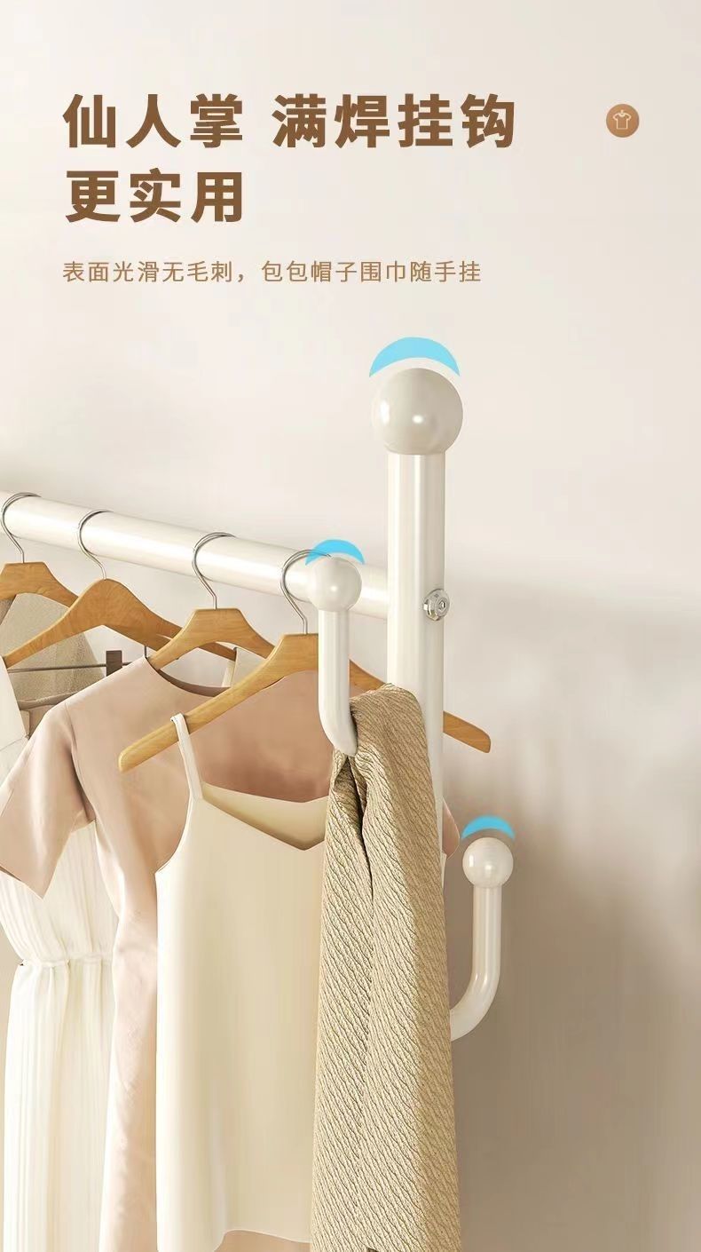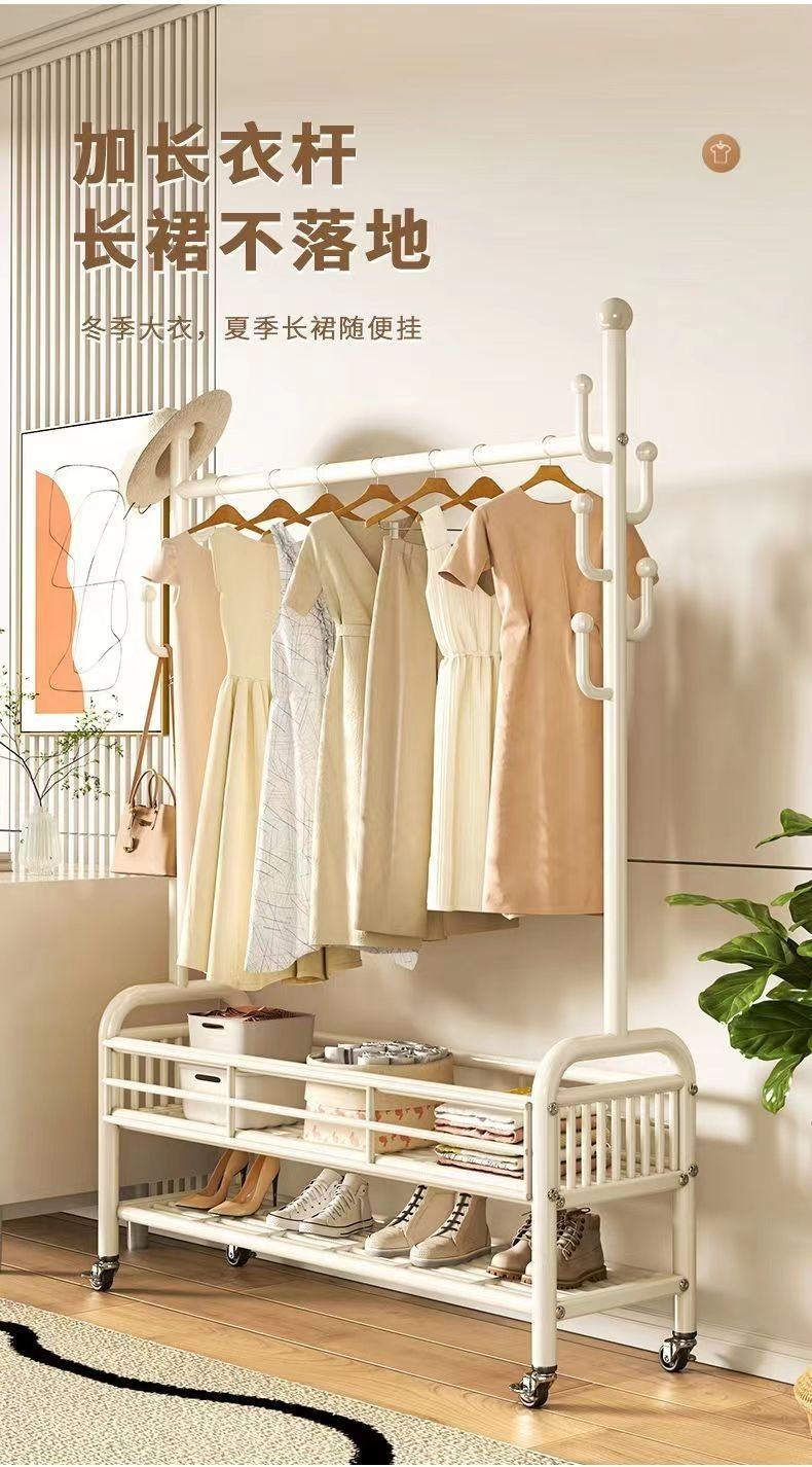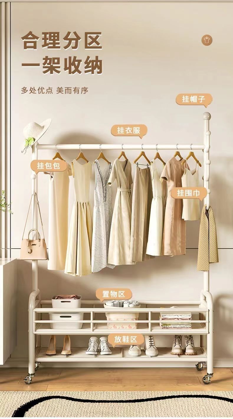 落地挂衣架加粗衣帽架室内加厚可移动带轮晾衣架阳台晾晒衣服架子