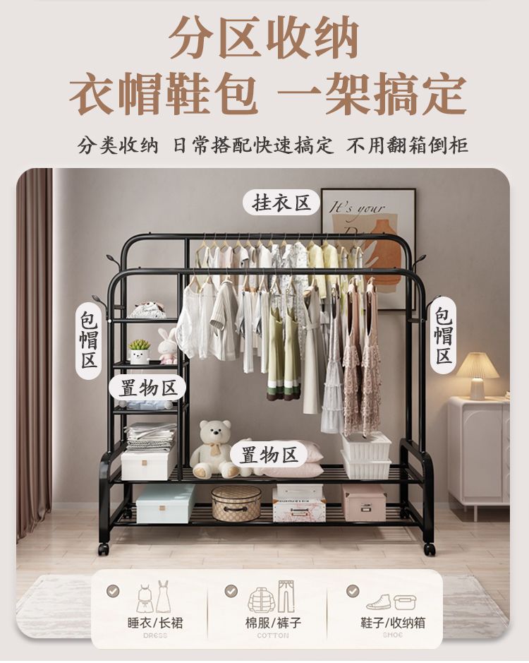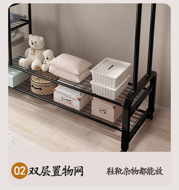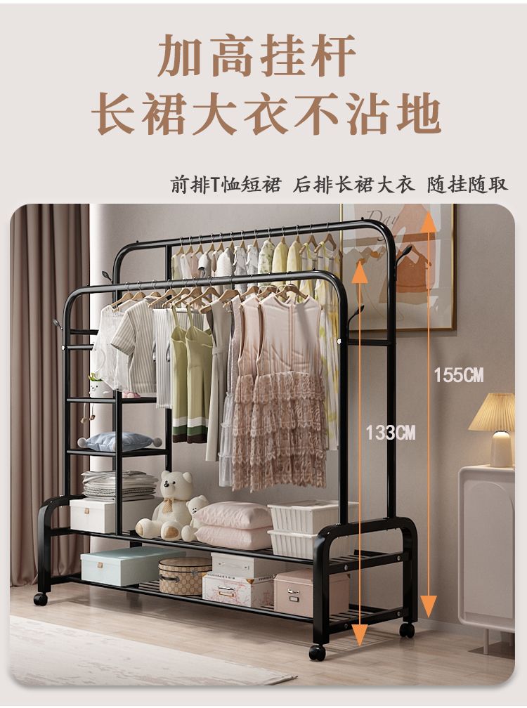| 150cm (black) double rod + multi-layer storage + wheel(150cm(黑)双杆+多层置物+轮子) | USD $23.16 | 99999 piece available |