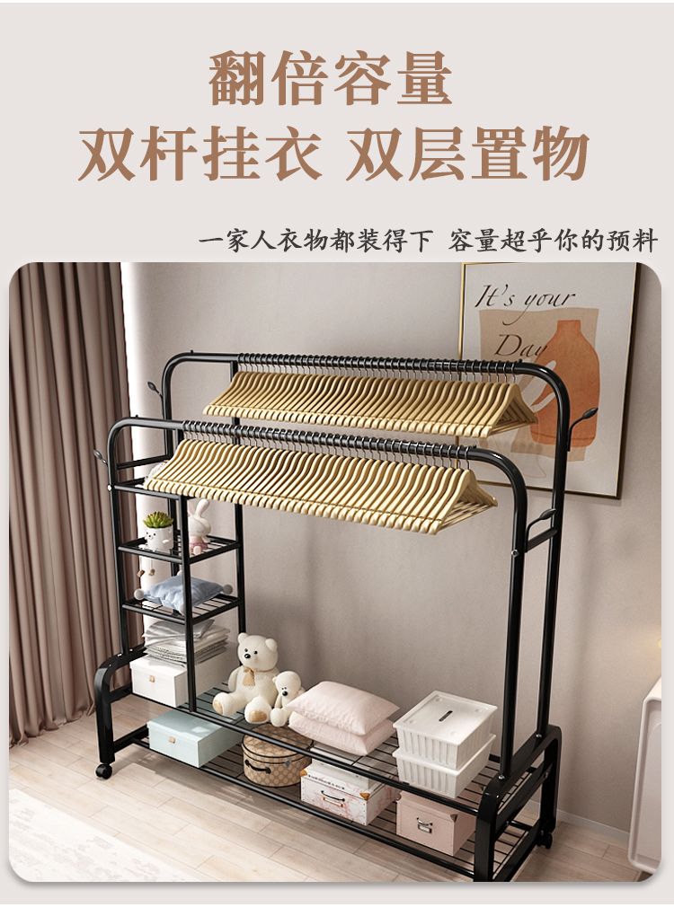 | 150cm (black) double rod + double-layer storage rack + wheels(150cm(黑)双杆+双层置物架+轮子) | USD $19.3 | 99999 piece available |
