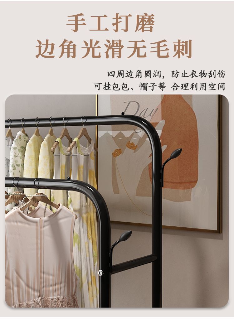 衣架落地立式简易衣帽架卧室落地挂衣架加粗家用钢管收纳衣服架