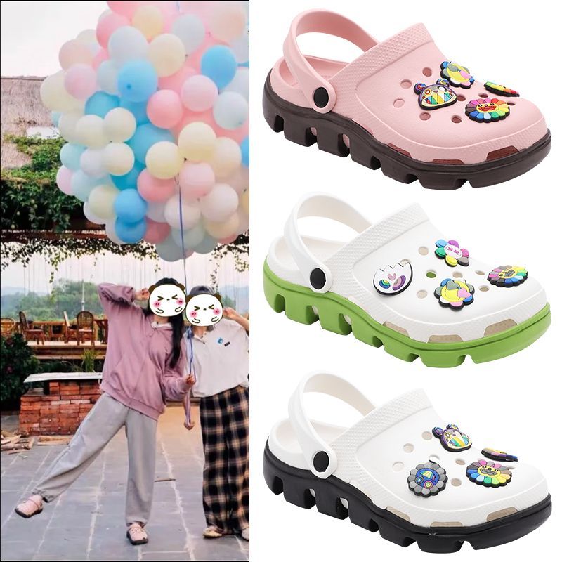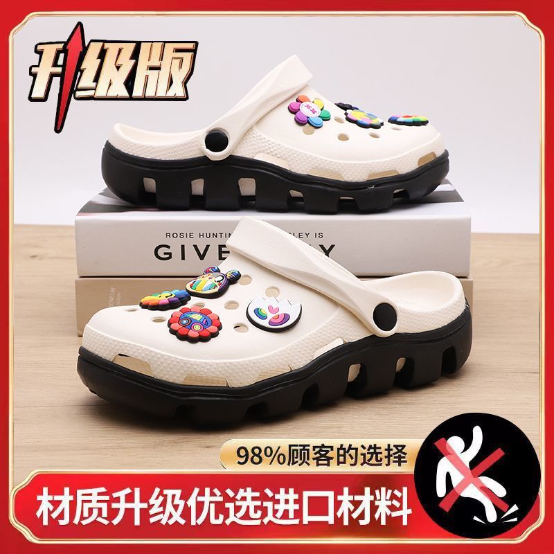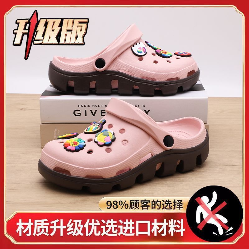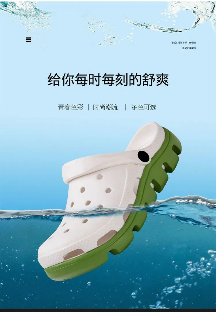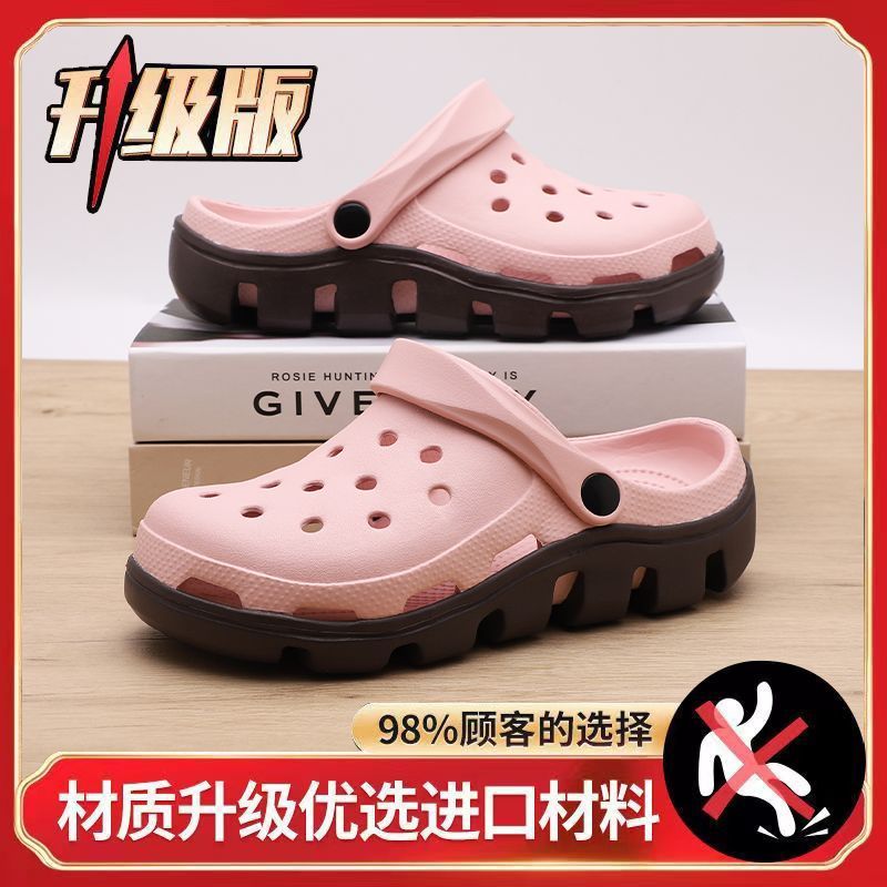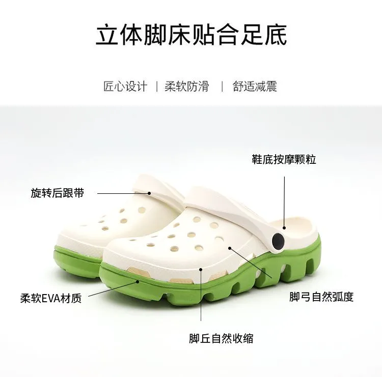 向往的生活厚底洞洞鞋女防滑学生ins透气外穿包头男士沙滩凉拖鞋