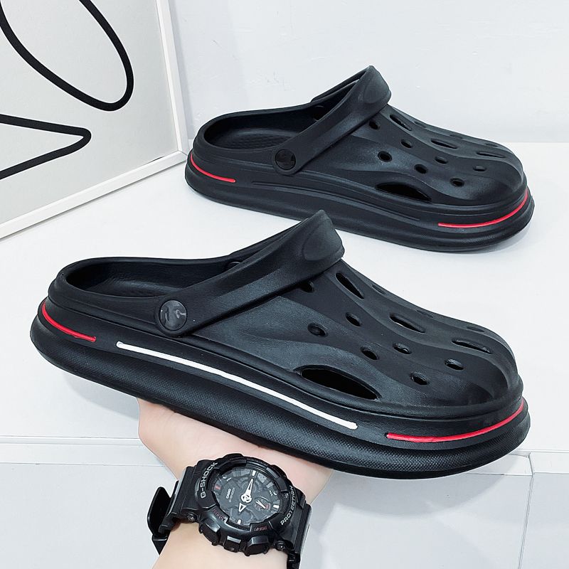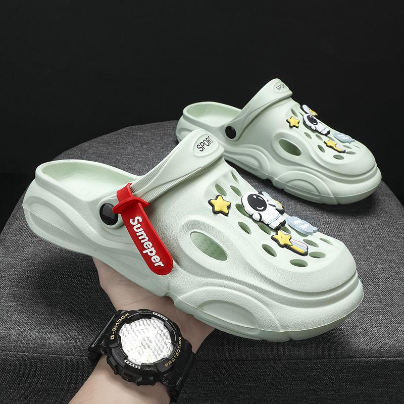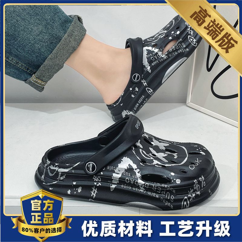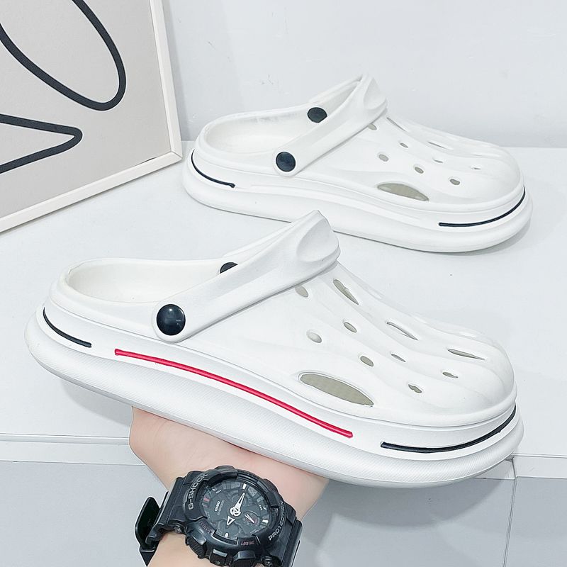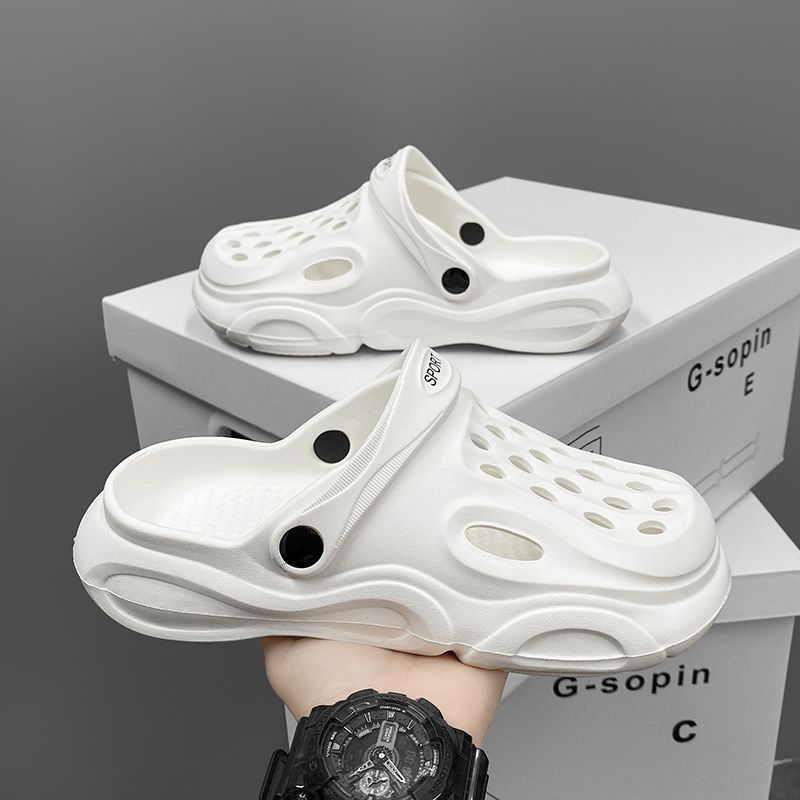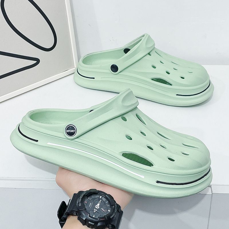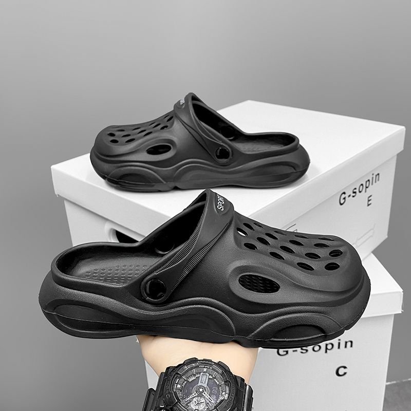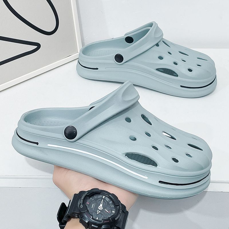 洞洞鞋男夏季外穿踩屎感沙滩凉鞋男款运动青少年防滑厚底包头拖鞋