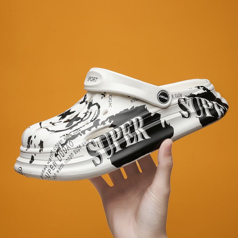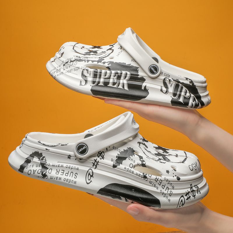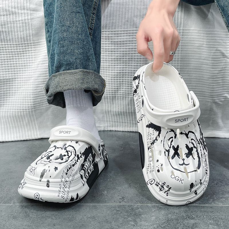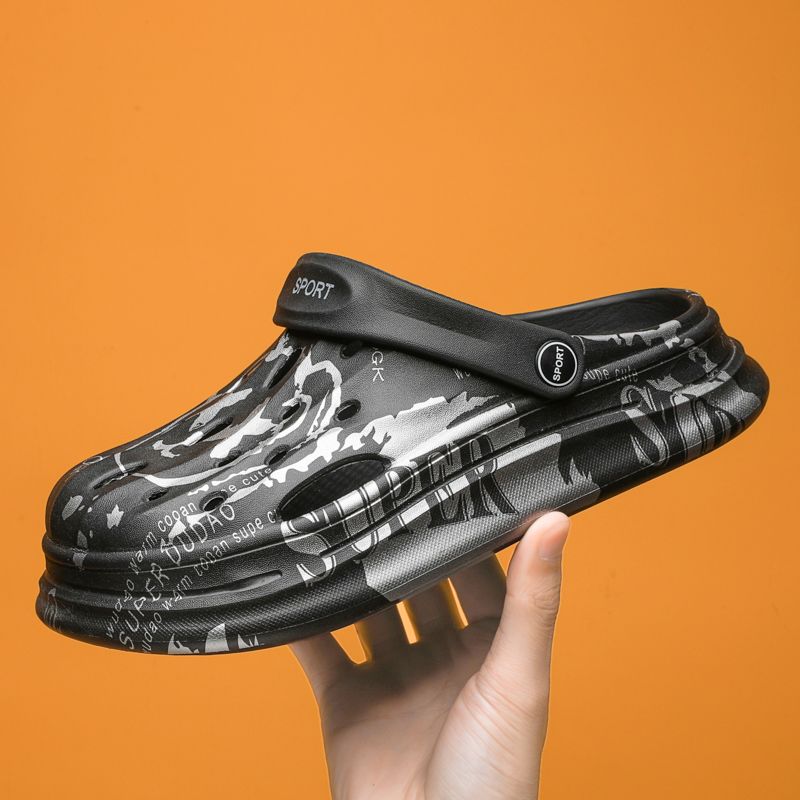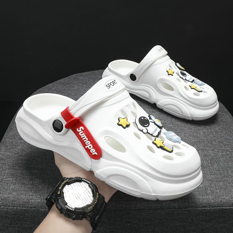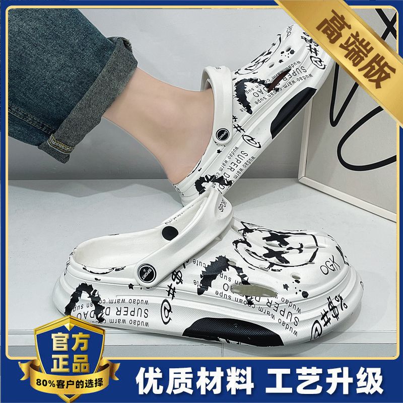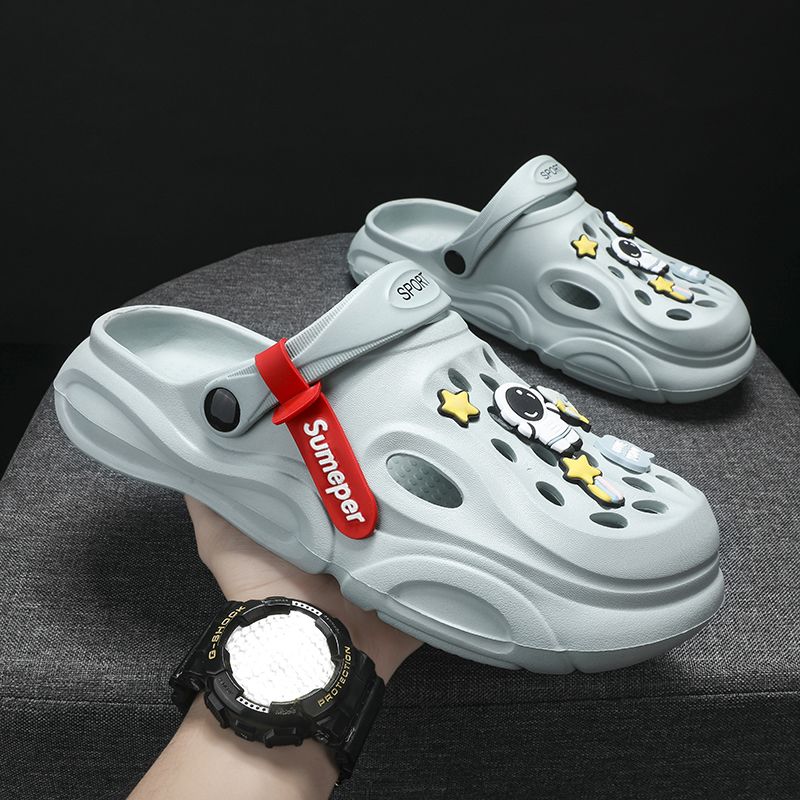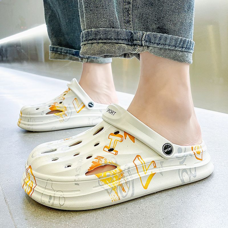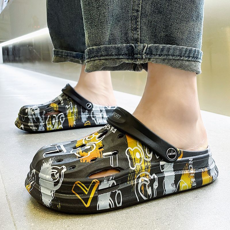 洞洞鞋男夏季外穿踩屎感沙滩凉鞋男款运动青少年防滑厚底包头拖鞋