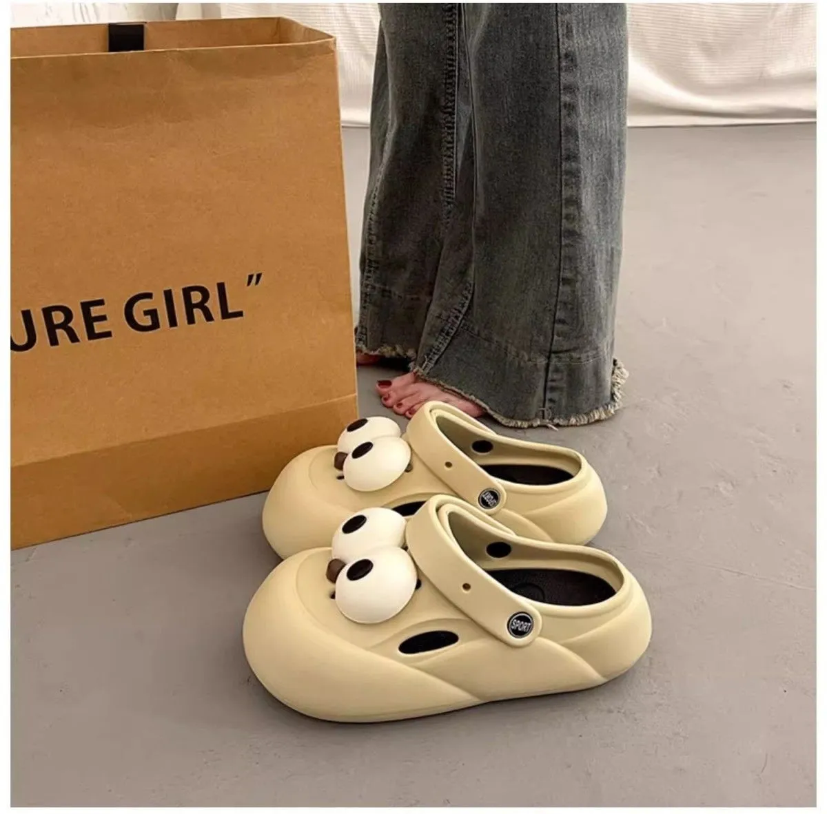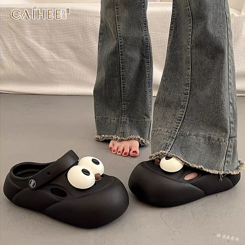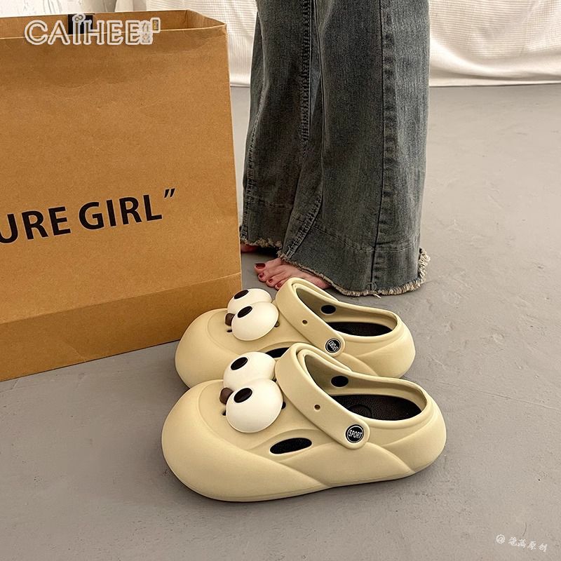 CAIHEE厚底洞洞鞋女款可爱夏季外穿防滑2024新款包头拖鞋沙滩凉鞋