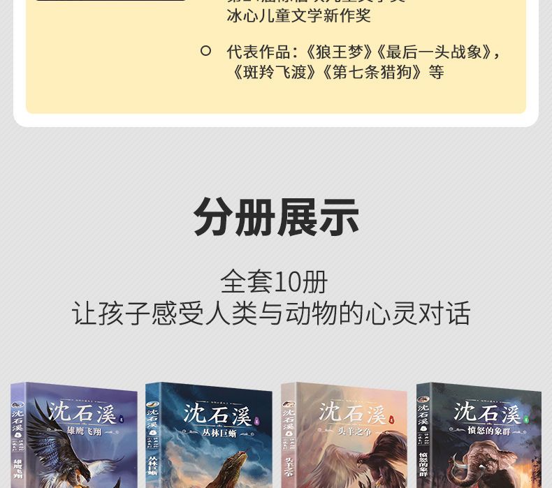 | [full set of 10 volumes] shen shi-xi's animal novels(【全套10册装】沈石溪动物小说) | USD $9.32 | 99999 piece available |
