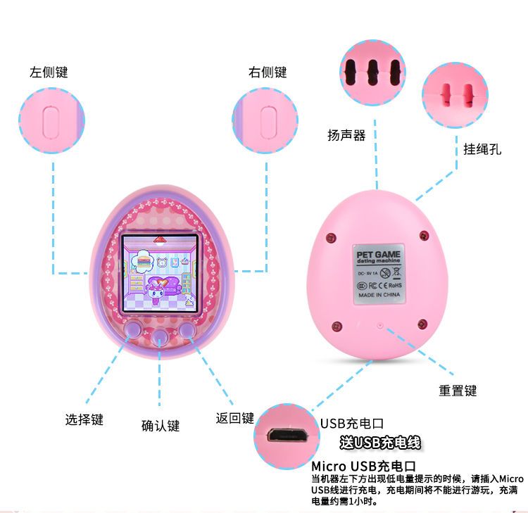 送防摔套 充电拓麻歌子彩屏电子宠物喂养游戏机女孩玩具节日礼物