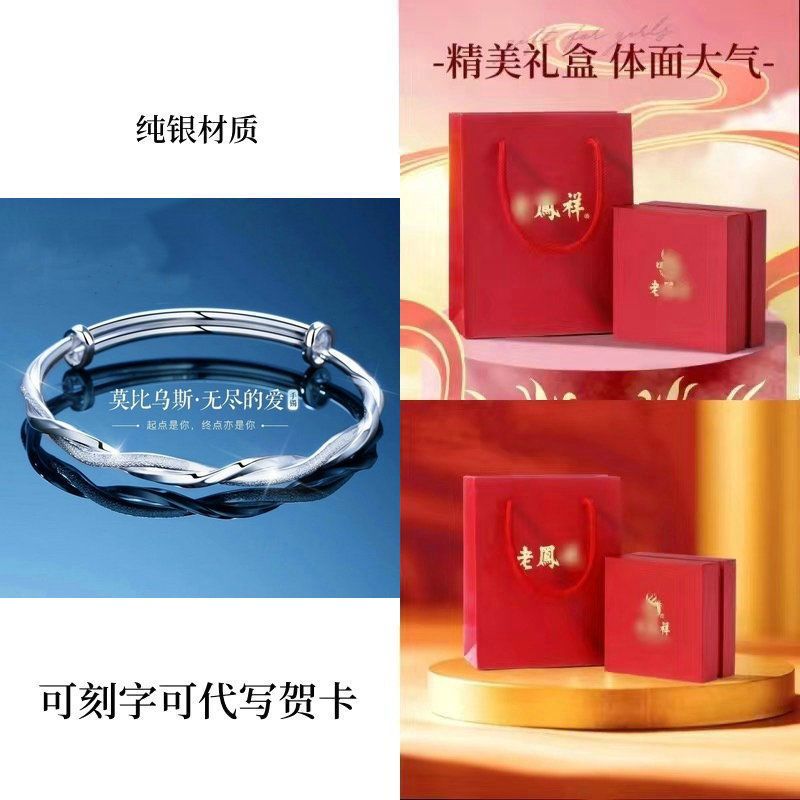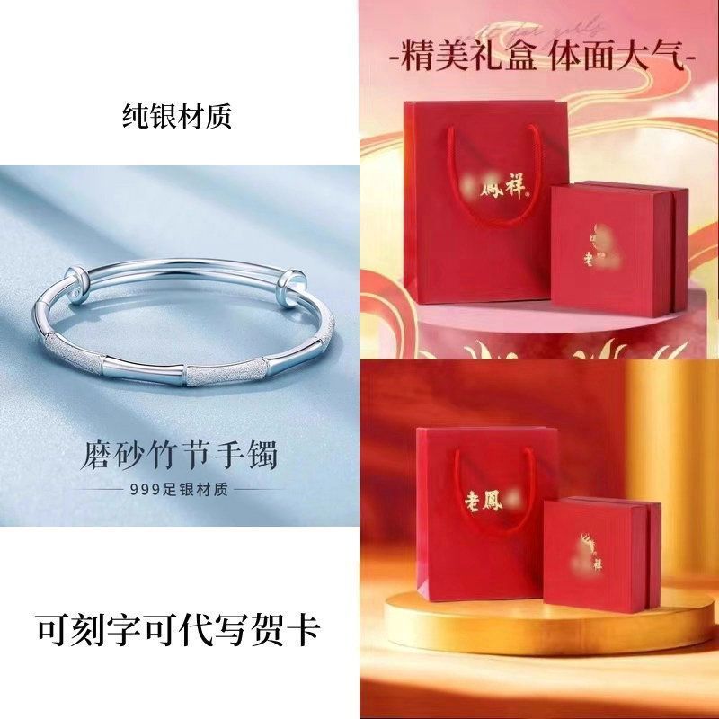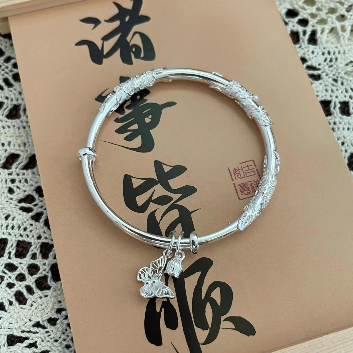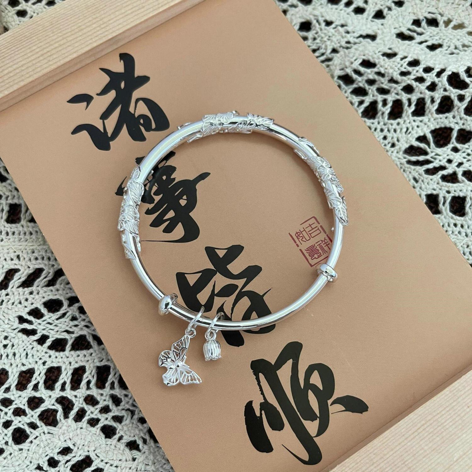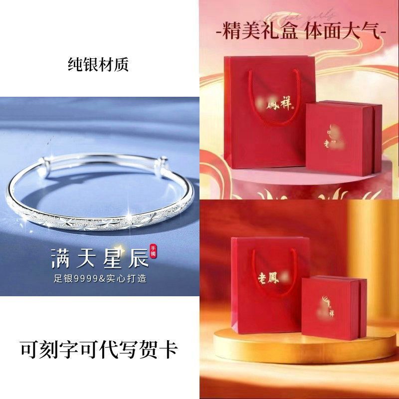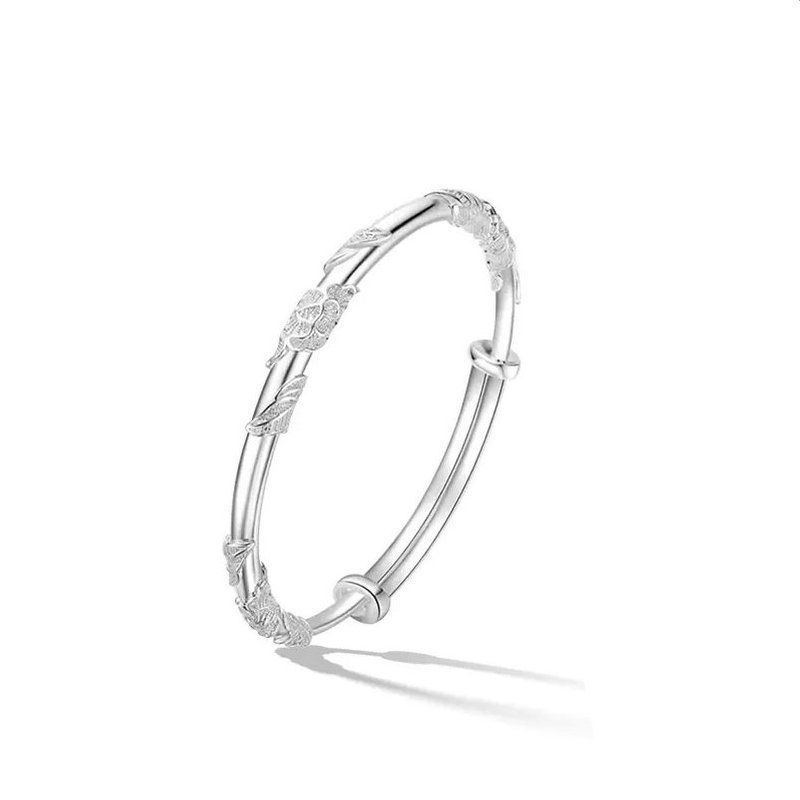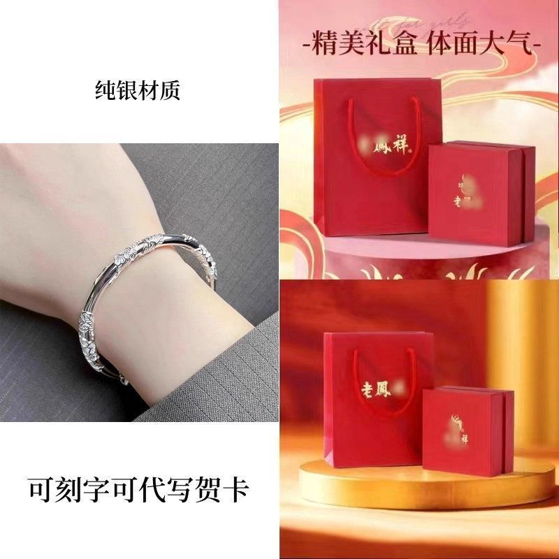正品S9999繁花似锦纯银手镯女实心足银镯子送女友生日情人节礼物