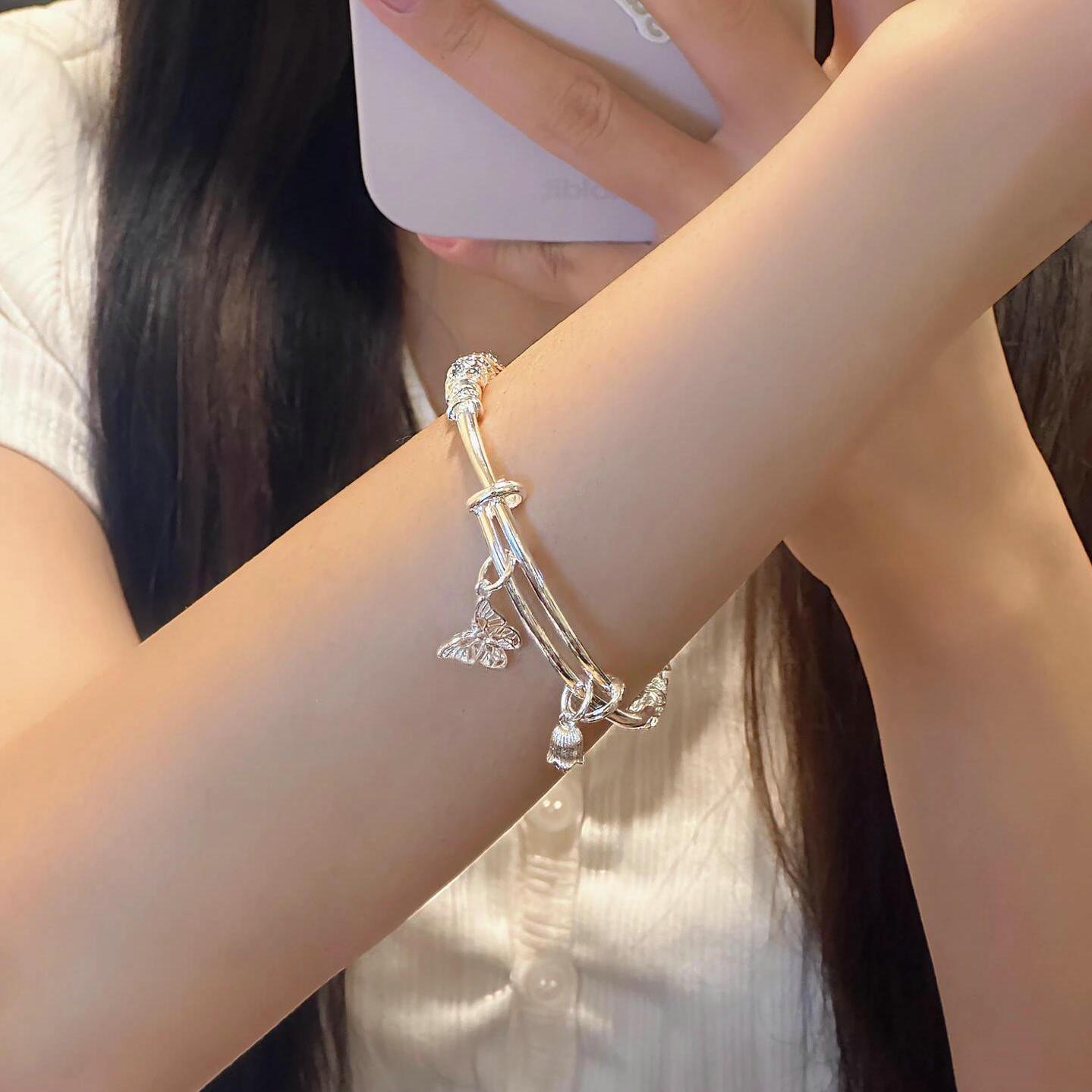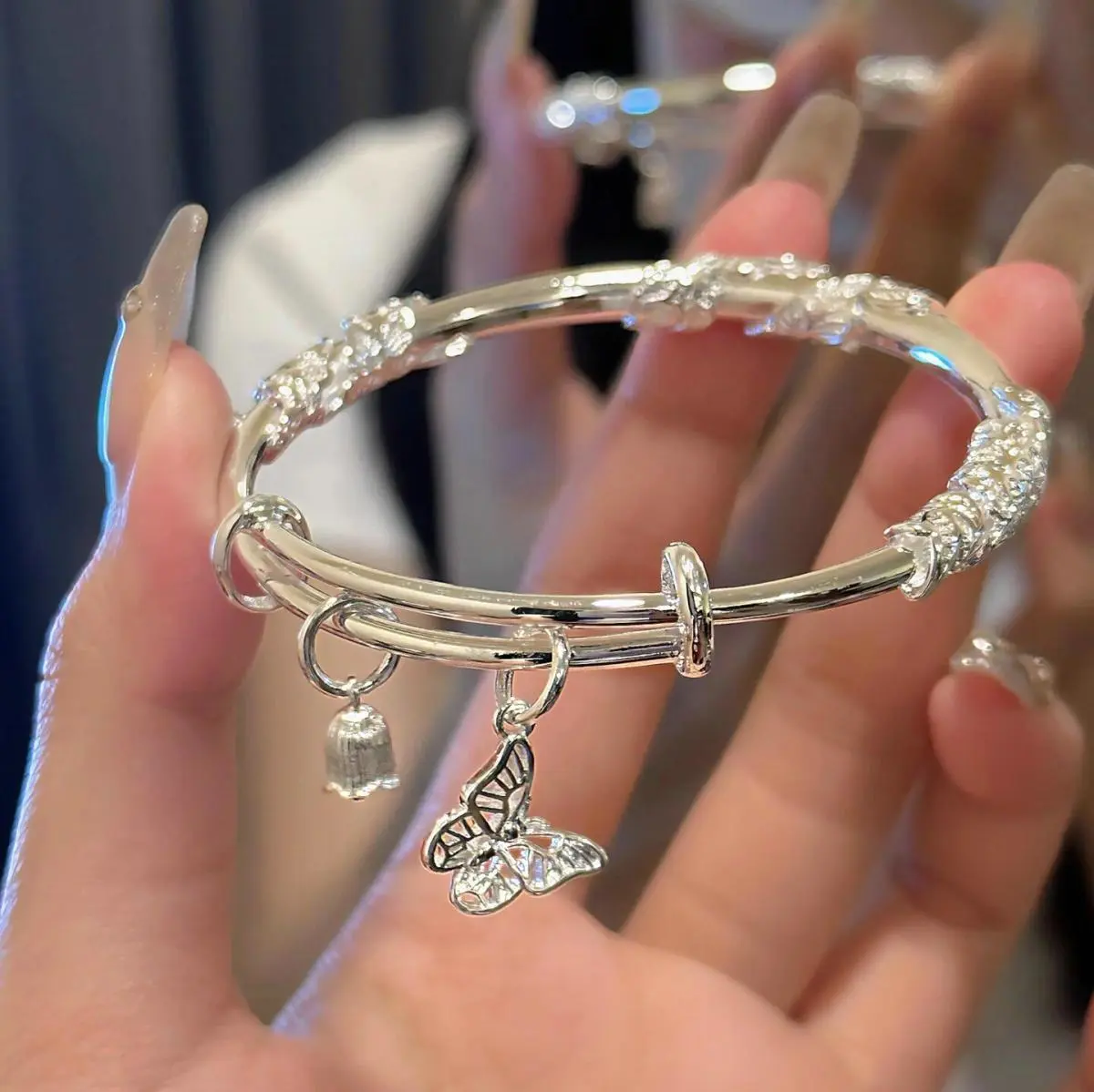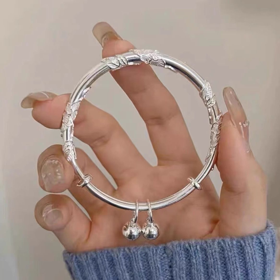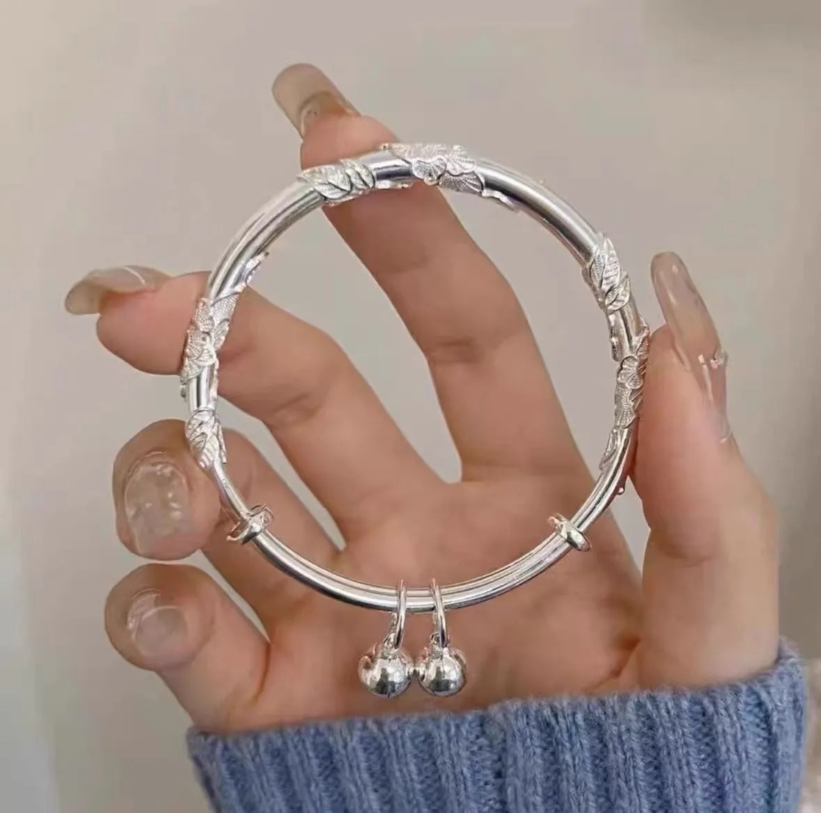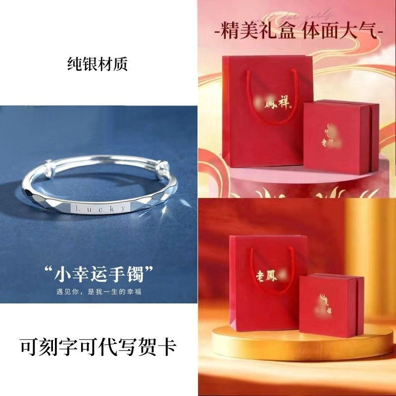正品S9999繁花似锦纯银手镯女实心足银镯子送女友生日情人节礼物