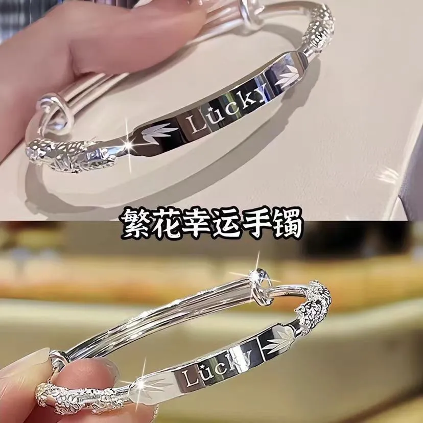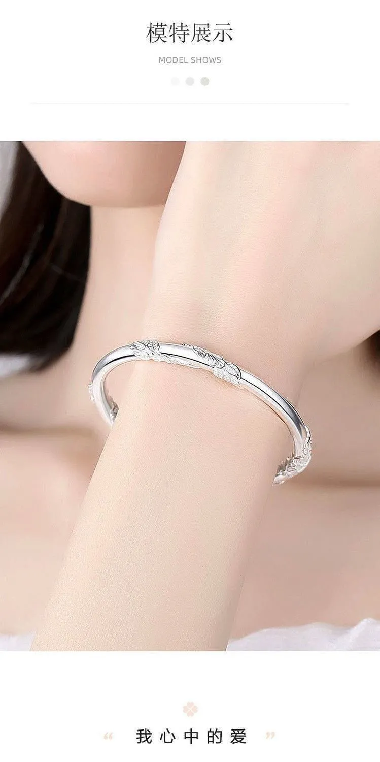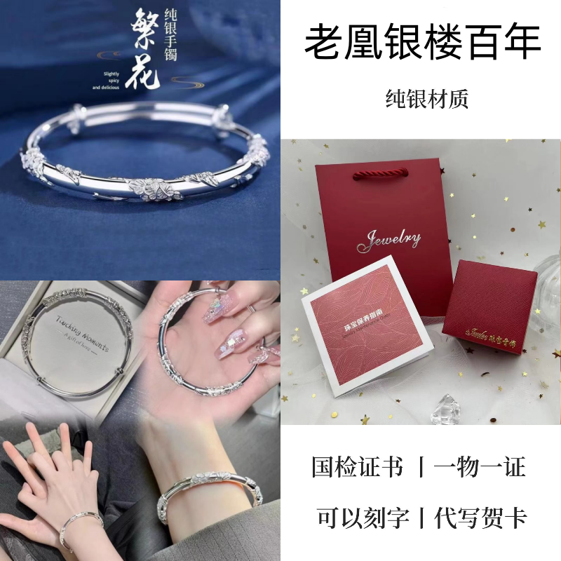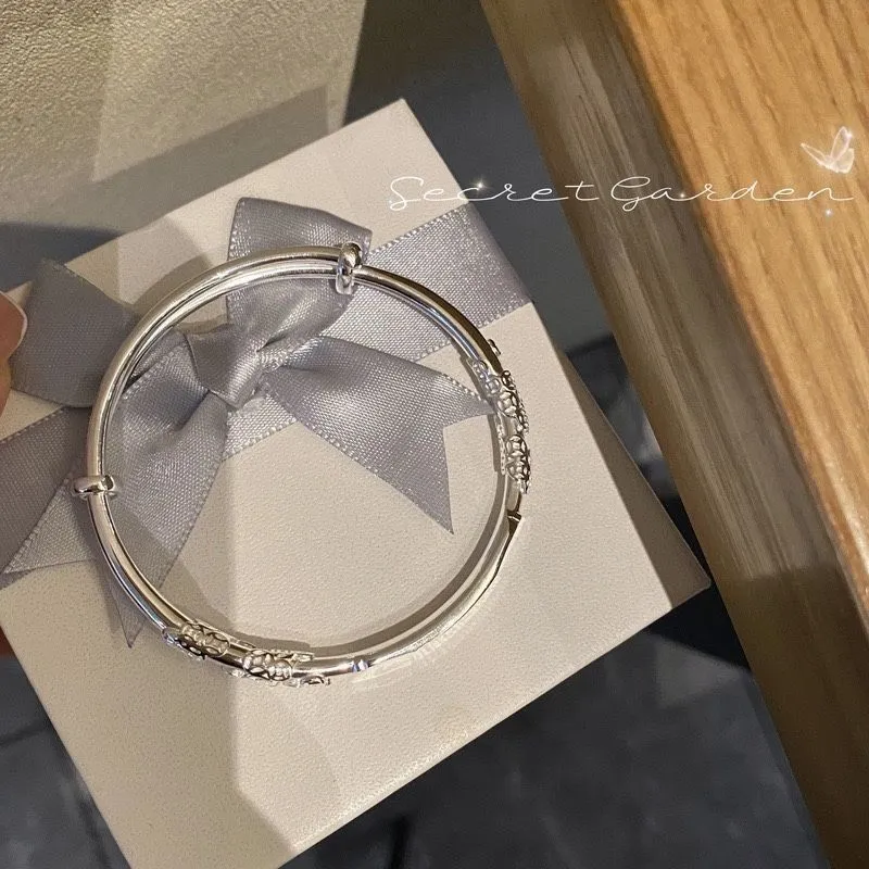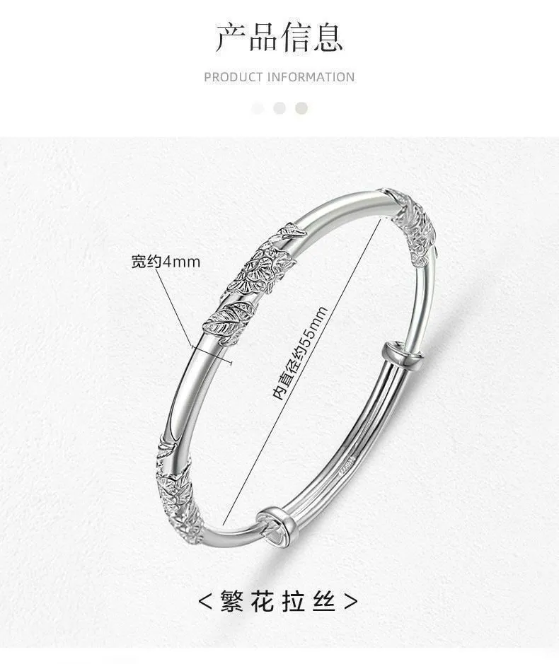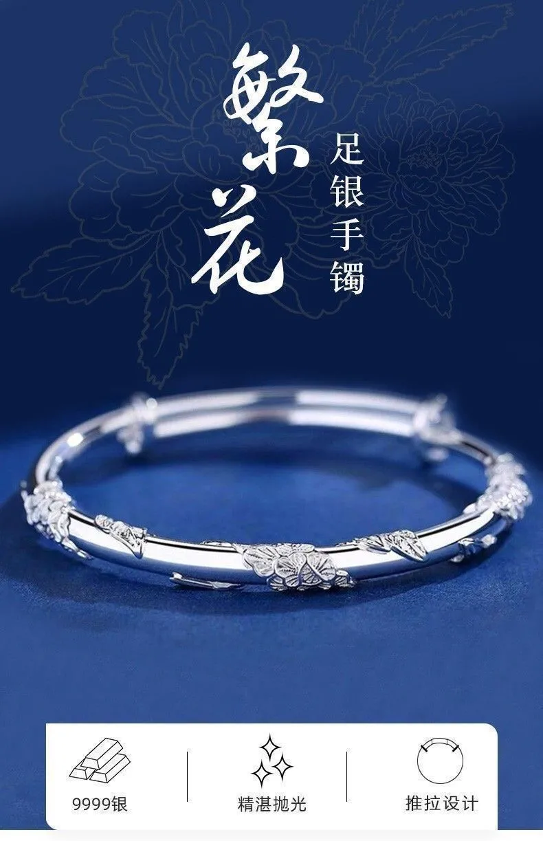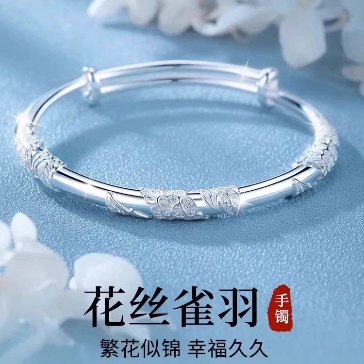 纯银手镯女999繁花似锦足银镯子实心2024年新款爆火ins送女友礼物