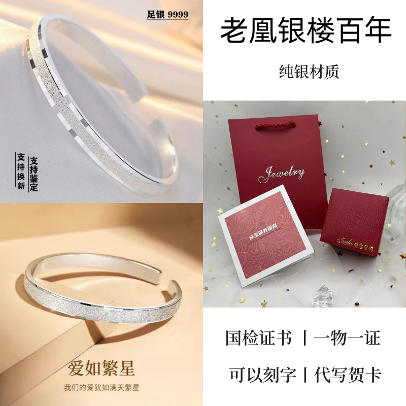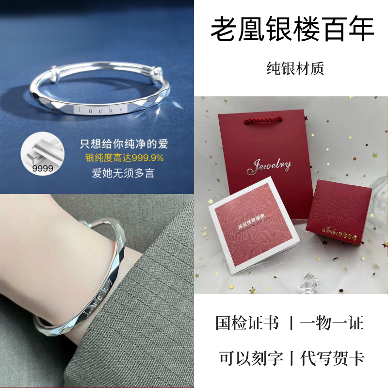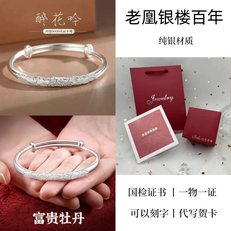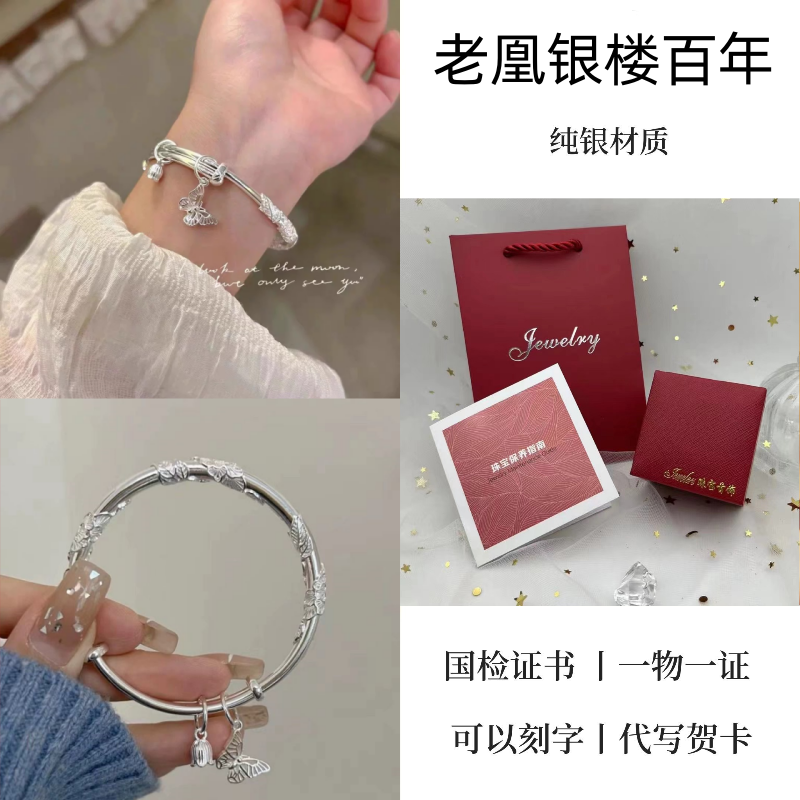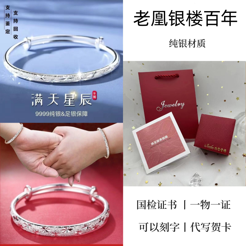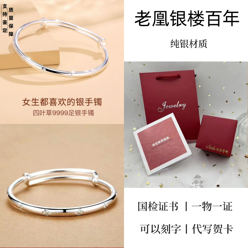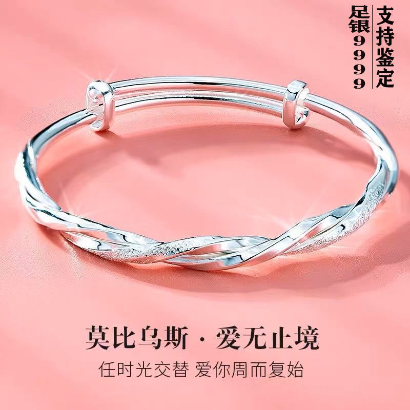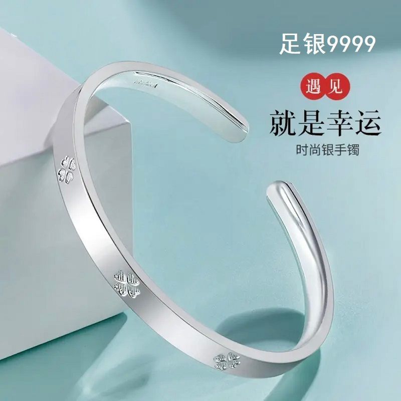 纯银手镯女999繁花似锦足银镯子实心2024年新款爆火ins送女友礼物