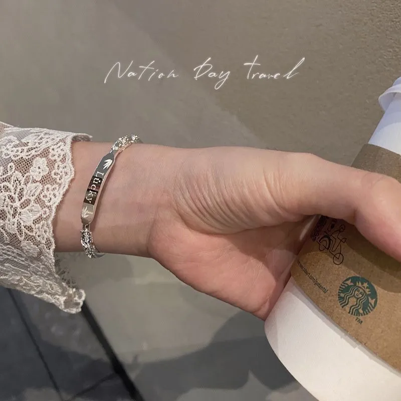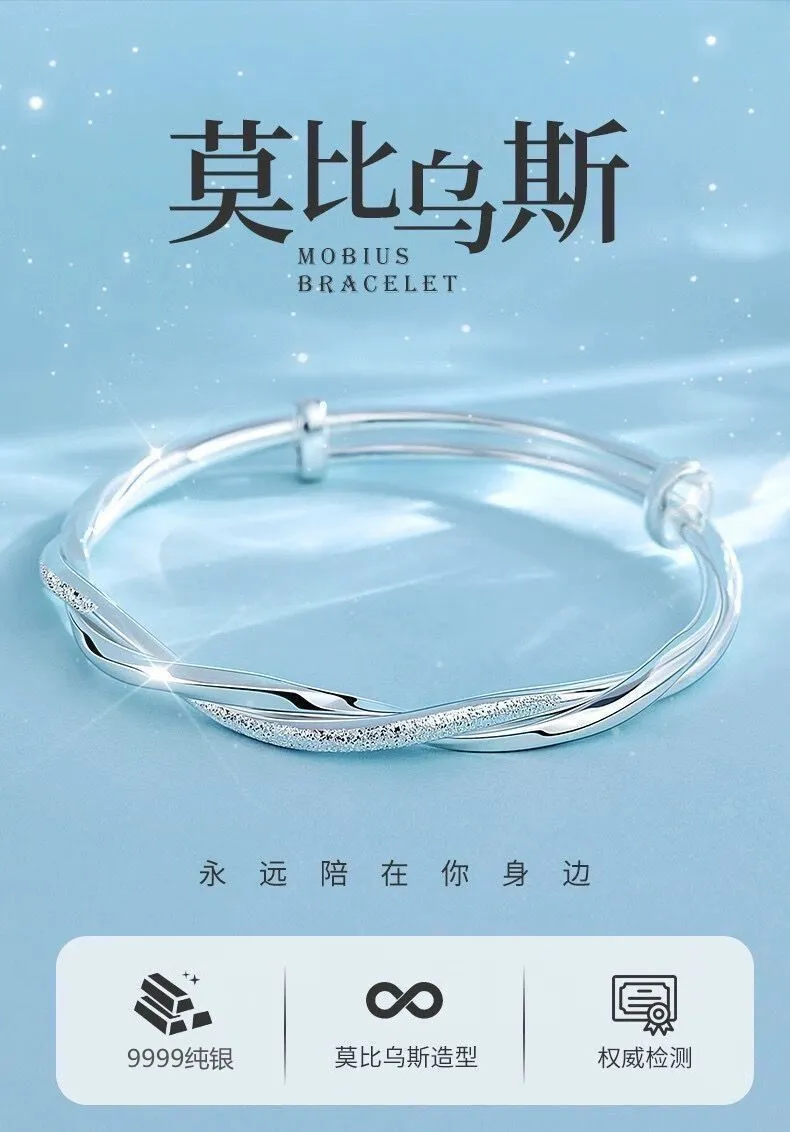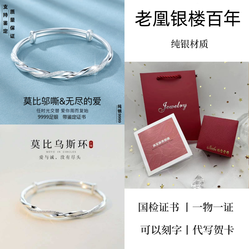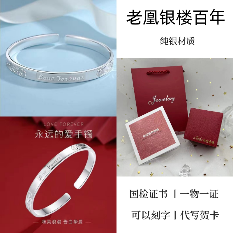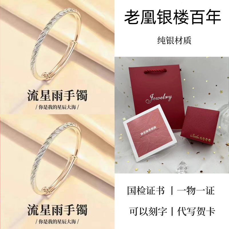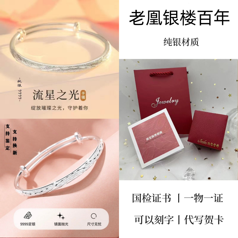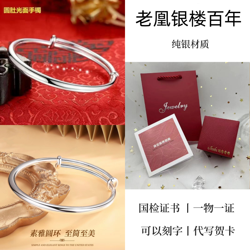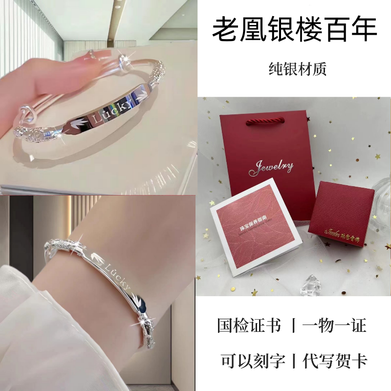 纯银手镯女999繁花似锦足银镯子实心2024年新款爆火ins送女友礼物