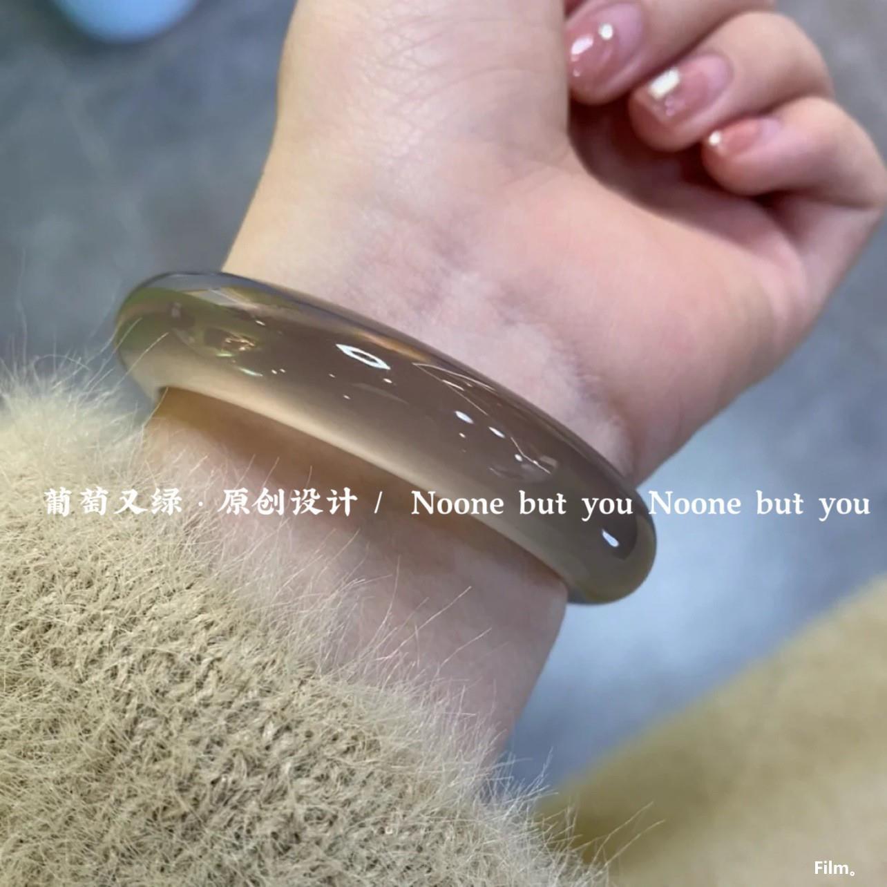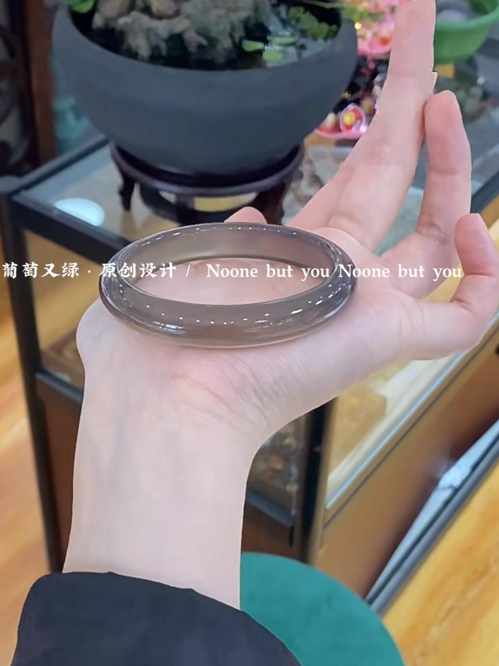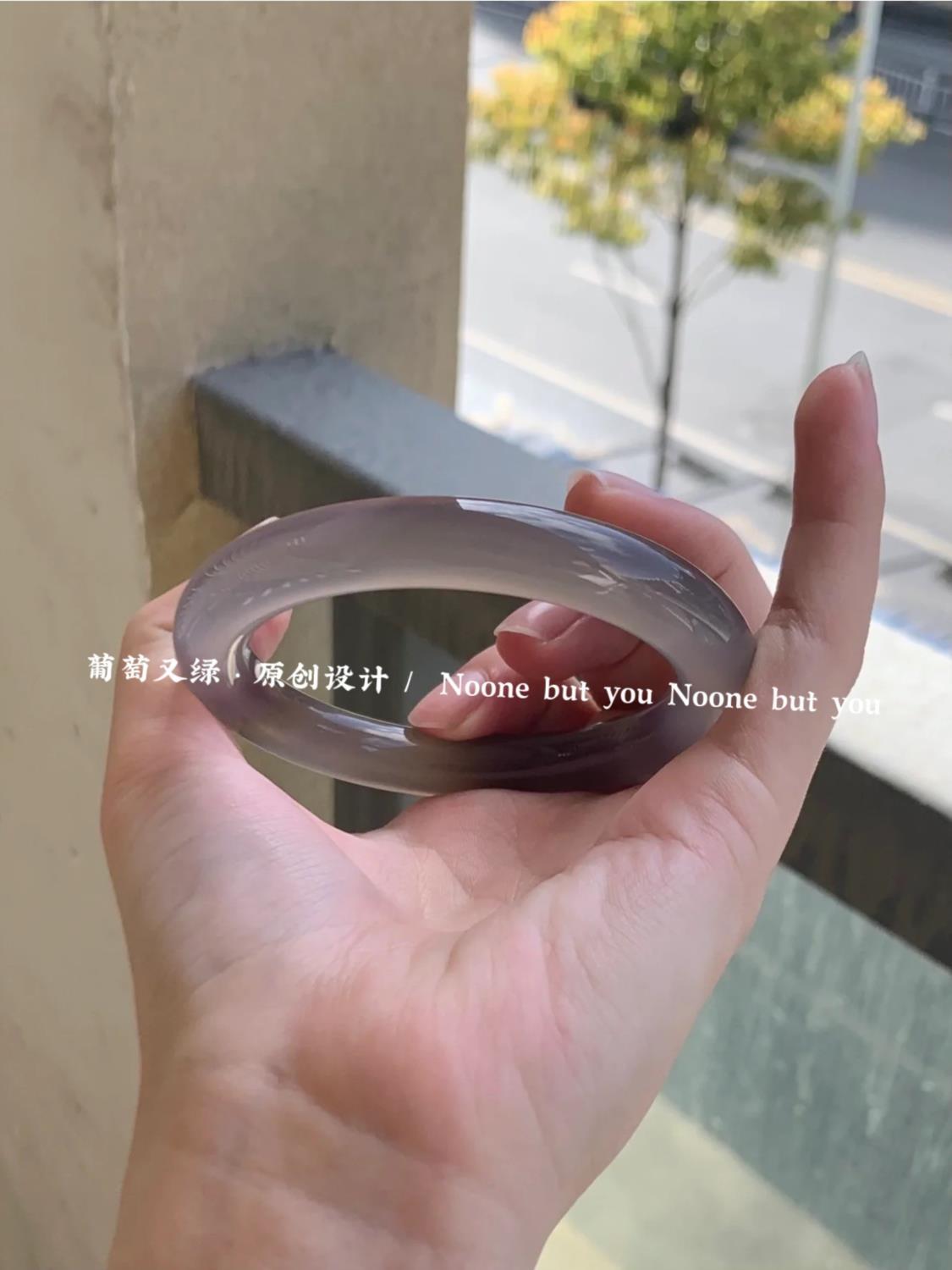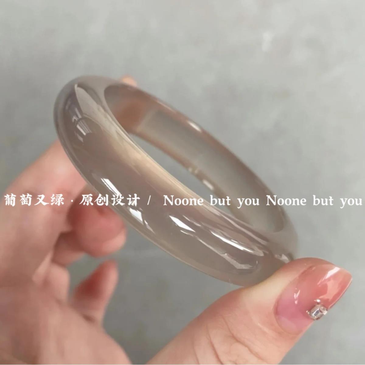 高级灰荔枝冻玛瑙手镯女天然玉髓镯子冰种玉镯高冰翡翠色手镯女款