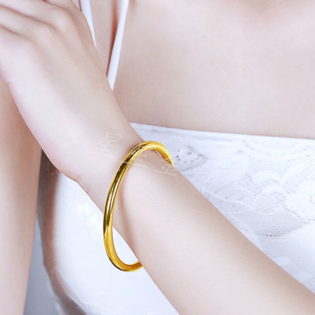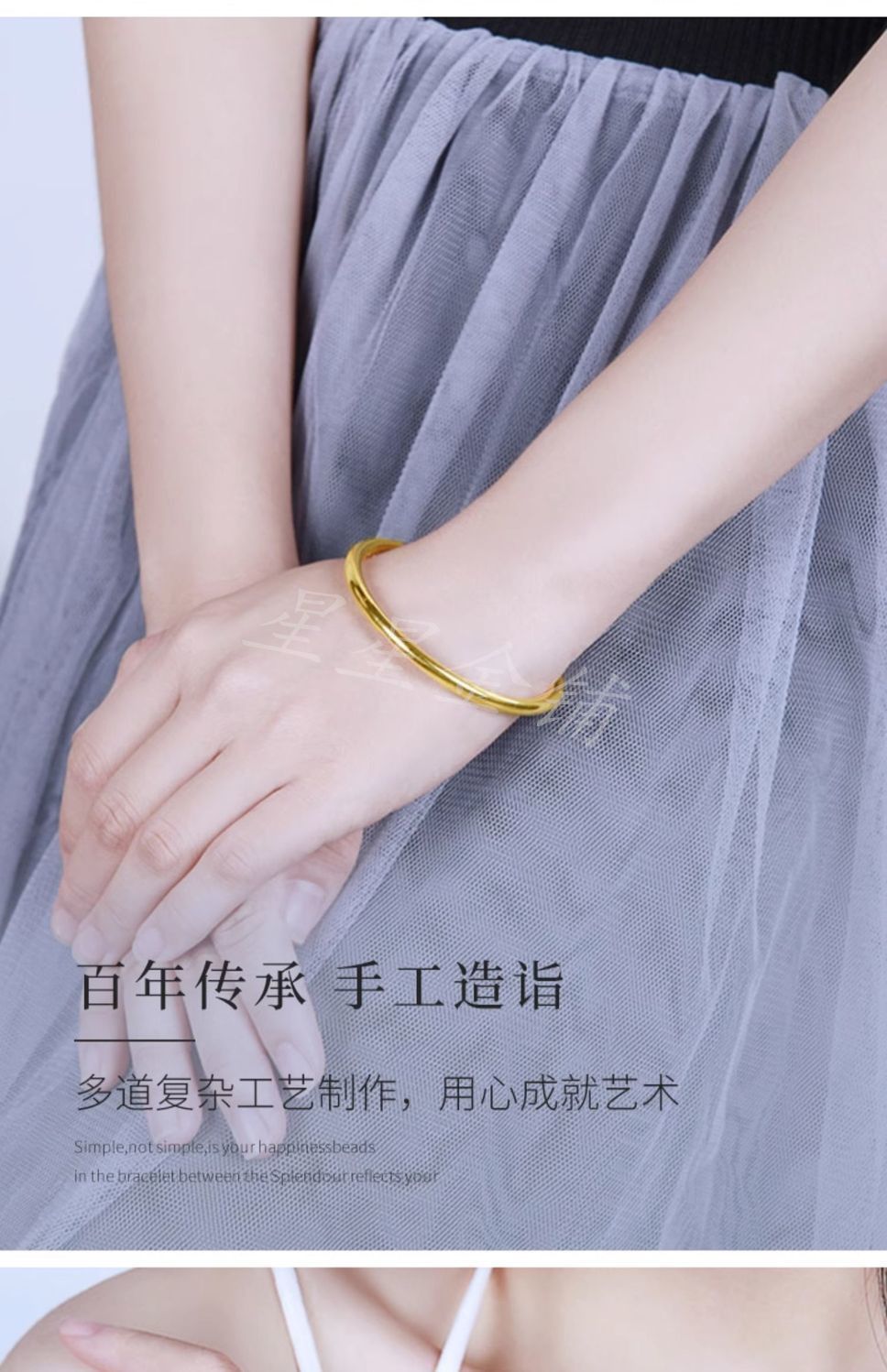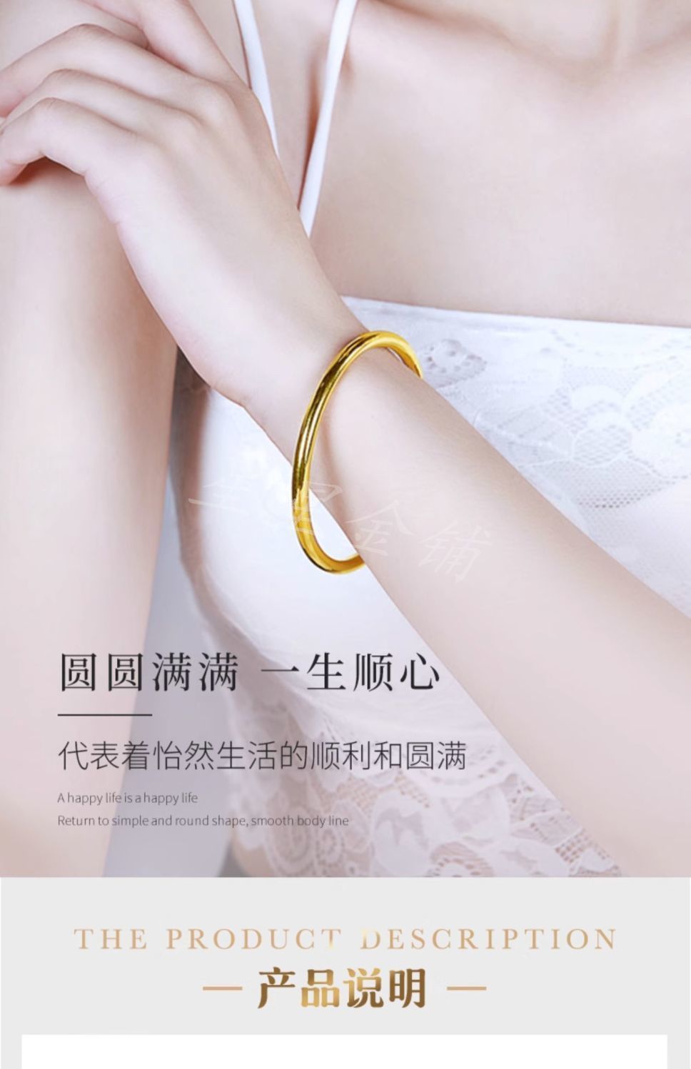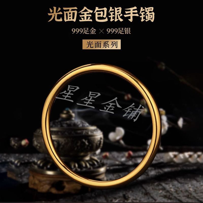 龙年光面推拉手镯999足金足银闭口实心素圈金包银手环不掉色首饰