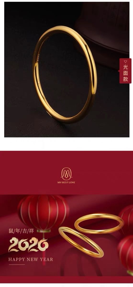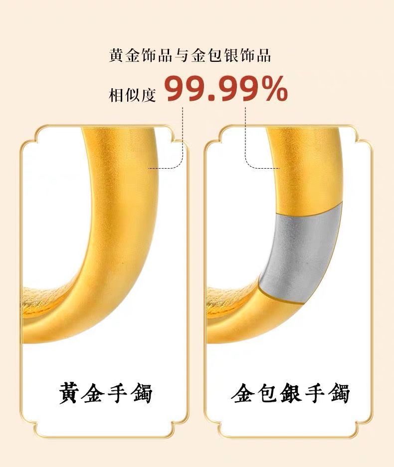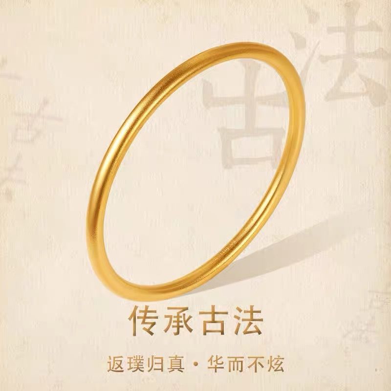 9999千足银古法传承手镯素圈闭口金包银实心不掉色送女朋友情人节