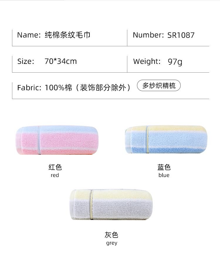 【金号毛巾】5条装纯棉A类条纹加厚毛巾成人洗脸大面巾情侣1087