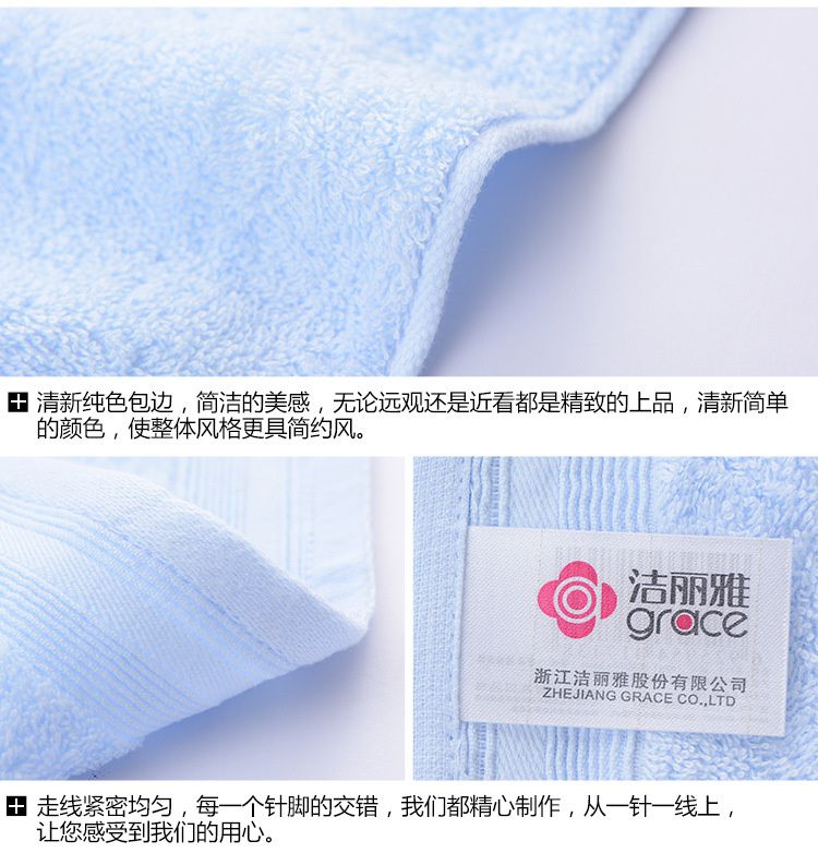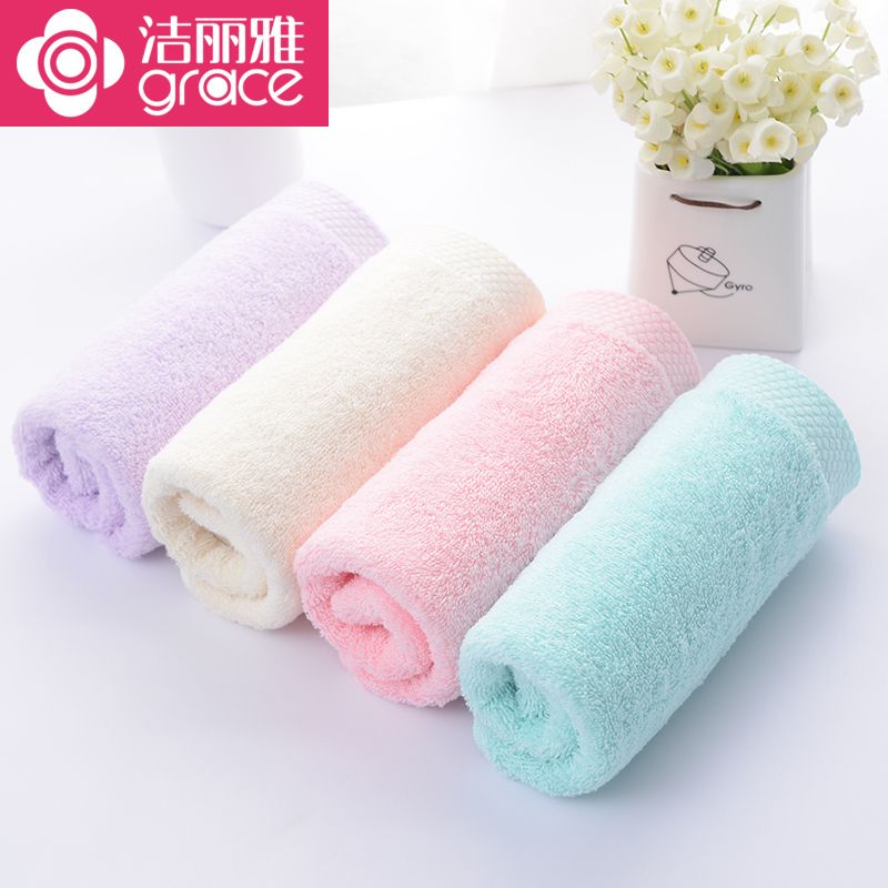 洁丽雅a类洗脸毛巾全棉不掉毛素色4条装高档家用柔软吸水成人毛巾