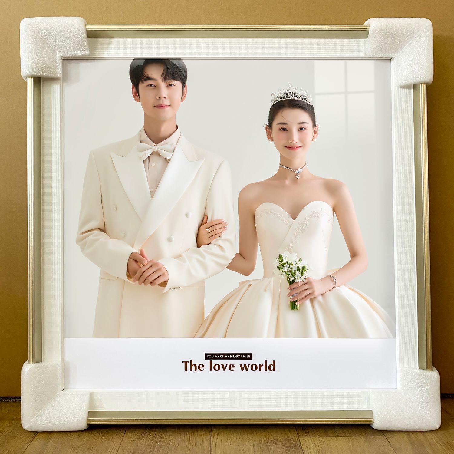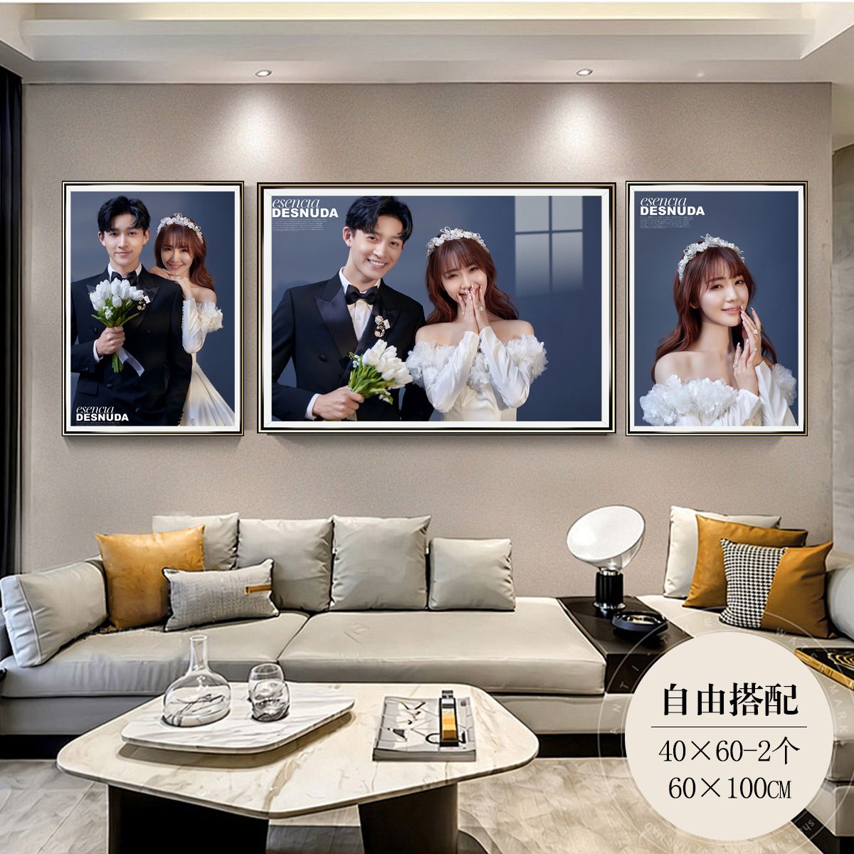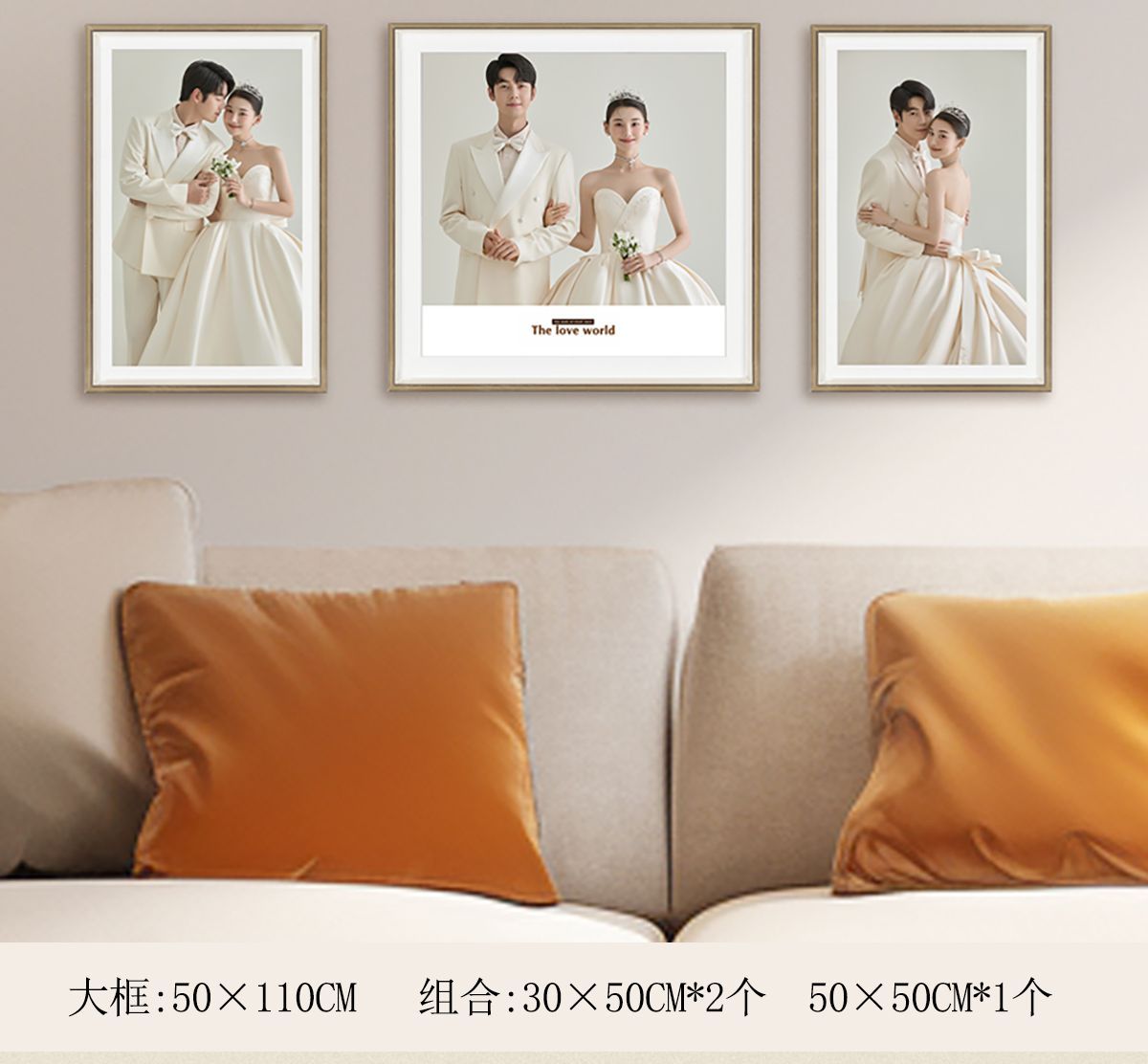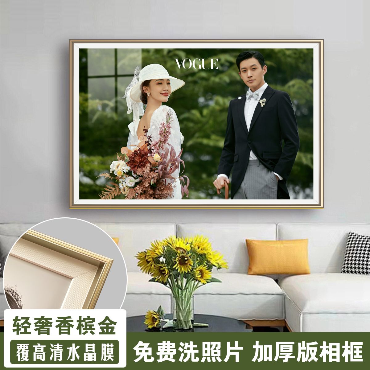 定制婚纱照相框带打印照片放大挂墙简约相框挂客厅卧室大尺寸组合