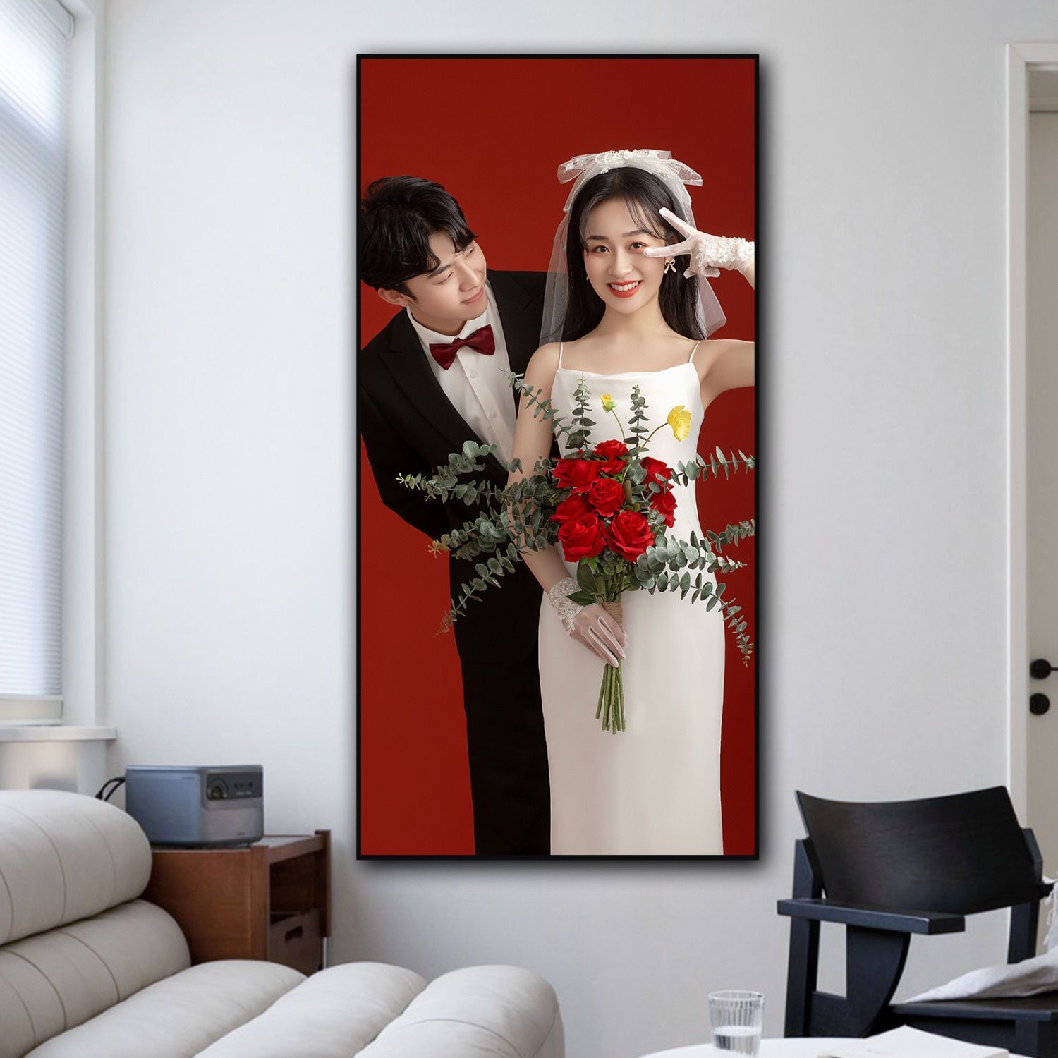 玄关婚纱照相框定制房间有框全家福情侣写真放大挂墙结婚照竖版