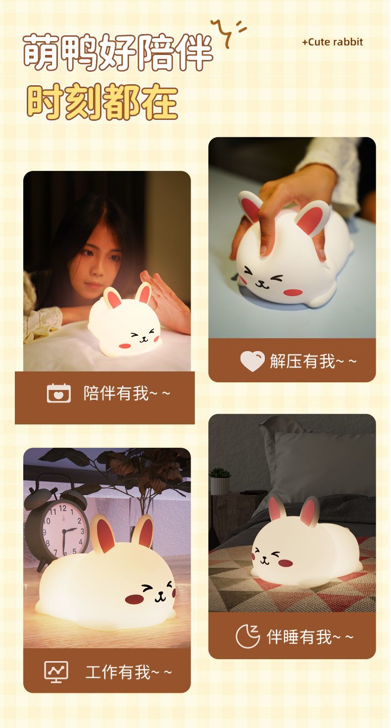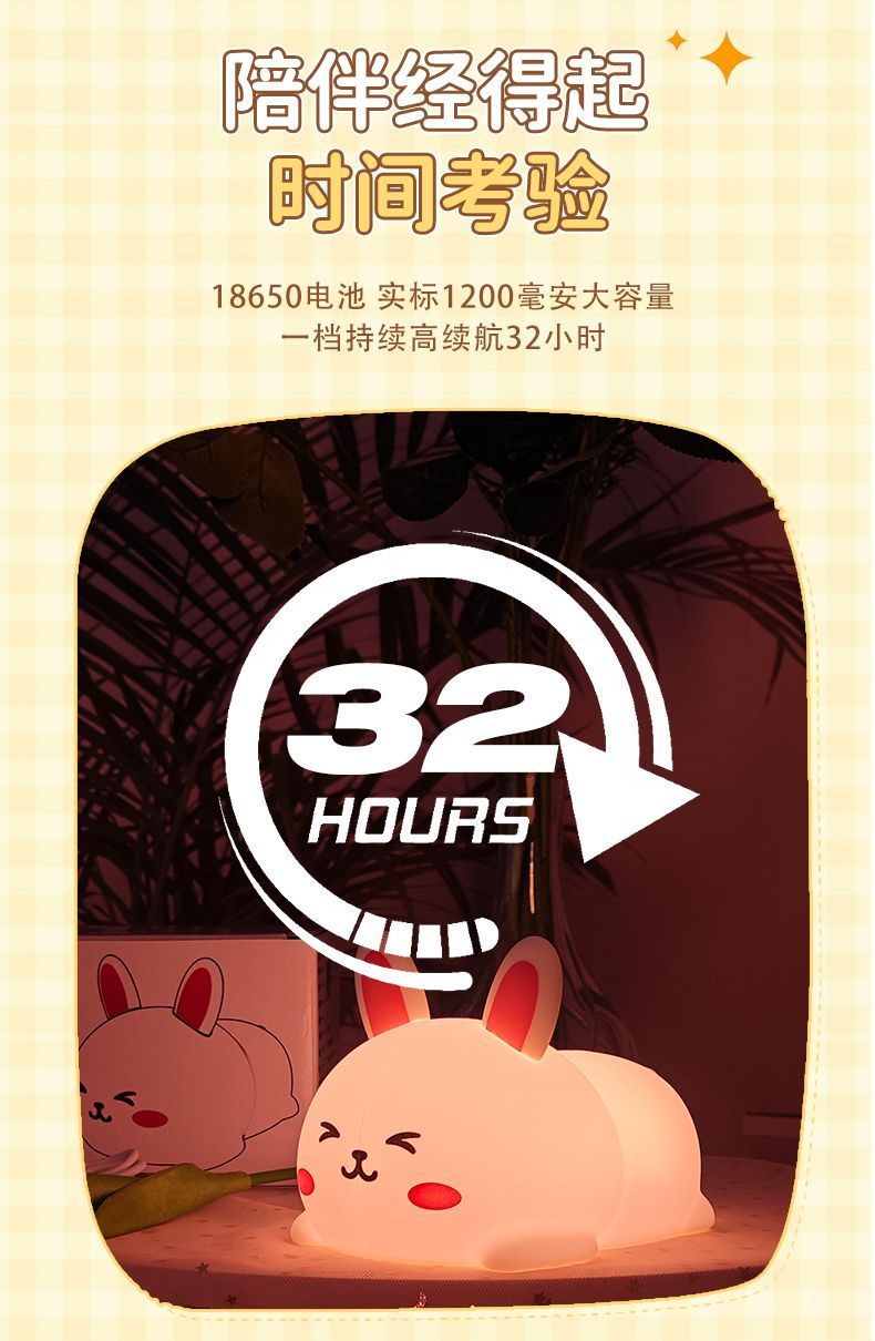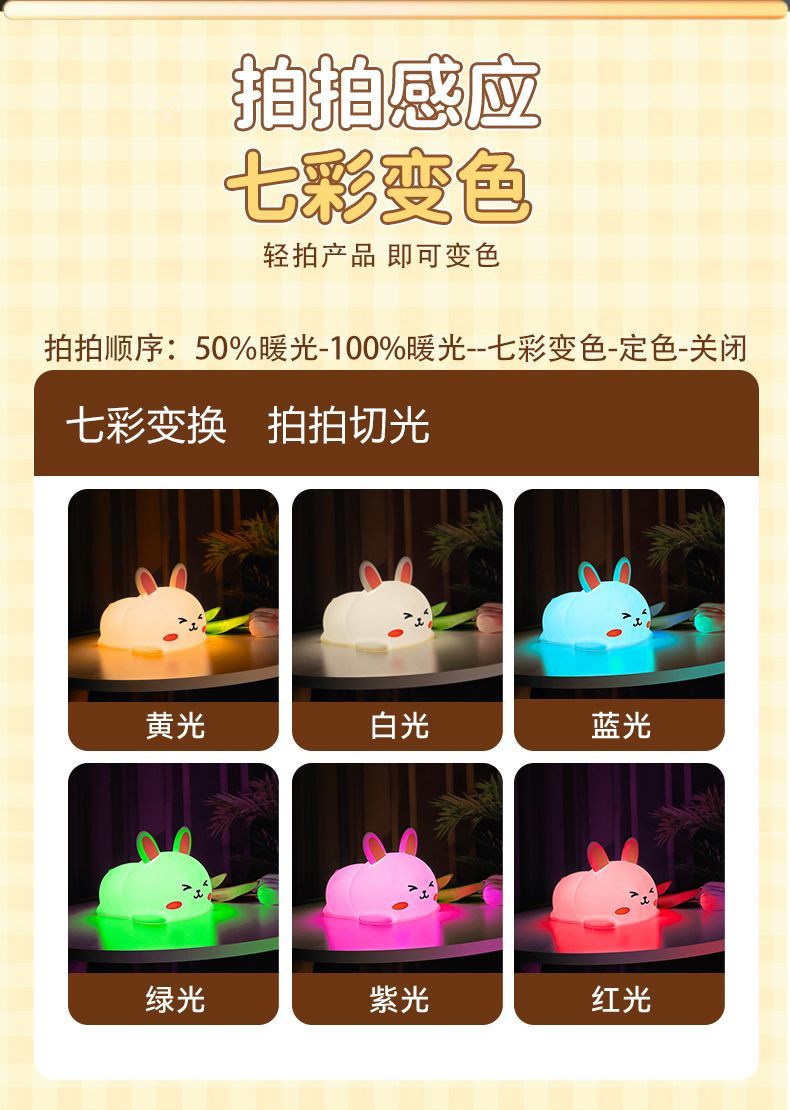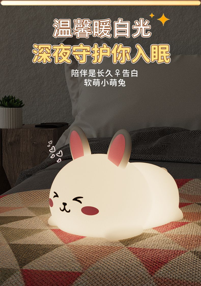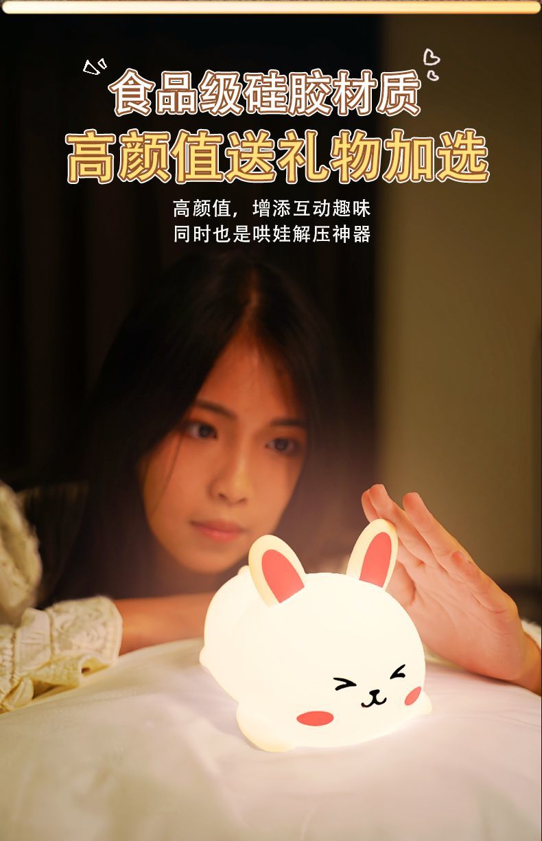 兔子可爱拍拍可充电小夜灯卧室床头睡眠儿童少女生日卡通礼物台灯