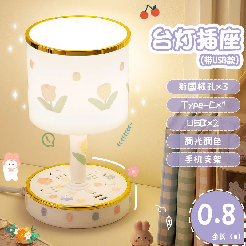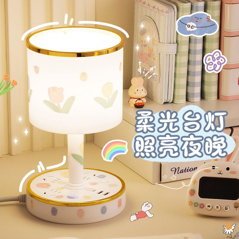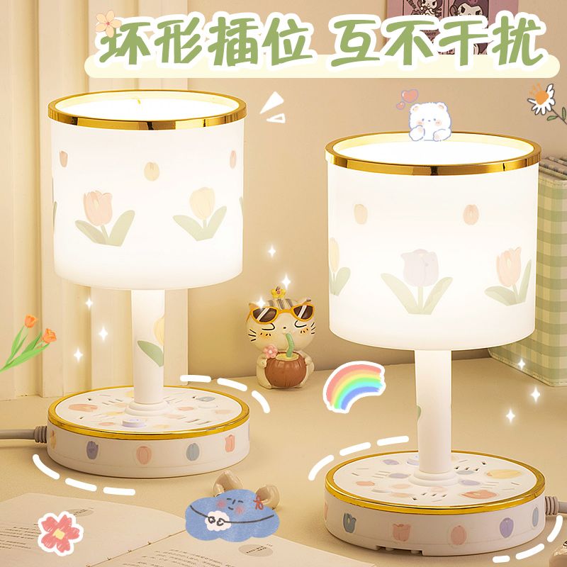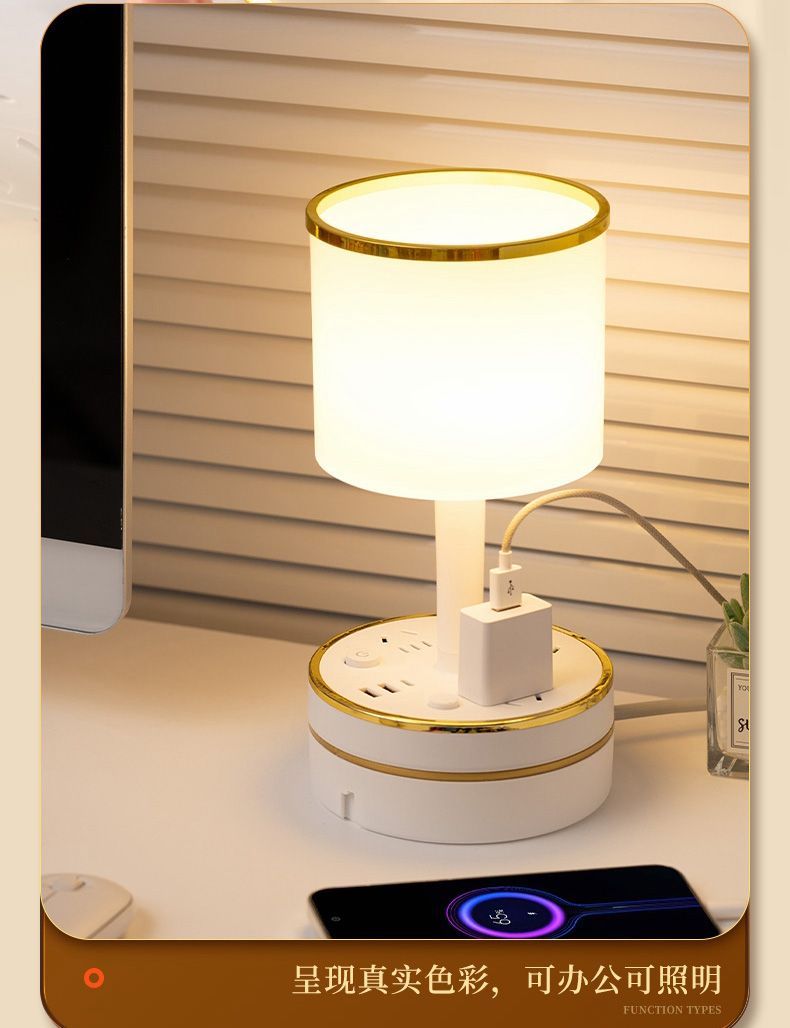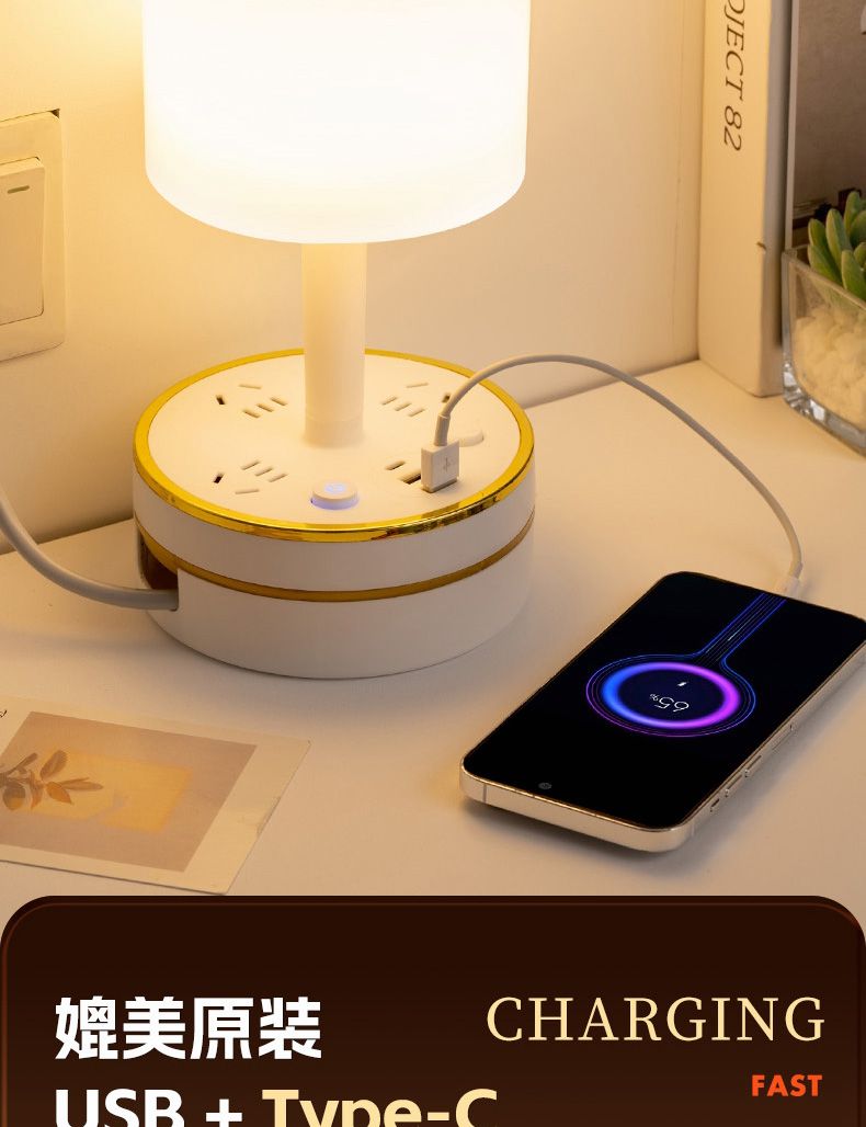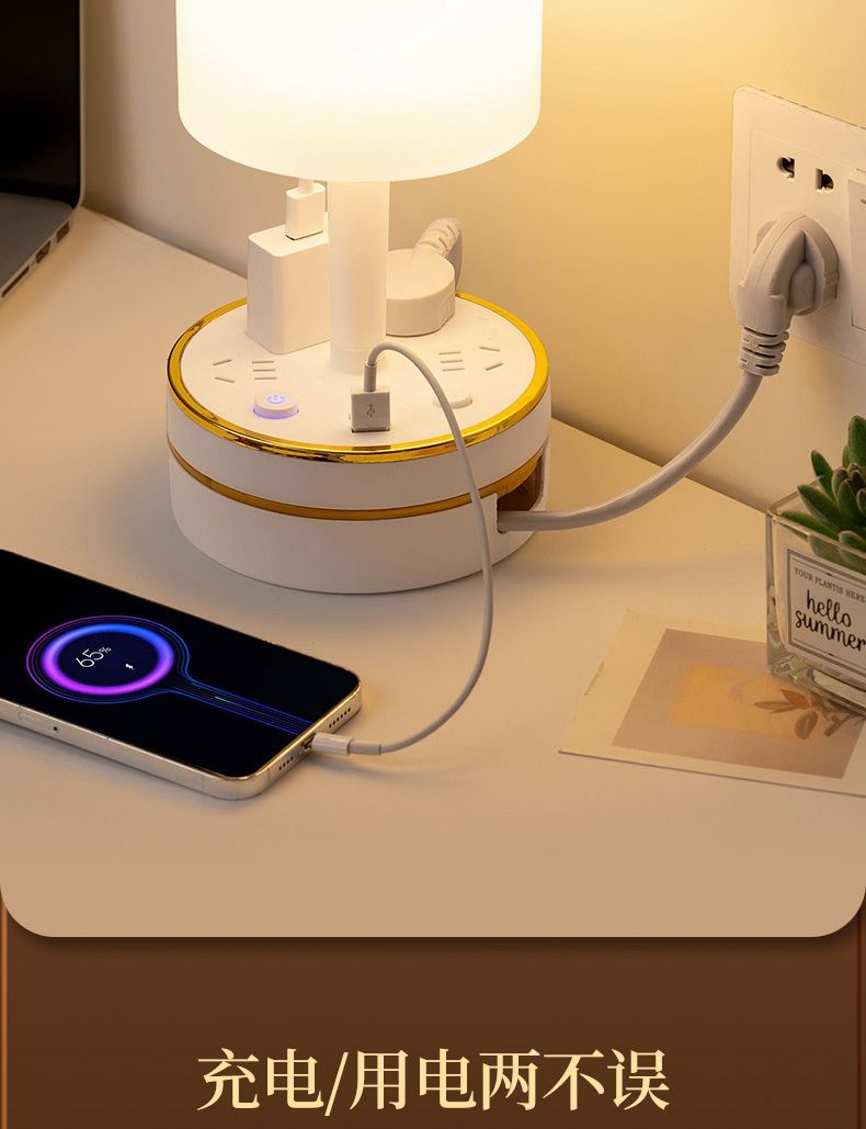 轻奢升级台灯LED插座多功能小夜灯台灯插电式usb插座带线台灯卧室