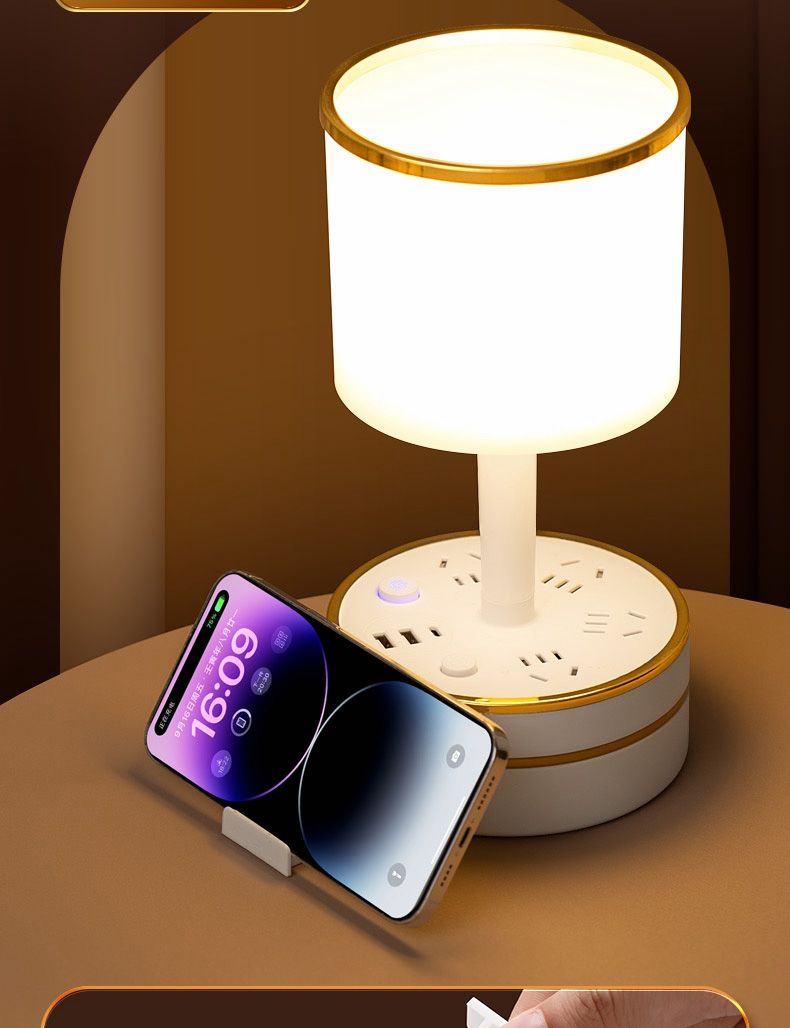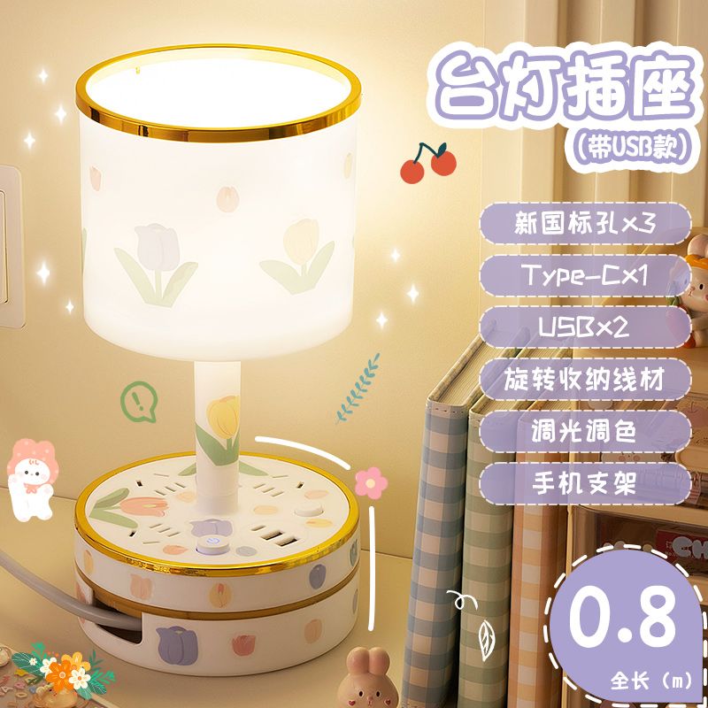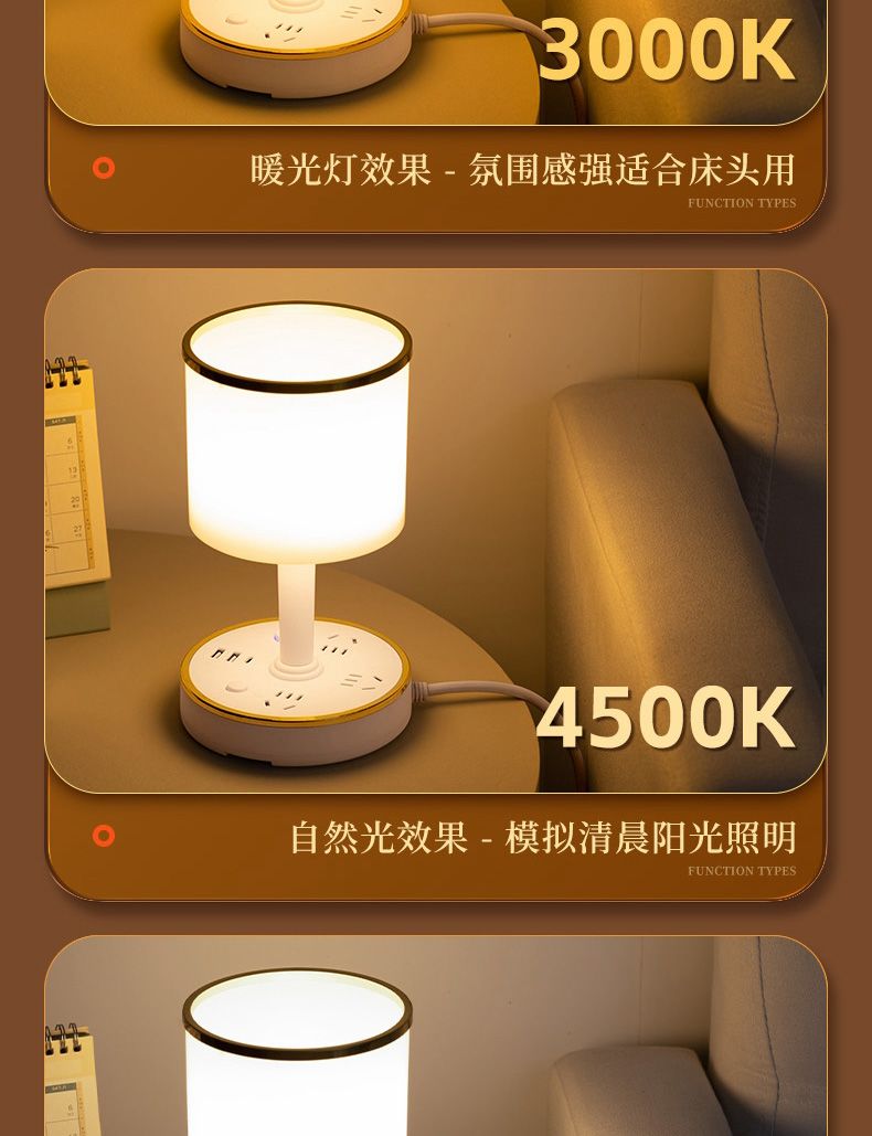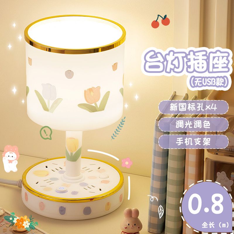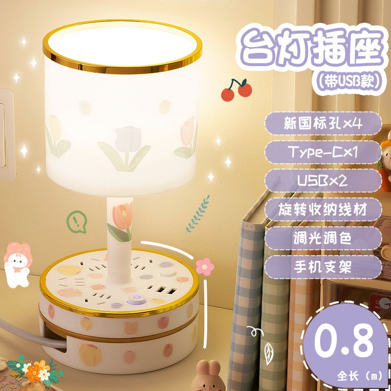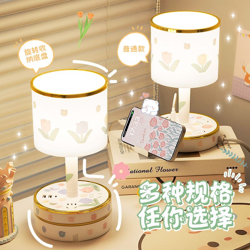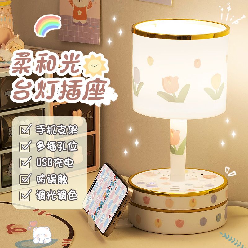 轻奢升级台灯LED插座多功能小夜灯台灯插电式usb插座带线台灯卧室