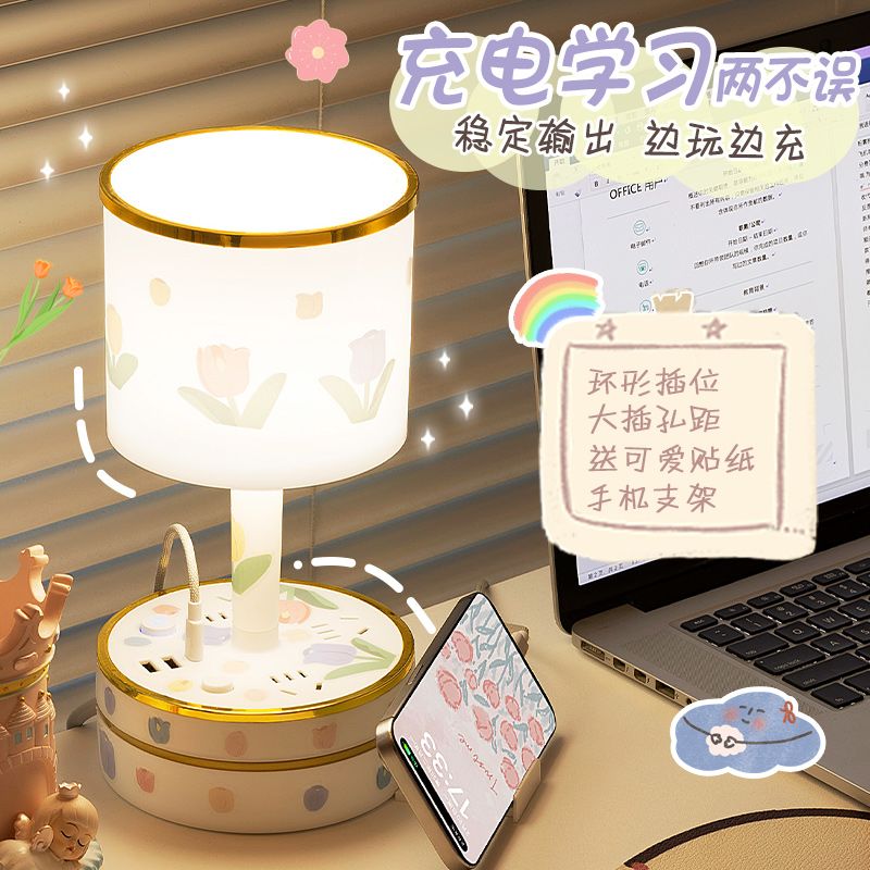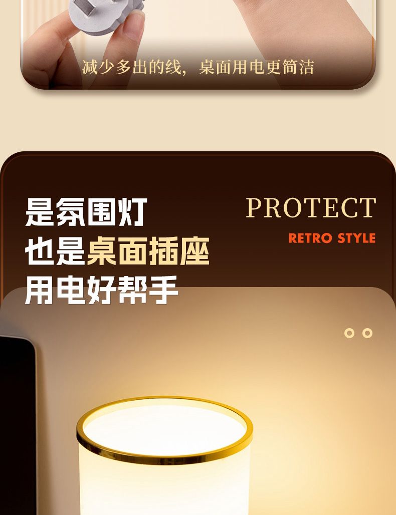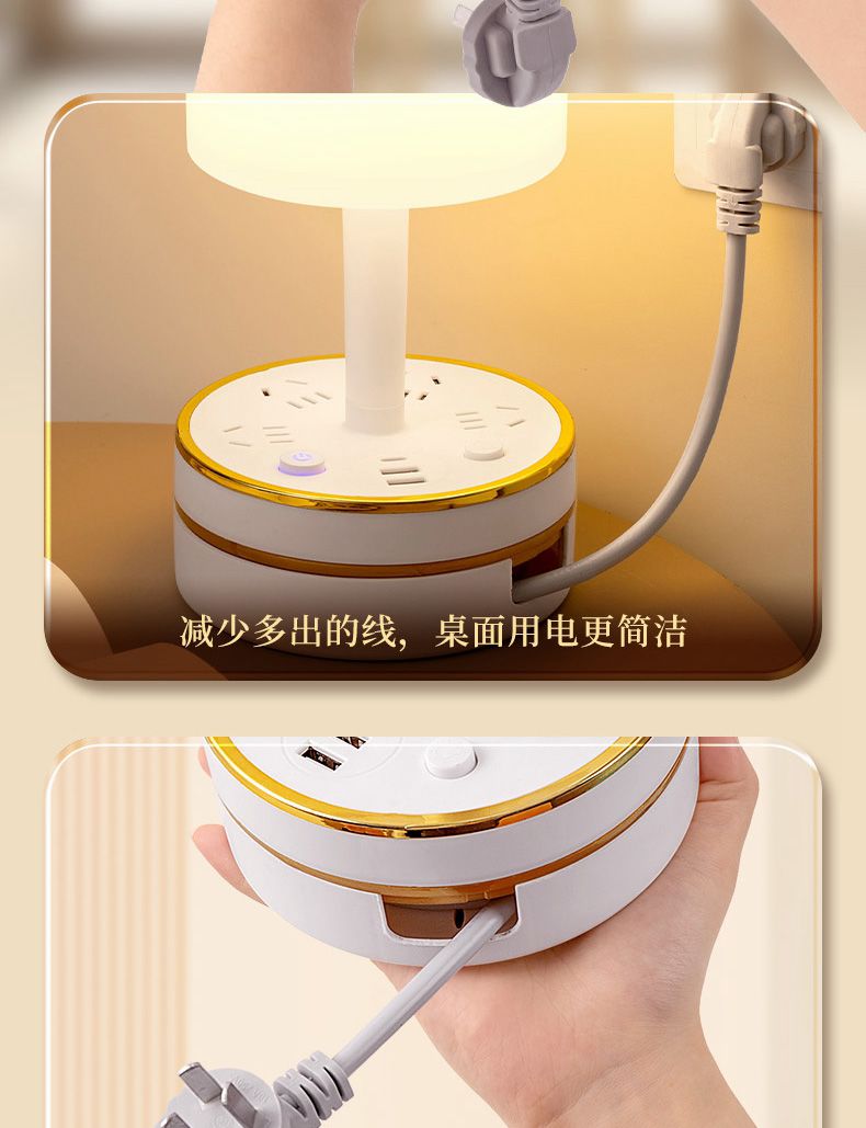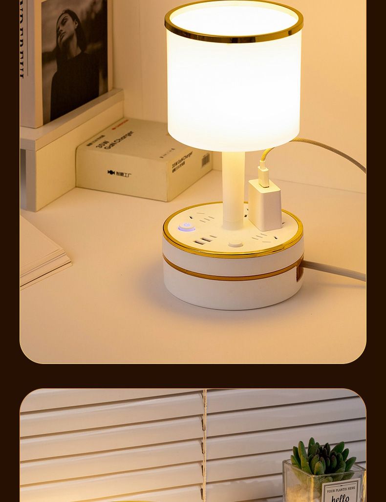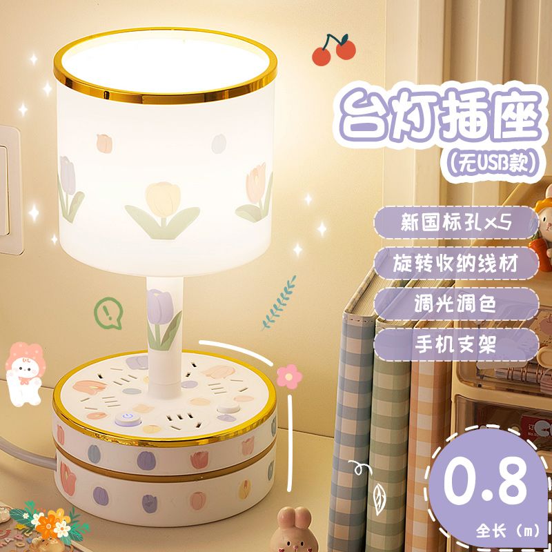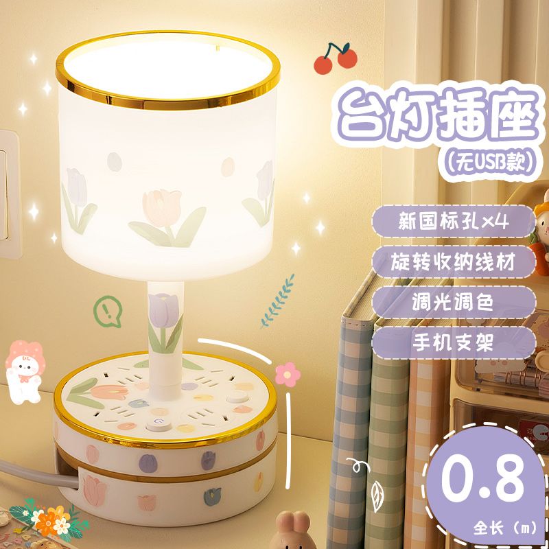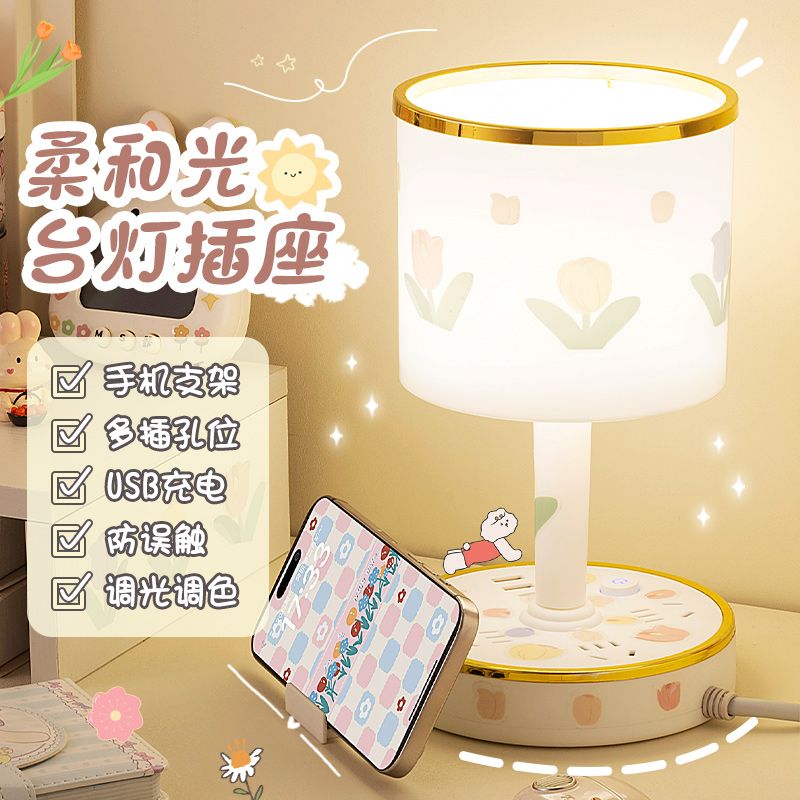 轻奢升级台灯LED插座多功能小夜灯台灯插电式usb插座带线台灯卧室
