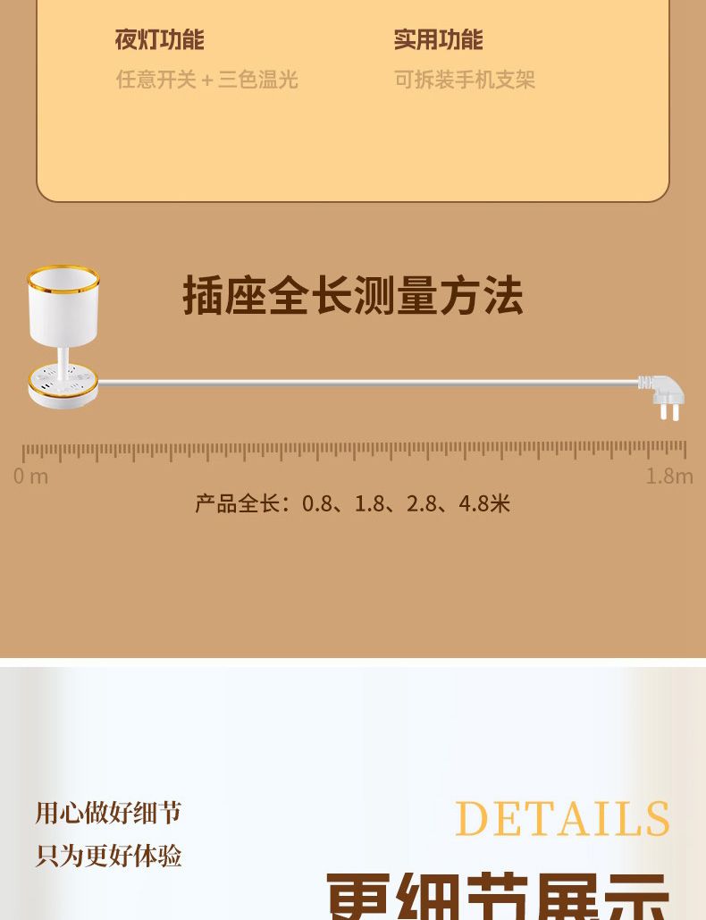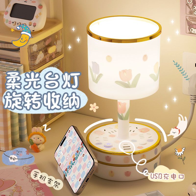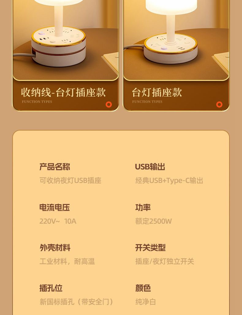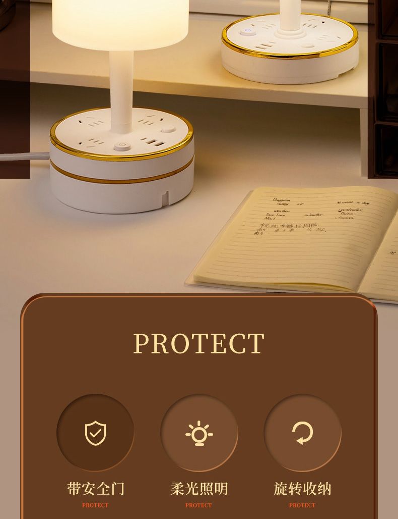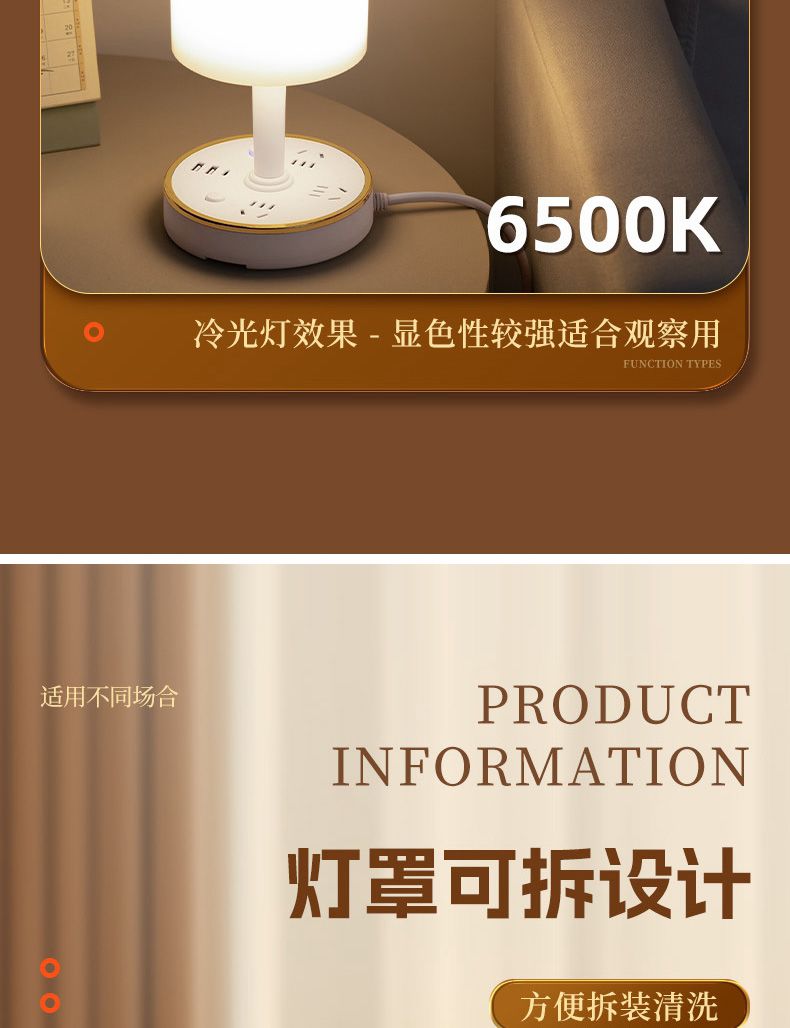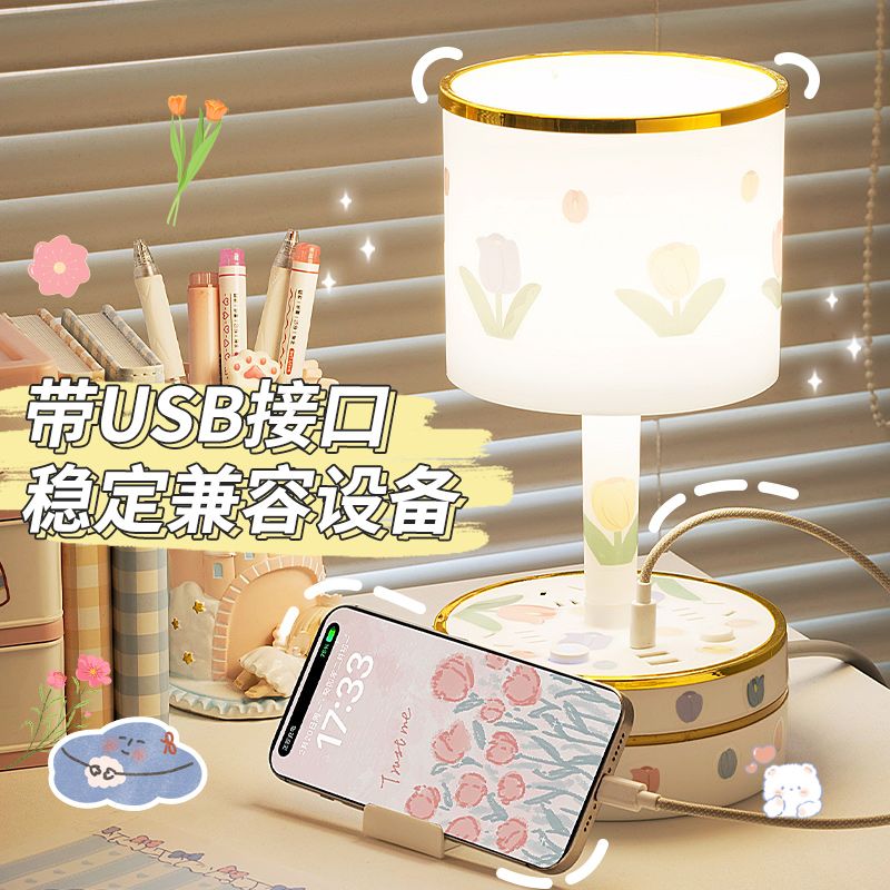 轻奢升级台灯LED插座多功能小夜灯台灯插电式usb插座带线台灯卧室