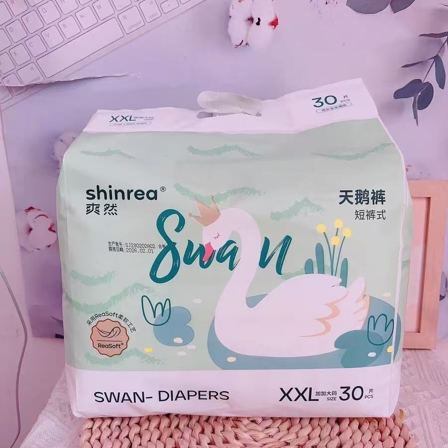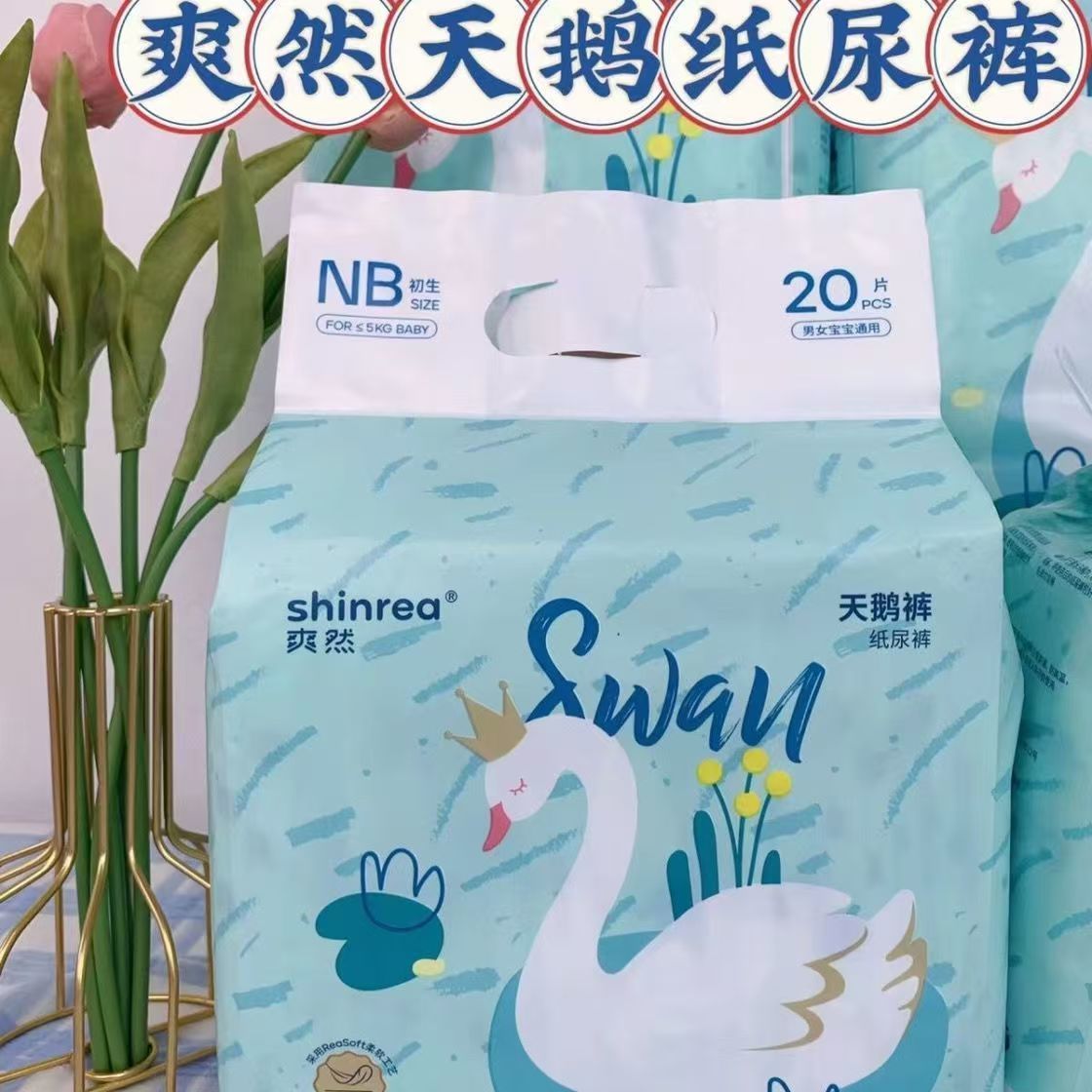 【2包】爽然天鹅纸尿裤尿不湿新生婴儿男女宝宝超薄透气拉拉裤【7