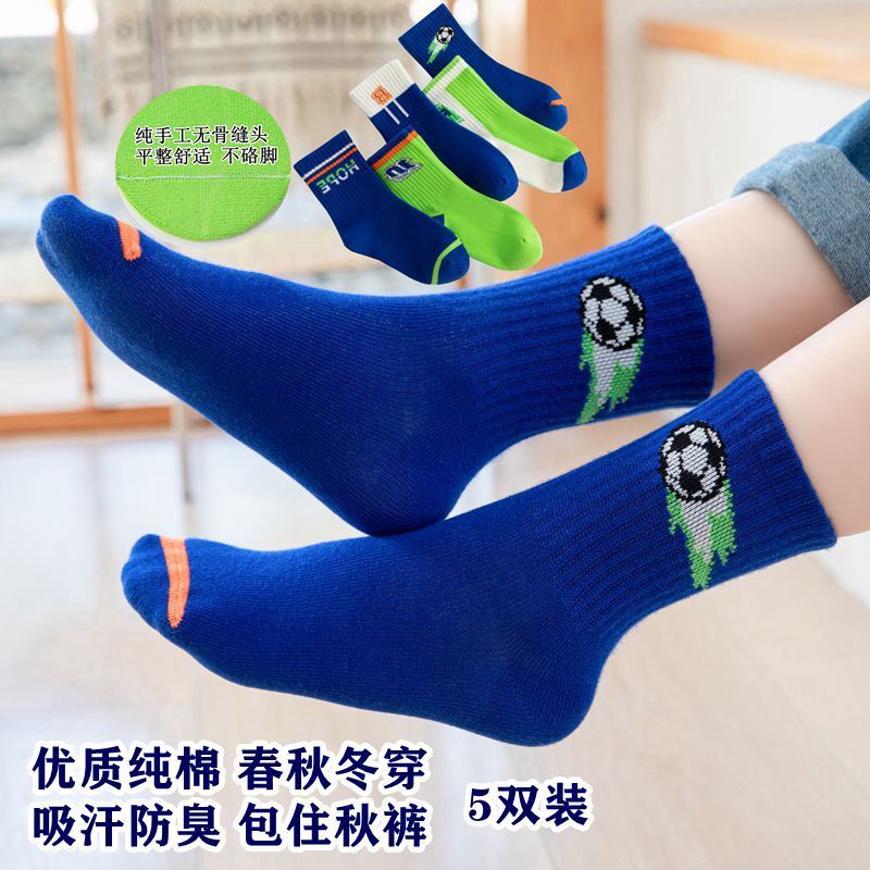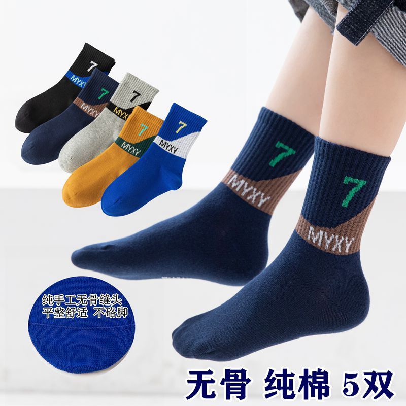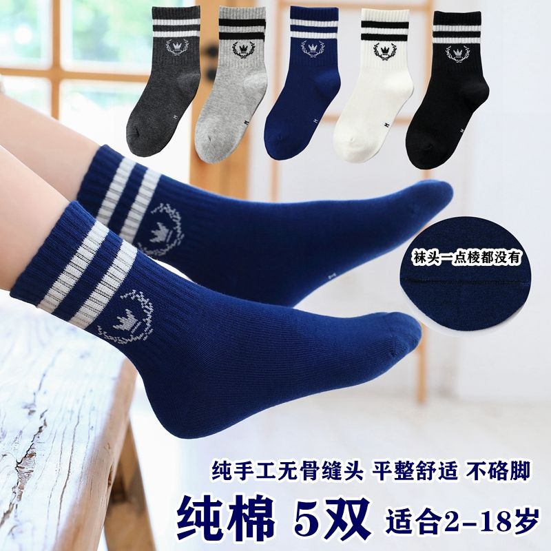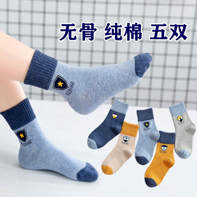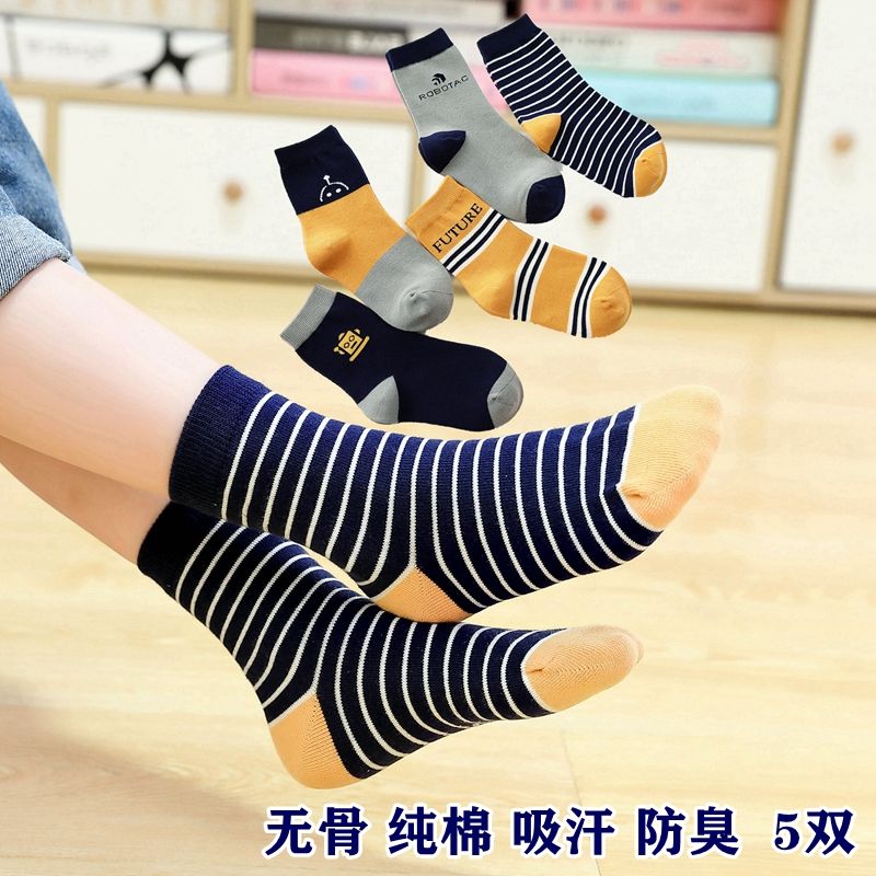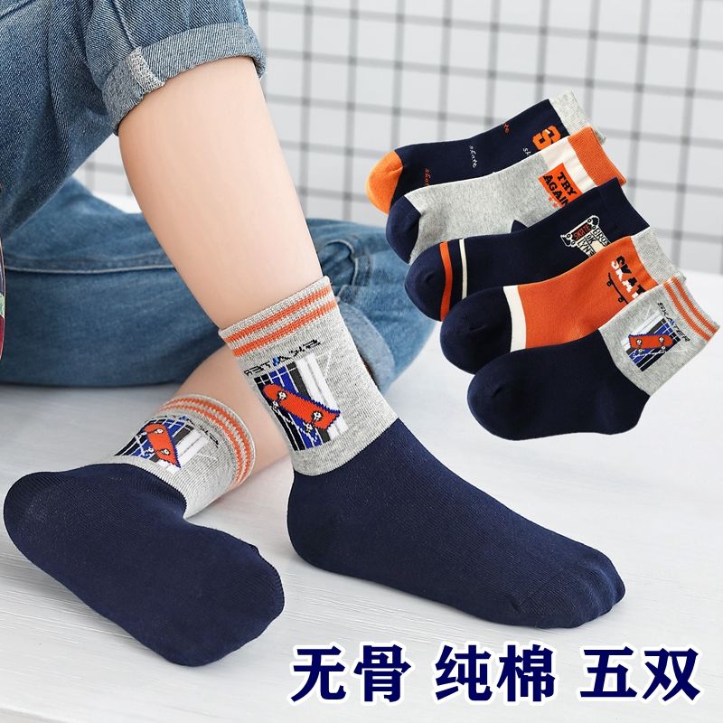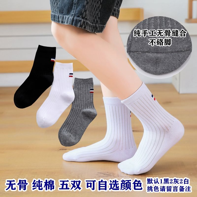 男童袜子春秋季纯棉中大童秋冬款儿童全棉吸汗防臭儿童中筒袜男孩