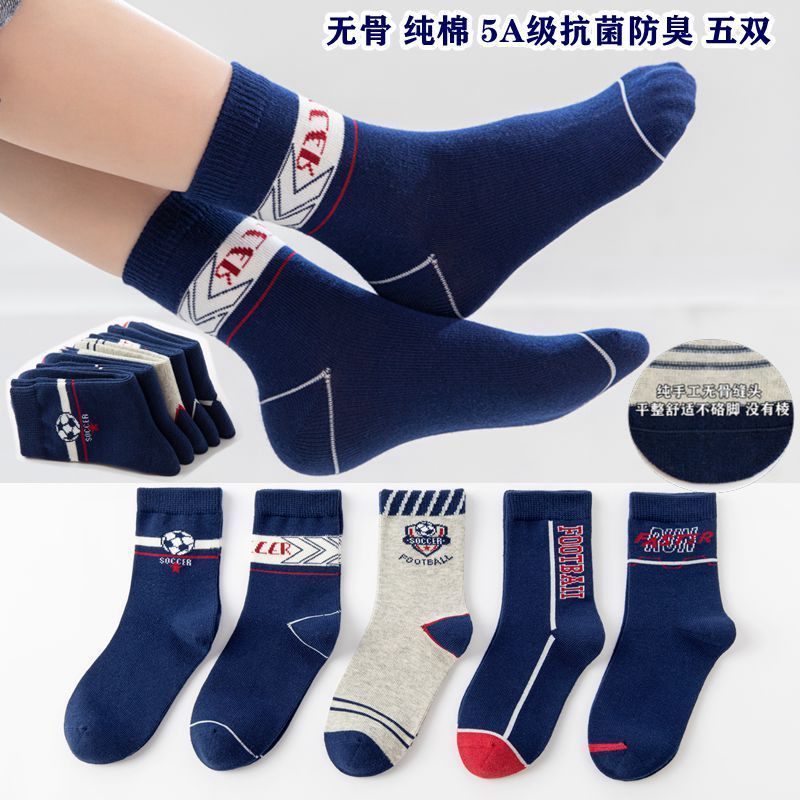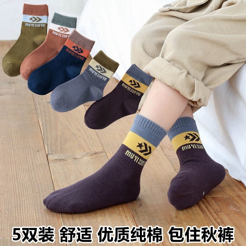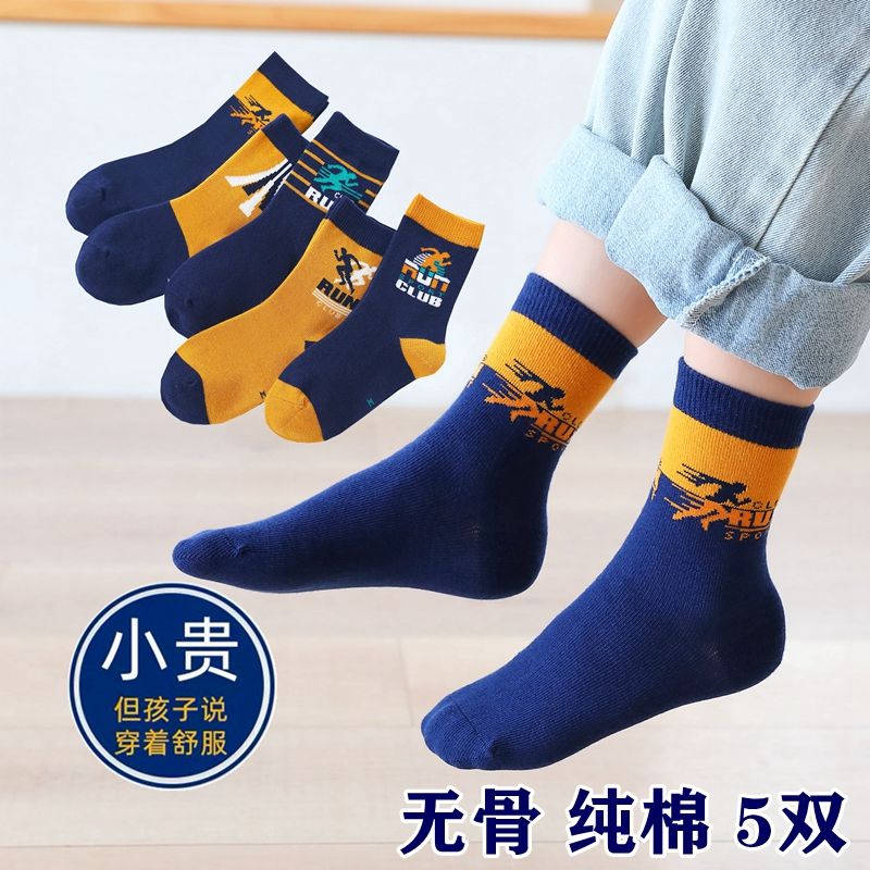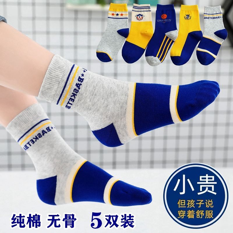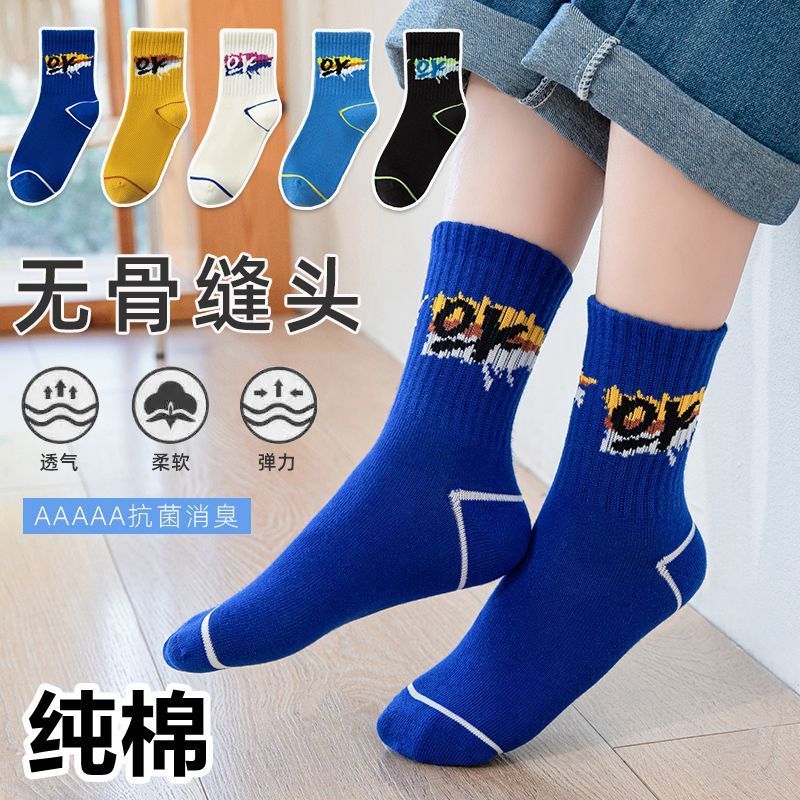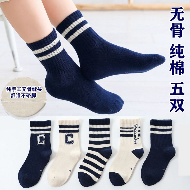 男童袜子春秋季纯棉中大童秋冬款儿童全棉吸汗防臭儿童中筒袜男孩