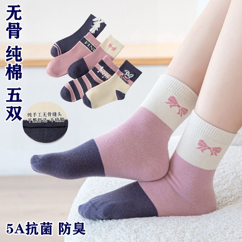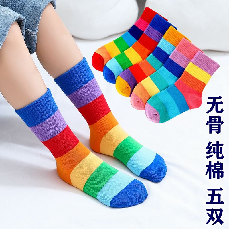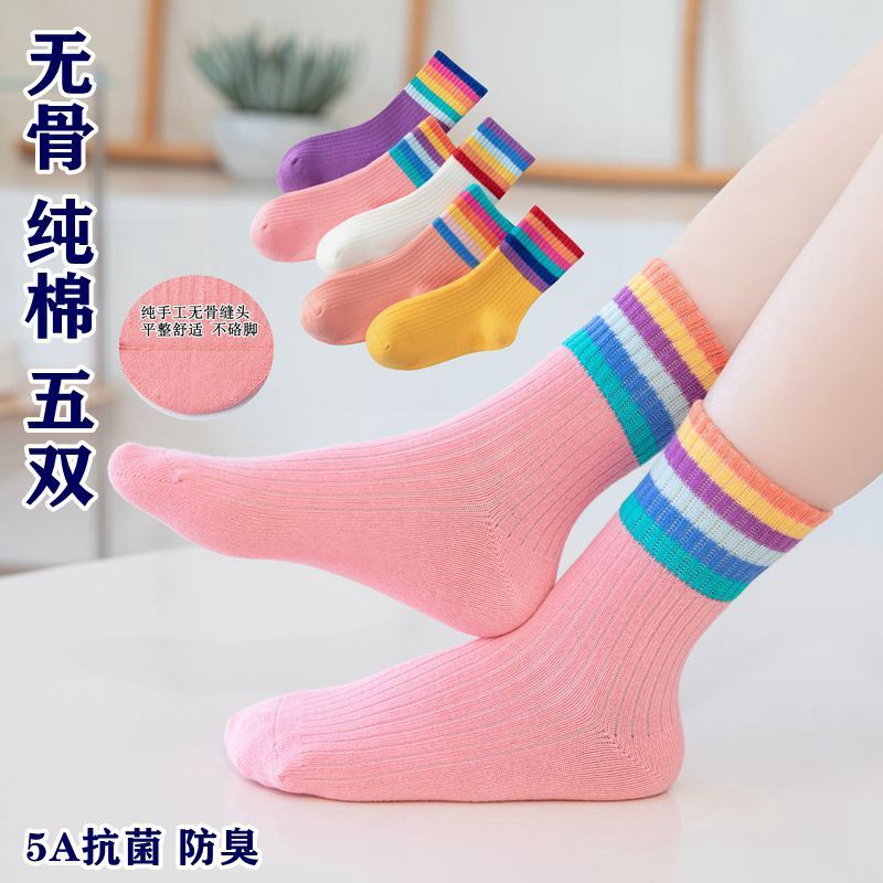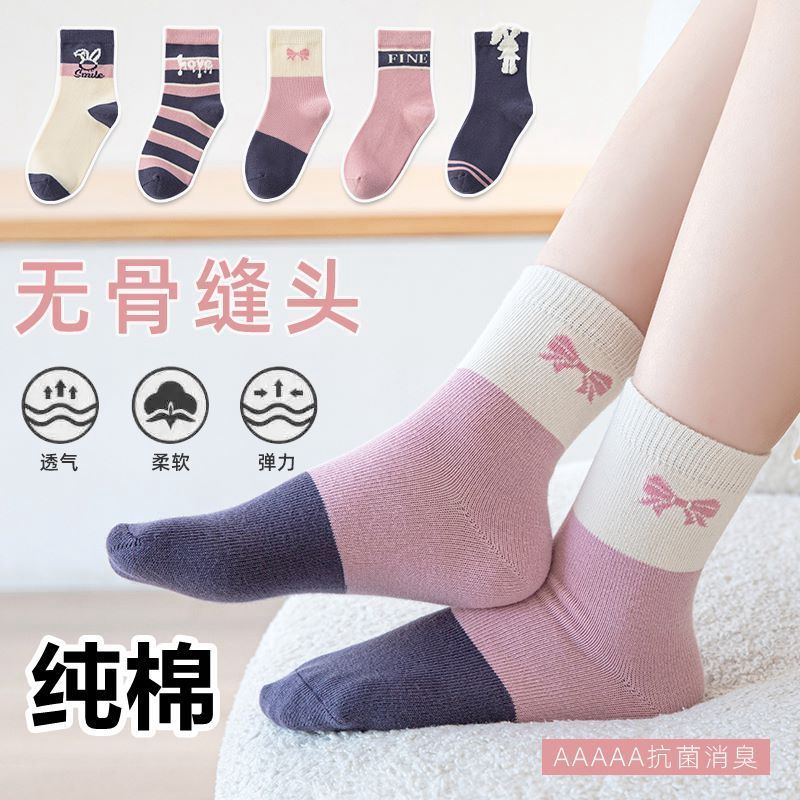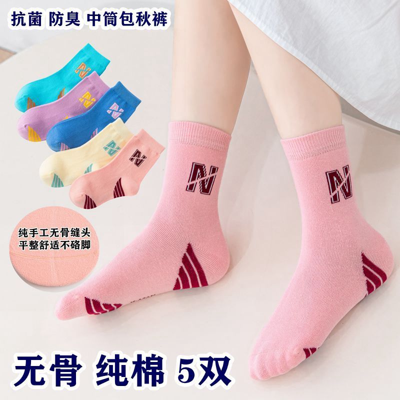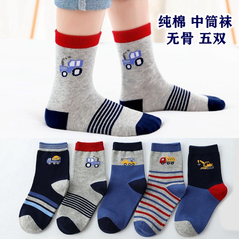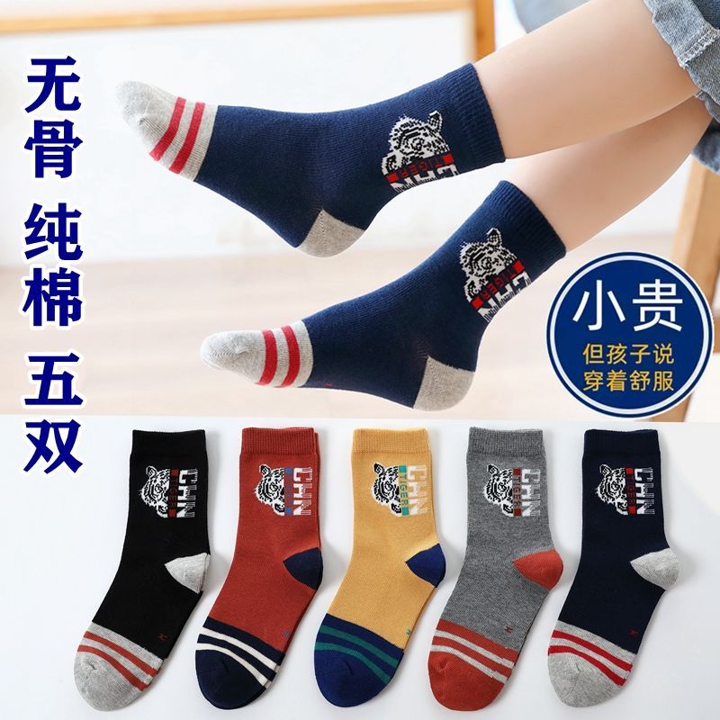 男童袜子春秋季纯棉中大童秋冬款儿童全棉吸汗防臭儿童中筒袜男孩