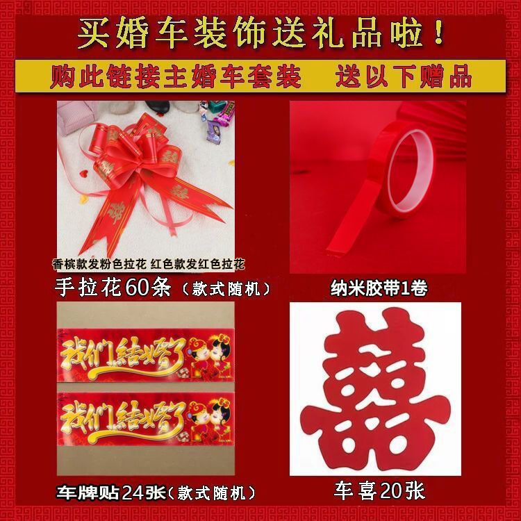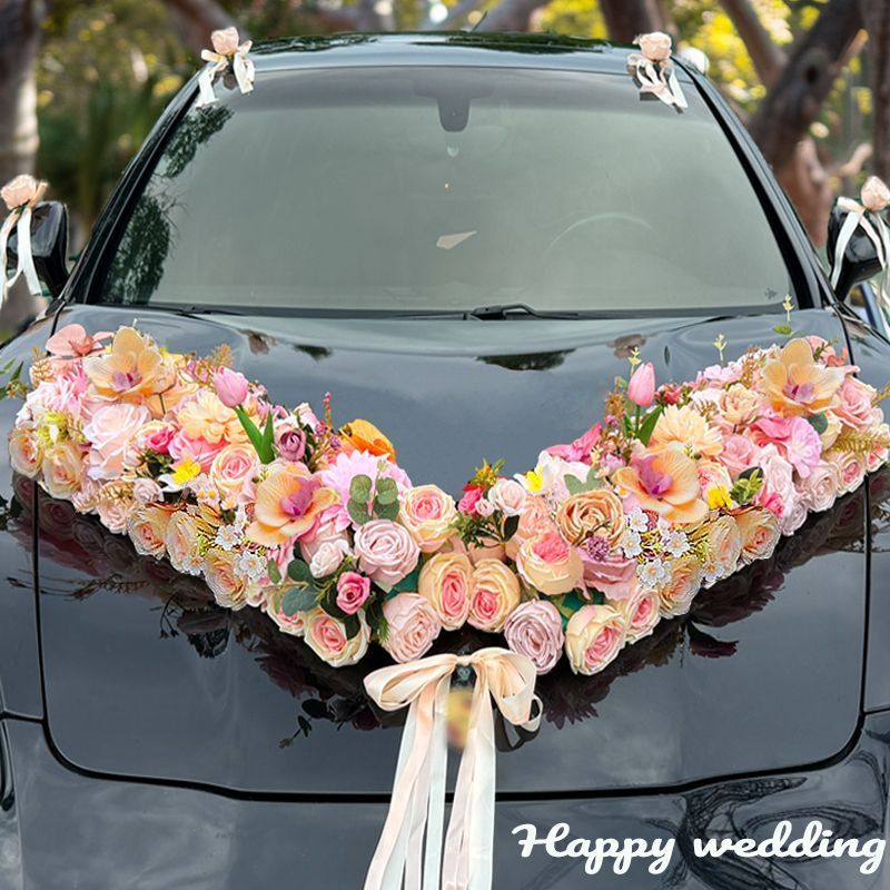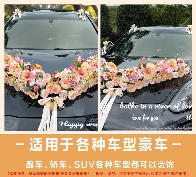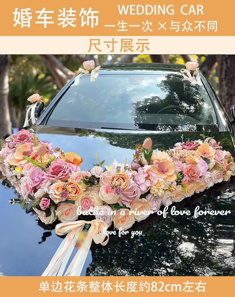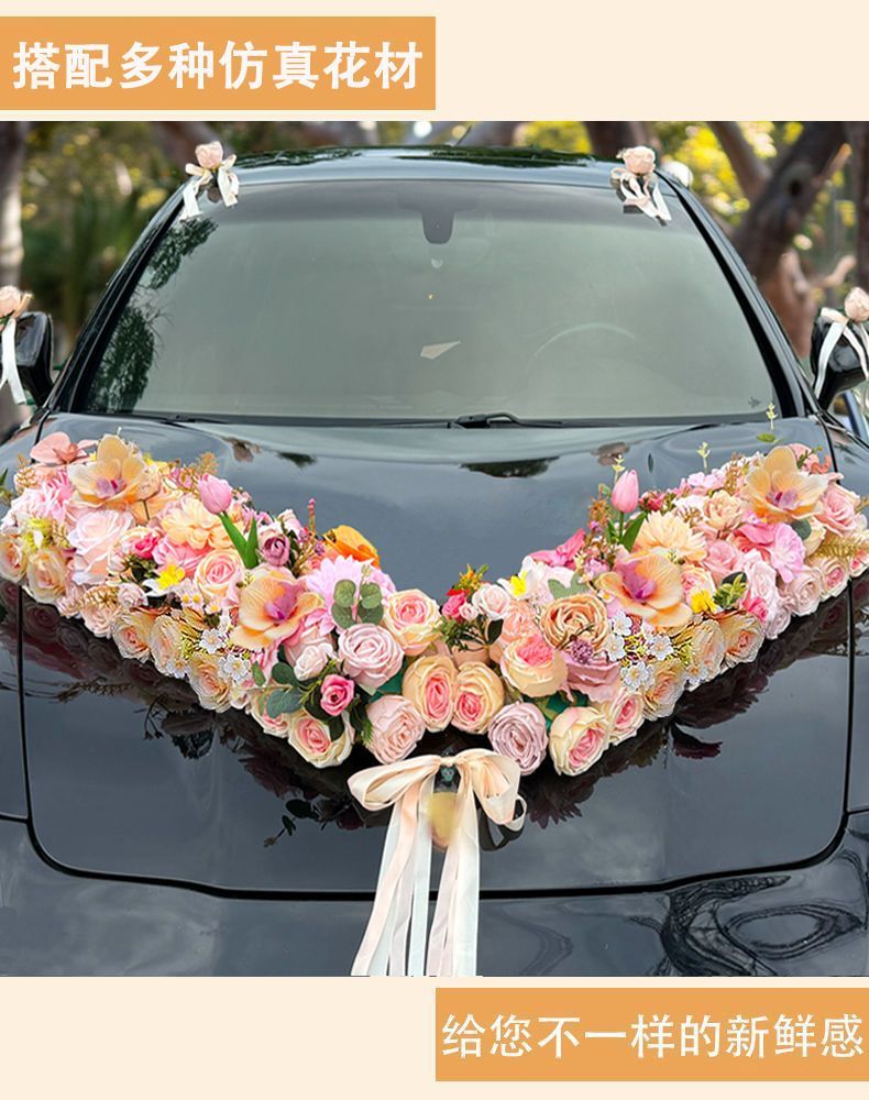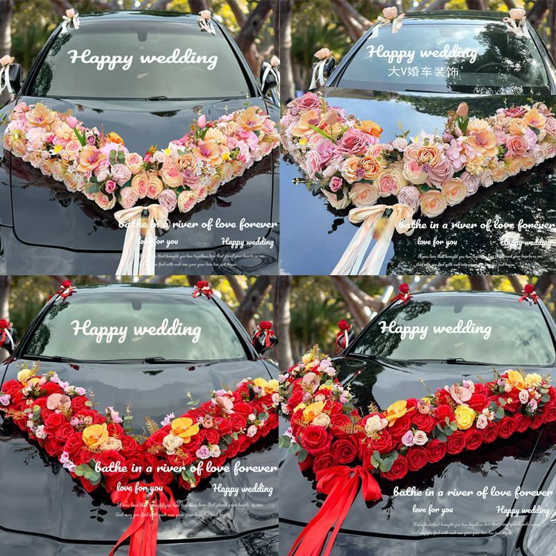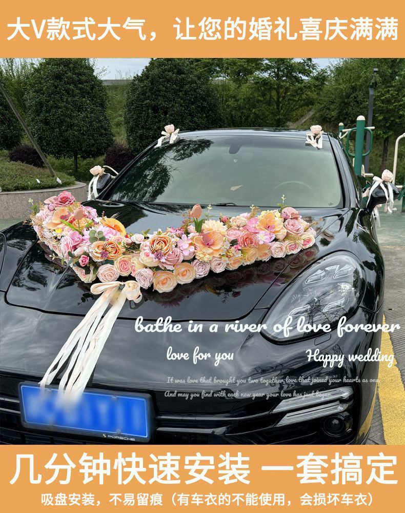 大V结婚头车花车队婚车装饰吸盘婚礼假花结婚车花吸盘式主车大气