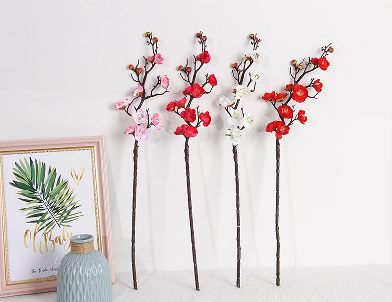 梅花仿真花客厅餐桌电视柜新中式假花摆件桃花枝绿植腊梅工程布置